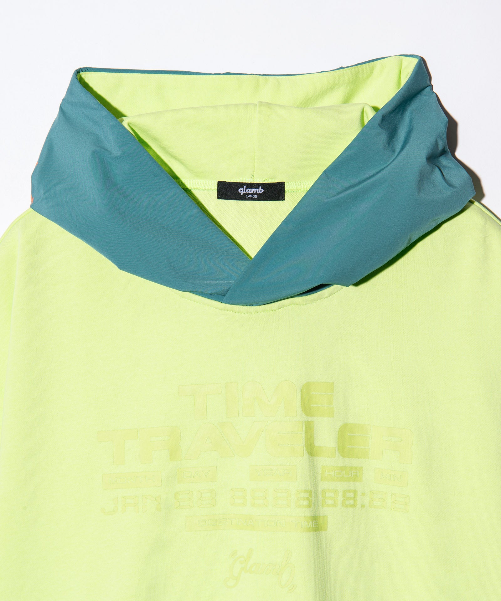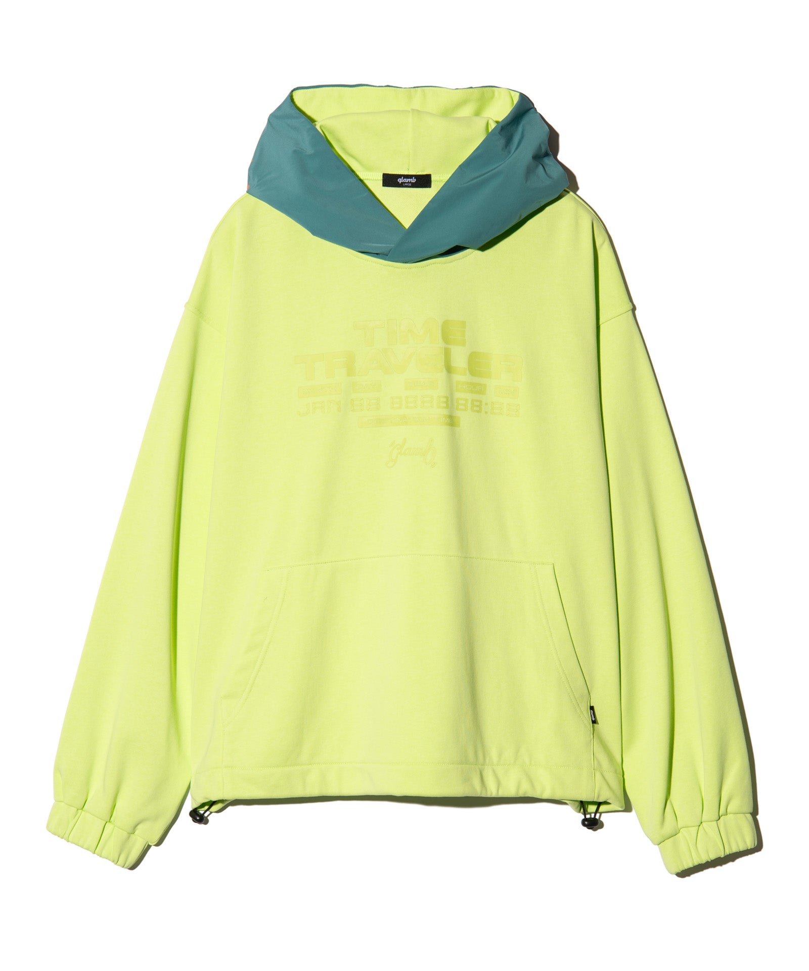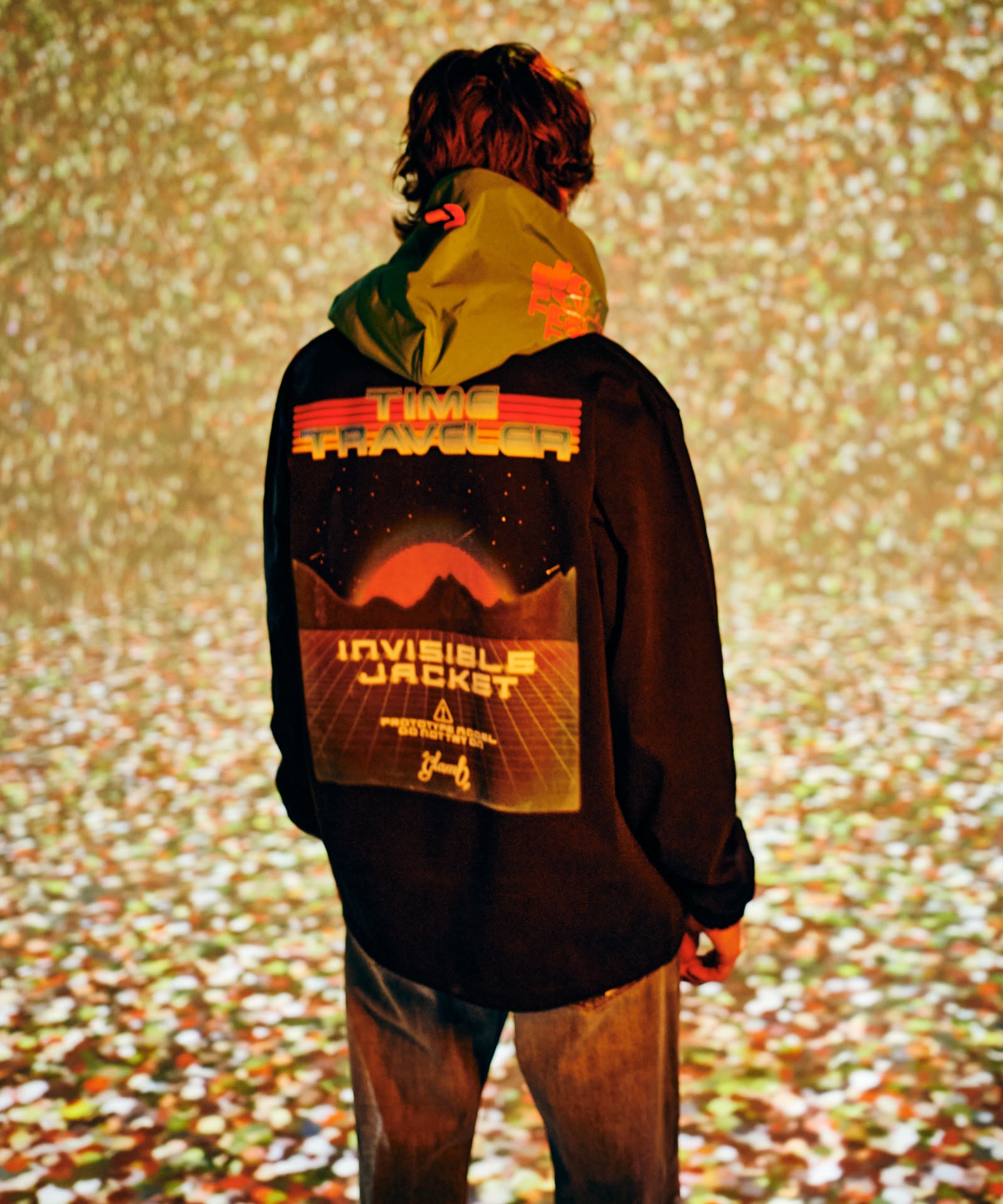 The TIME TRAVELER Emergency Hoodie (GEAR 002) is a series that strongly reflects the concept of this season's theme, "TIME TRAVELER." This is a TIME TRAVELER Emergency Hoodie (GEAR 002) that you should bring in in case of time travelling emergency. This packable design allows you to store the main unit compactly in the hood and carry it around, and can be used as a neck pillow inside a time machine. If you are experiencing problems, please convert it into a hoodie by pulling the orange ribbon and protect yourself from changes in weather. The big silhouette with a short length creates an active top style. The texture of the body fabric, which exudes a sci-fi-like luster, will also invite you to time travel.