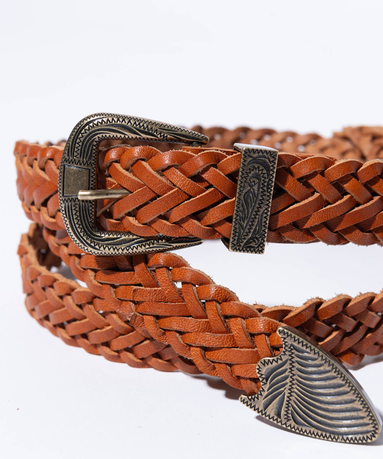 Sculpture Mesh Belt combines the craftsmanship that brings to life with primitive designs to create a bohemian atmosphere. The body is made by hand braided by a craftsman and is also accented with western carved metal parts with an antique finish. Mesh belts allow for stepless length adjustment, and these days, the need for this has improved as there are a wide variety of bottom arrangements, from high waists to waist wear. Enjoy on-trend styling with a timeless piece.