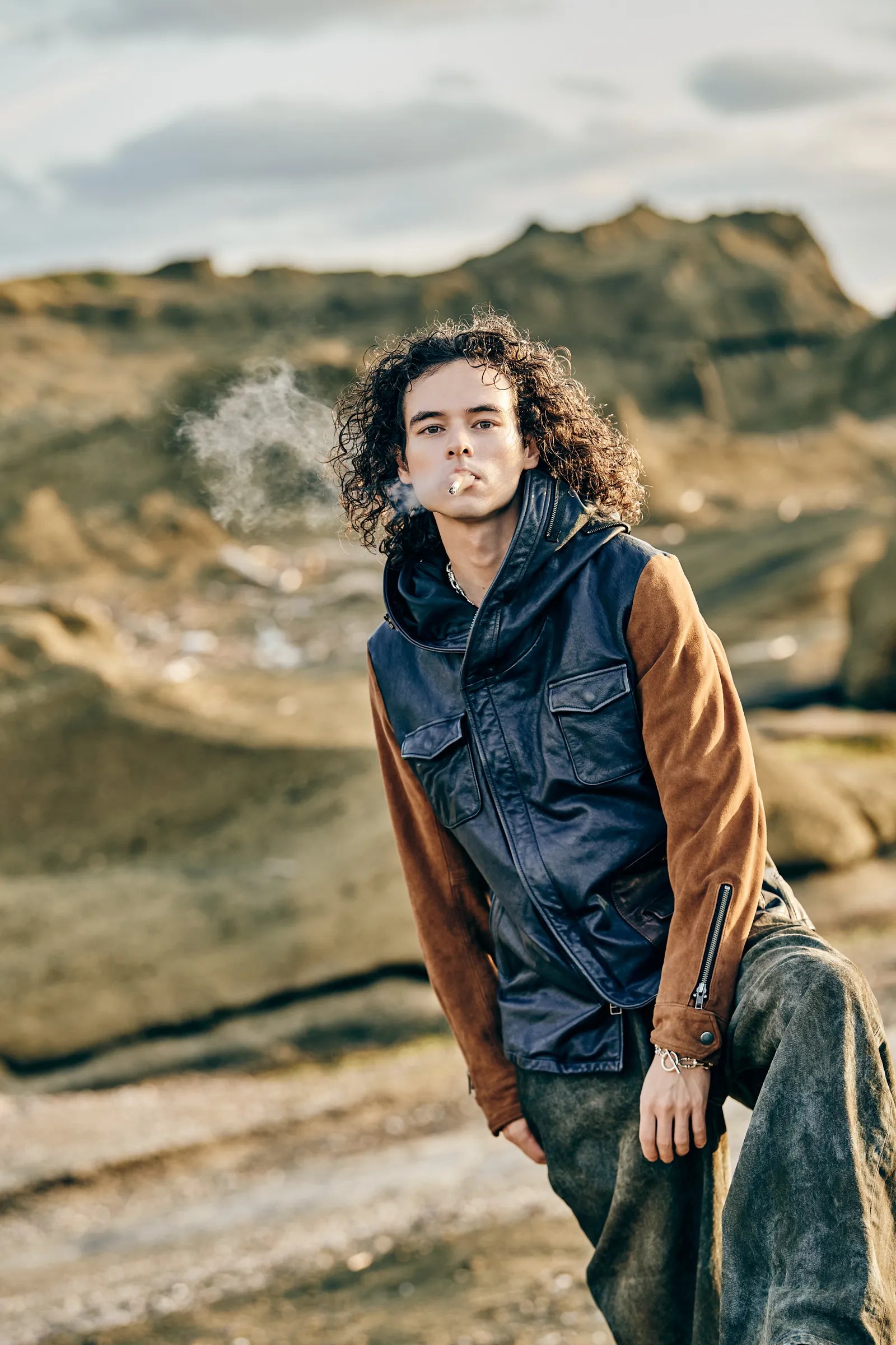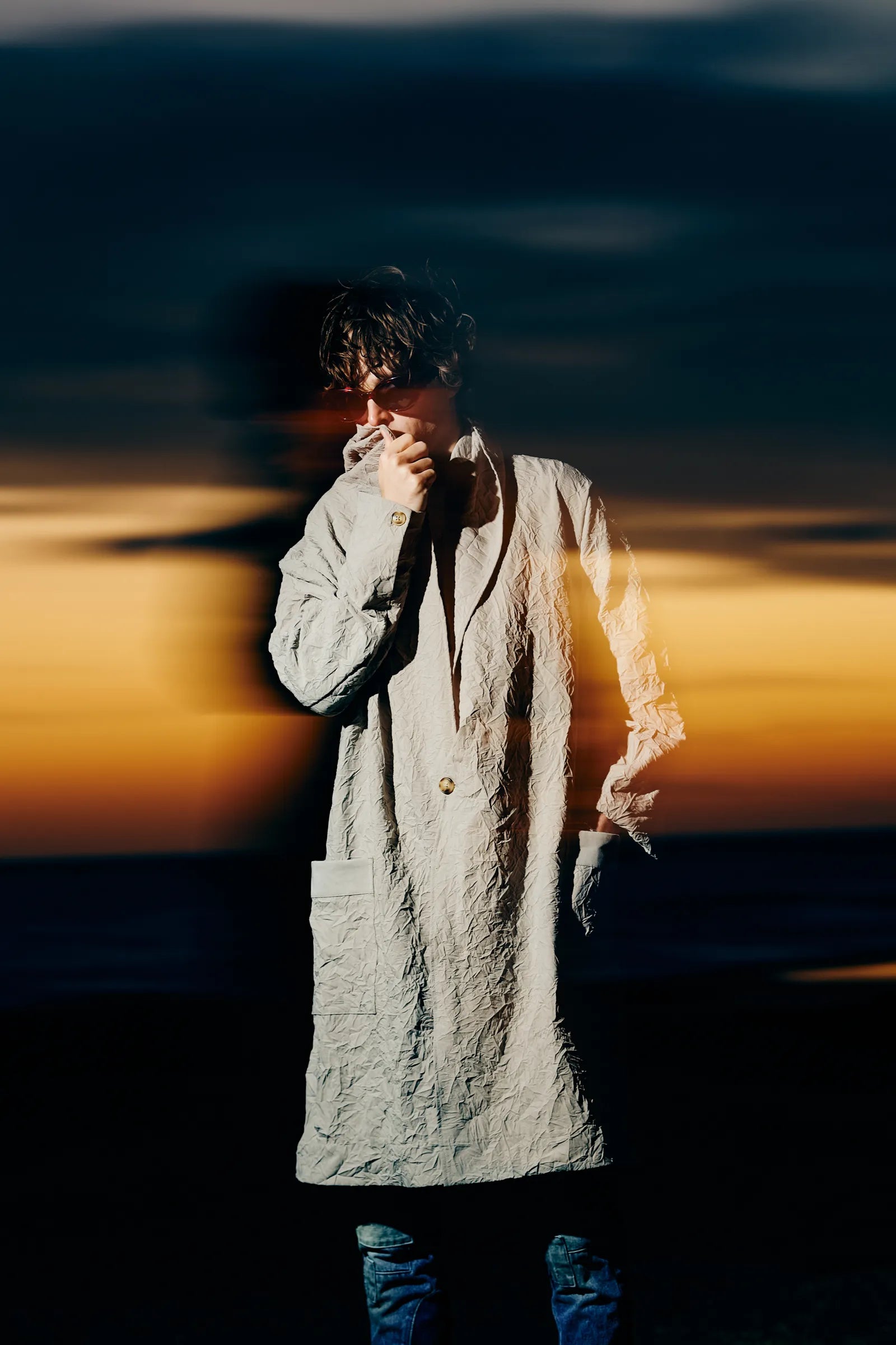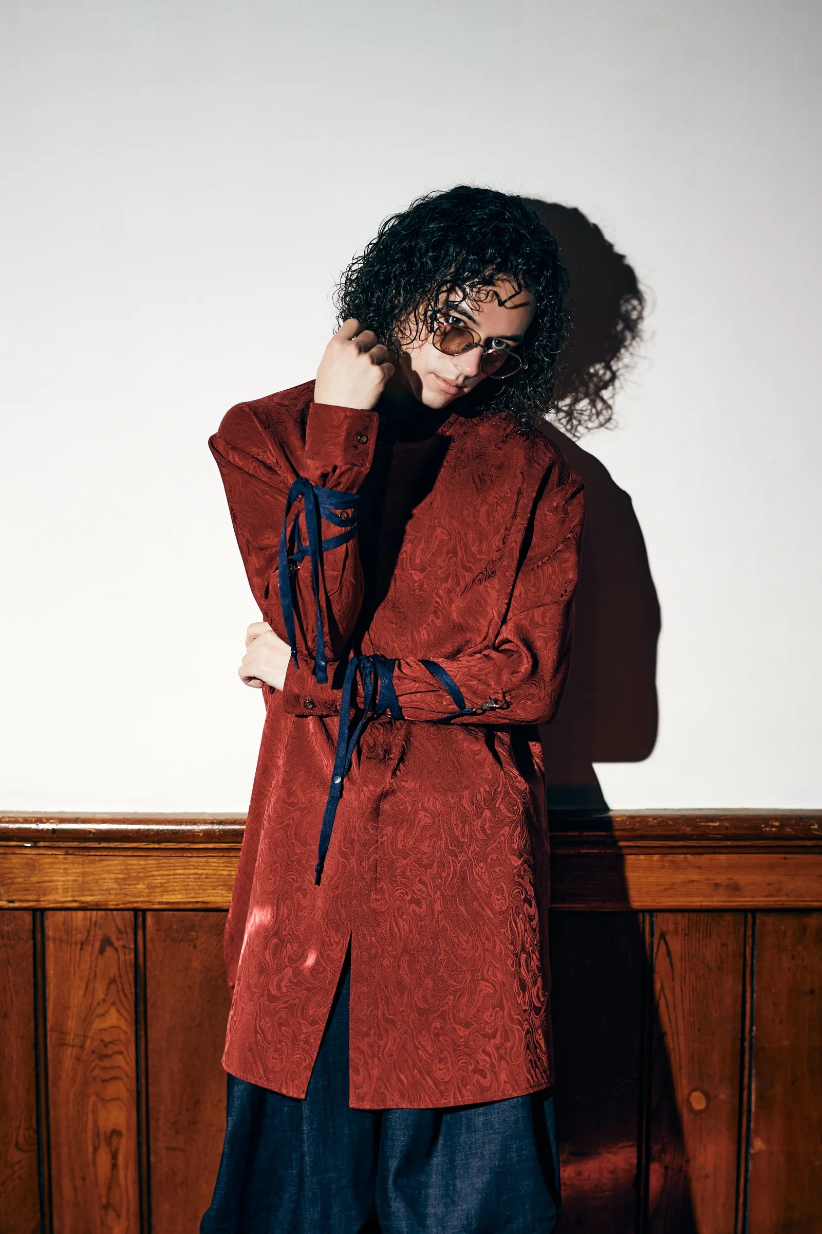 “Blow”シリーズとなる、長いテープを袖からぶら下げるディテールを思いついた。