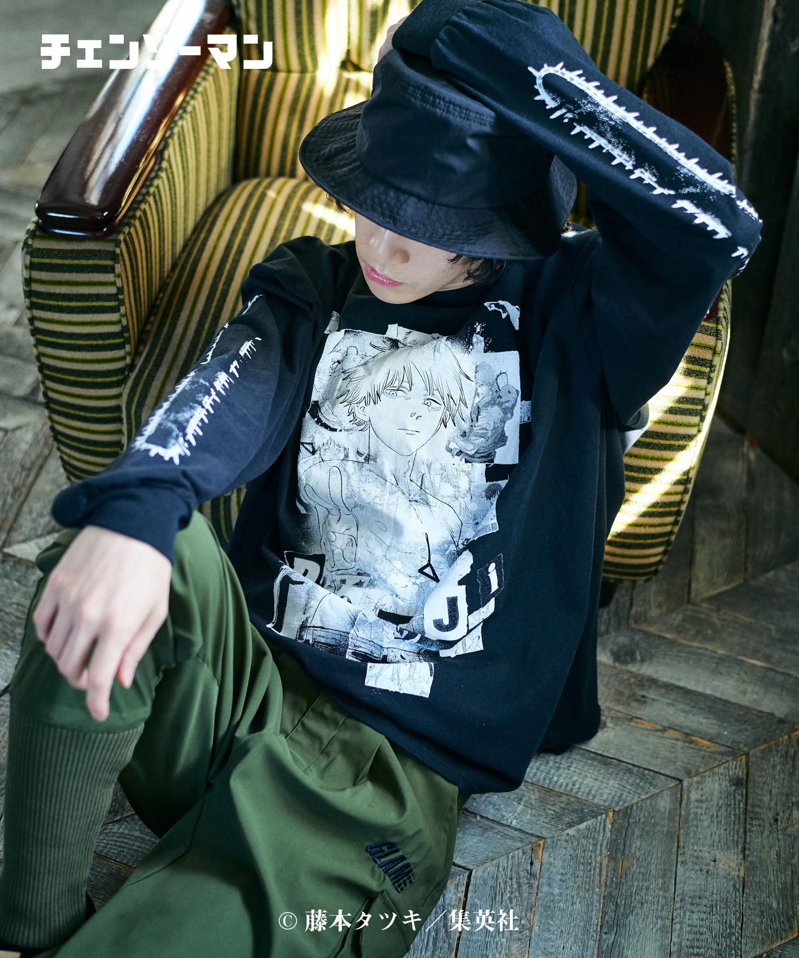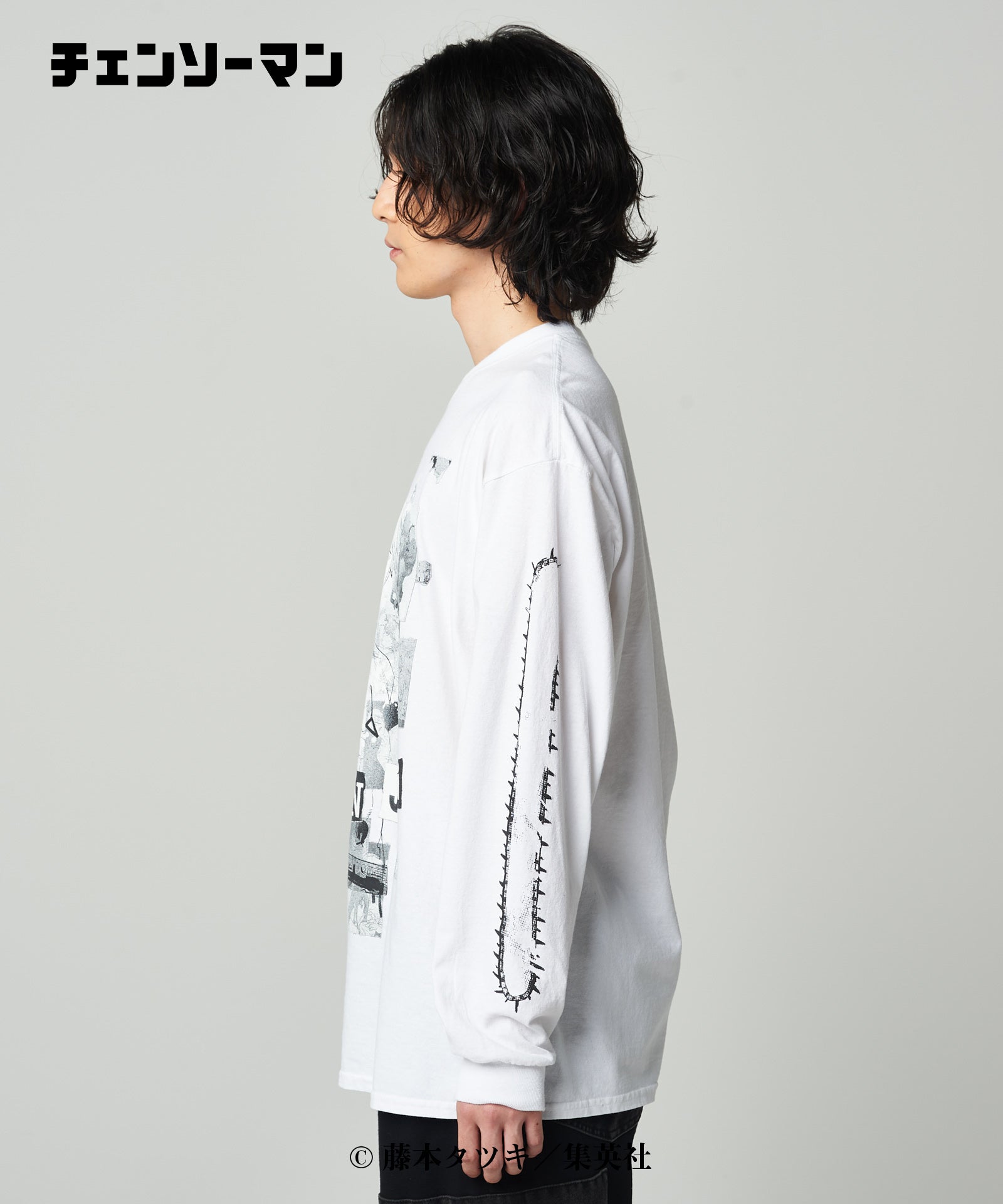 Denji Long Sleeve T expresses the fate of the protagonist Denji in melancholic monochrome