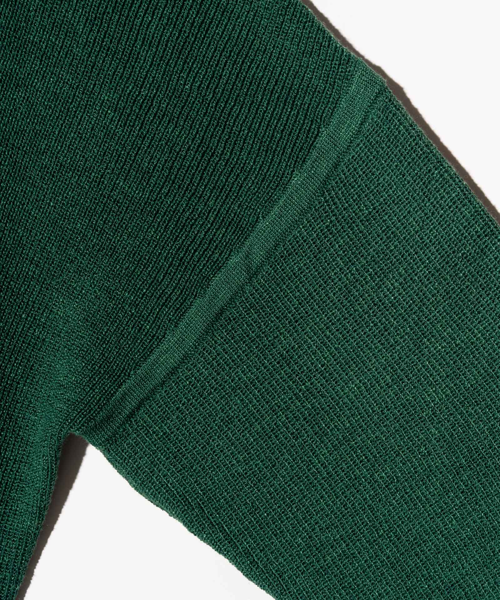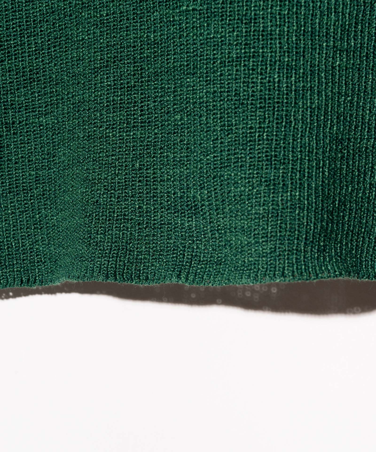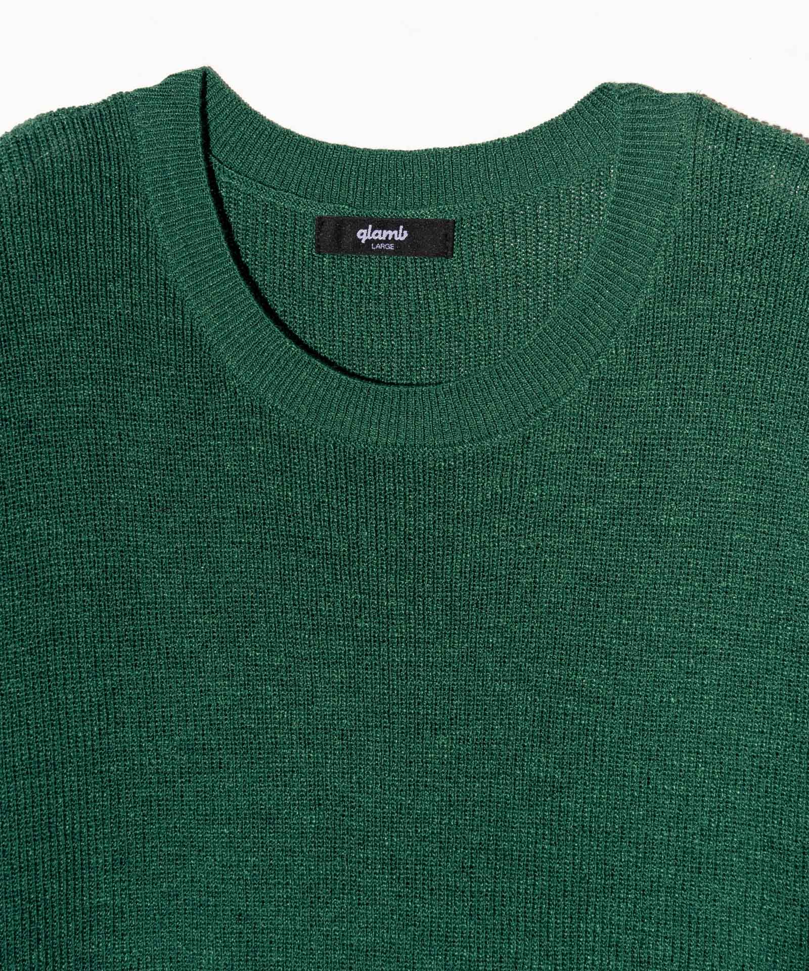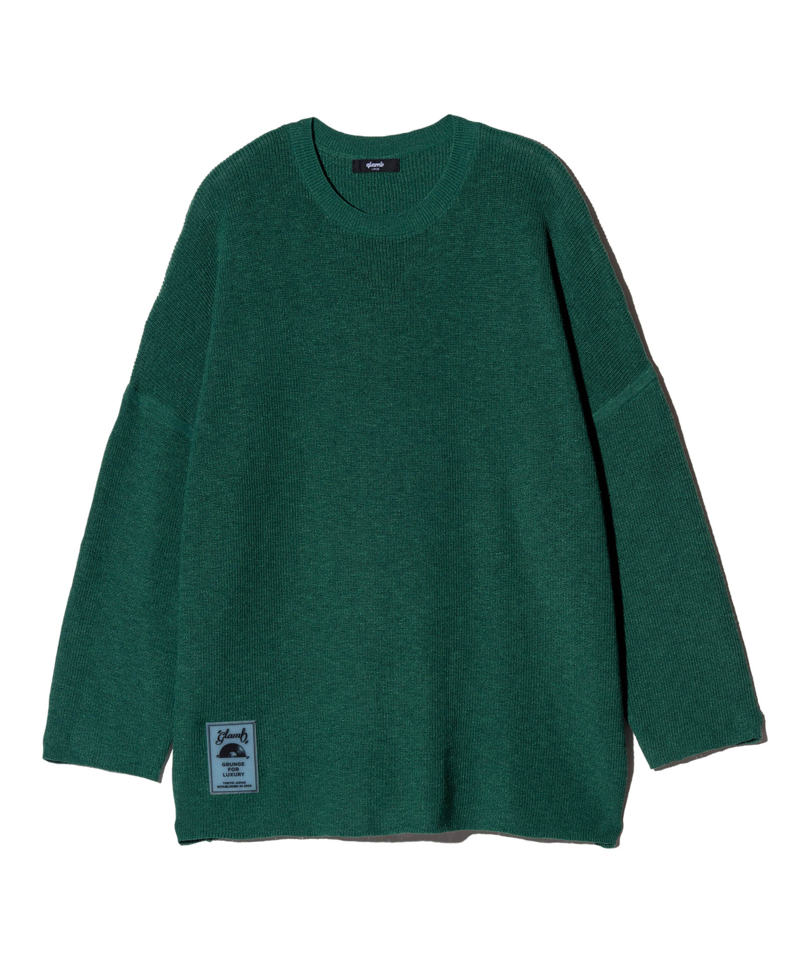 Rubber Tag Knit pursues the standard for daily knits. The knitted fabric may look plain at first glance, but it features a deep texture with unevenness added by knitting slab yarn on one side. The shoulder line is added with linking, highlighting the loose pattern of the drop shoulder. A rubber tag made from clear material adds a more contemporary nuance to its minimal look. Each detail and an oversized silhouette combine to create an intelligent, urban style.