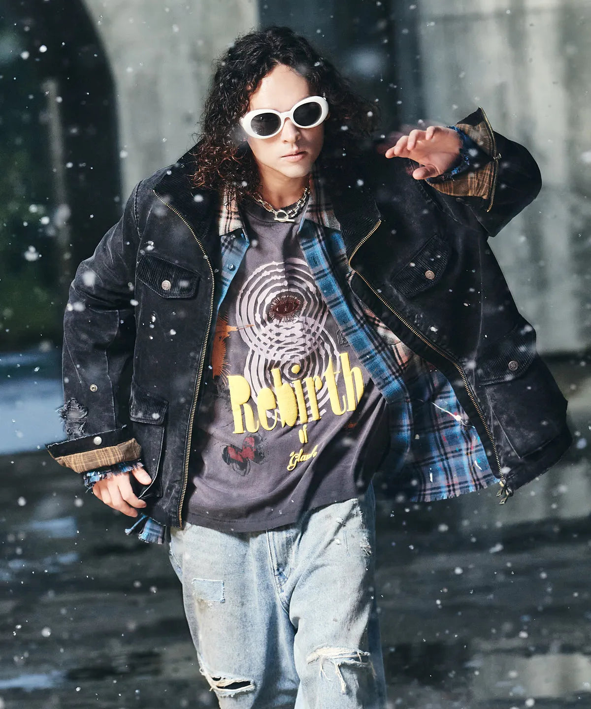 블루 노이즈 오픈 칼라 셔츠
