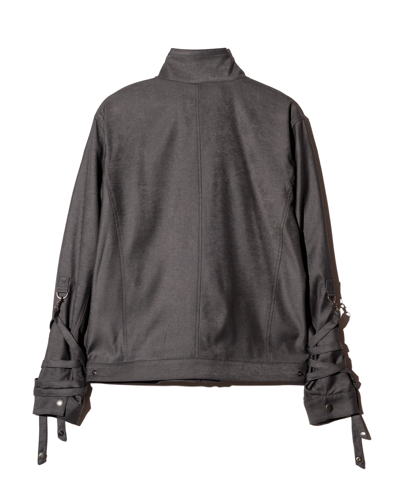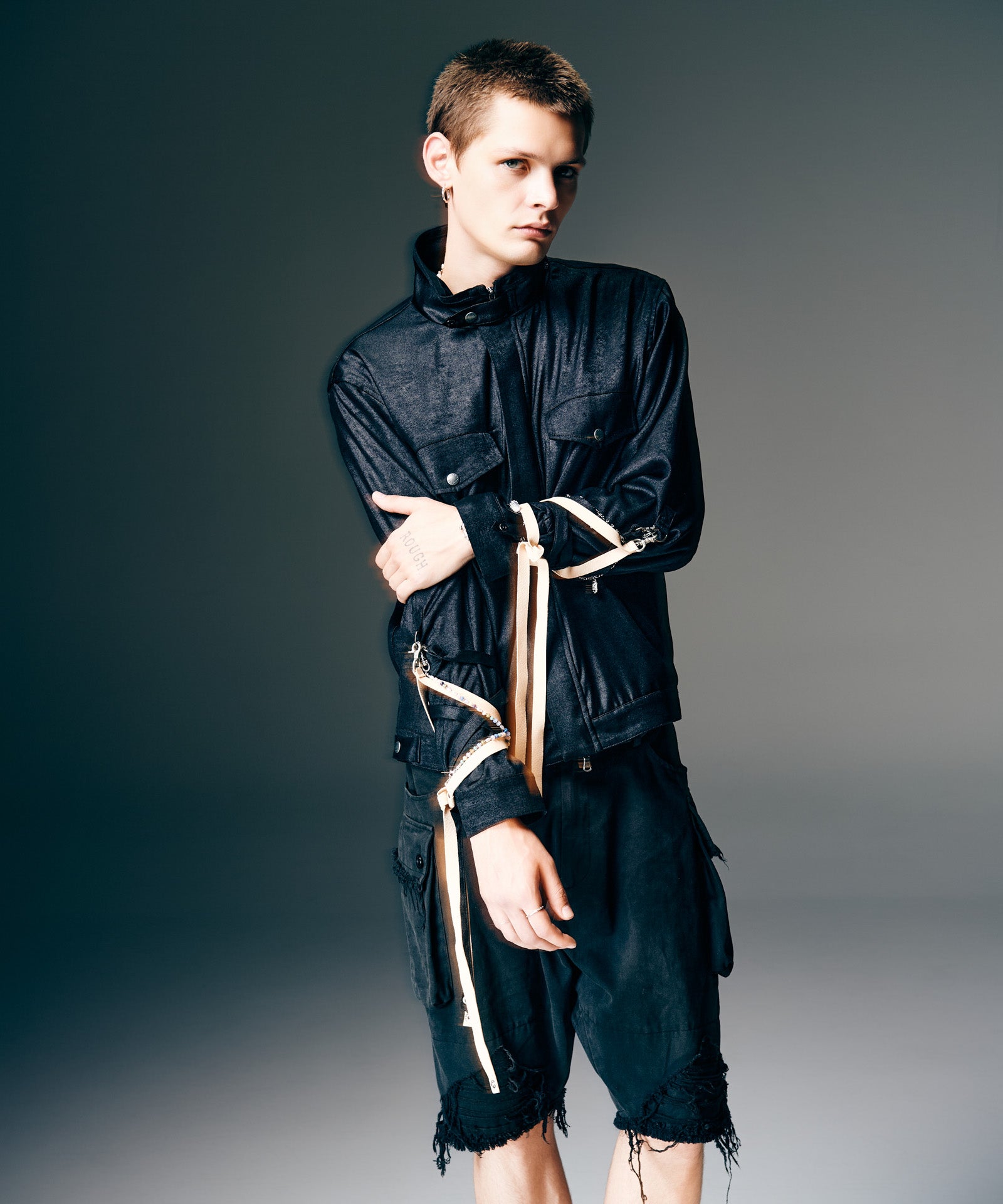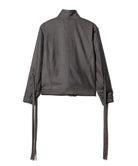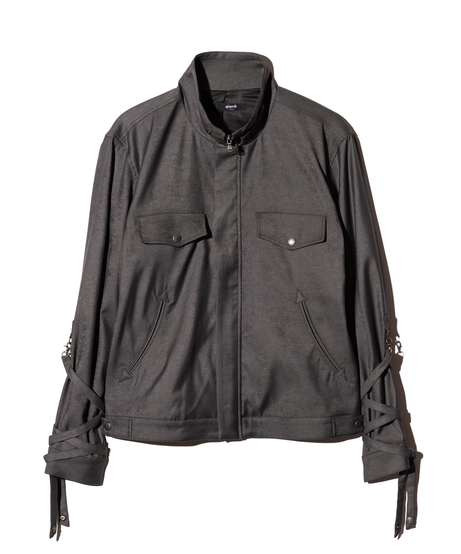 '바람의 그림자'를 컬렉션 테마로 하는 글램(Glamb)은 본디지 재킷에서 영감을 받아 에어리한 형태의 블로우 본디지 재킷(Blow Bondage Jacket)을 만들었다. 콤팩트한 바디에 길이가 짧아 언뜻 보기에는 모노크롬의 미니멀한 일체형 디자인처럼 보입니다. 하지만 소맷단에 70cm 길이의 테이프를 붙이면 분위기가 확 달라집니다. 늘어뜨려 배열하는 것뿐만 아니라, 본디지 스타일처럼 팔에 둘러 배열하는 것도 브랜드에서는 제안하고 있습니다. 디테일을 살펴보면 허리 부분의 포켓은 스카 점퍼와 유사한 크레센트 포켓으로 되어 있어 스트리트적인 느낌을 더해줍니다. 넥 부분과 바디 측면에는 탭이 장식되어 있어 작은 디테일까지 흠잡을 데 없는 마감을 자랑합니다.