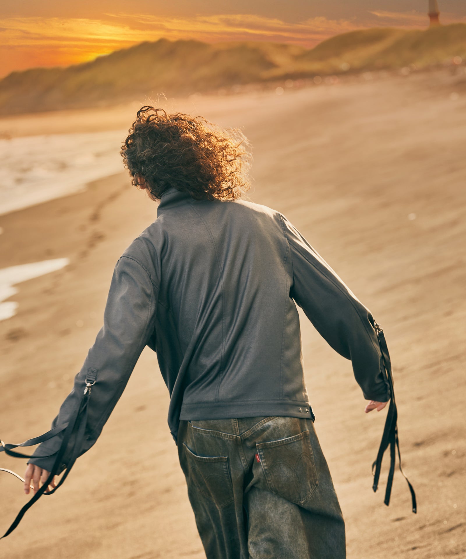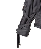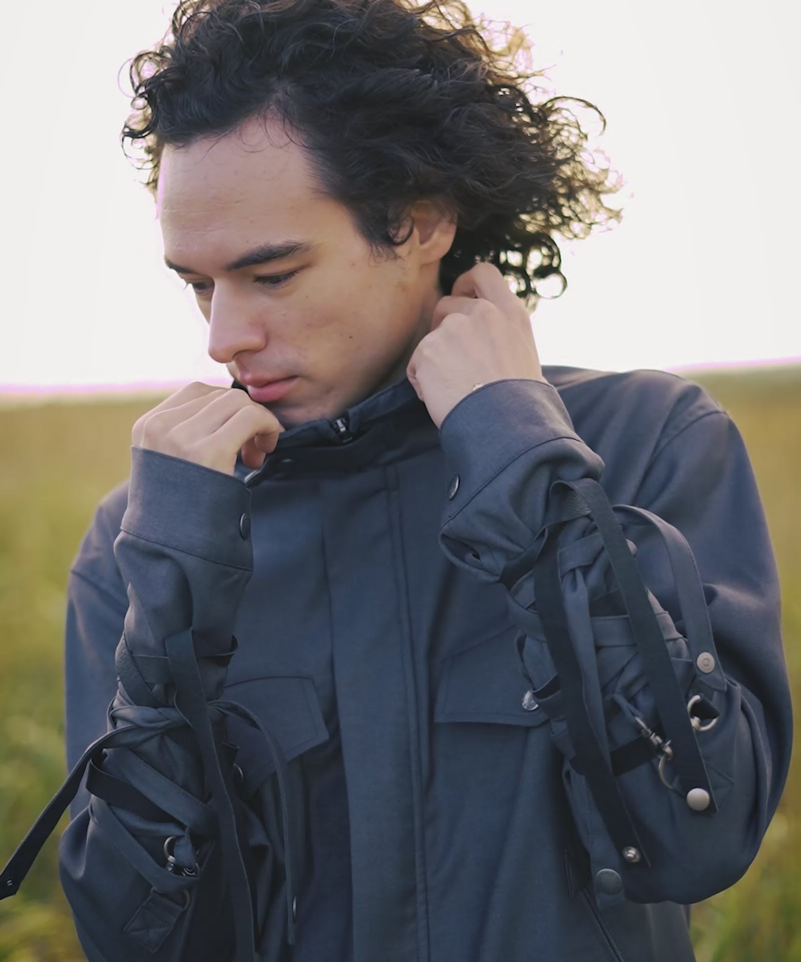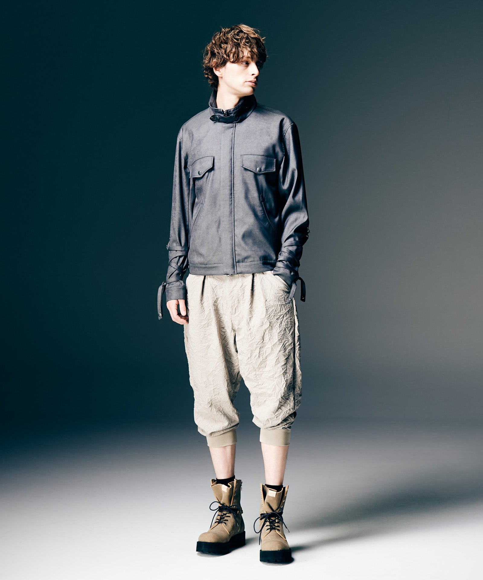 '바람의 그림자'를 컬렉션 테마로 하는 글램(Glamb)은 본디지 재킷에서 영감을 받아 에어리한 형태의 블로우 본디지 재킷(Blow Bondage Jacket)을 만들었다. 콤팩트한 바디에 길이가 짧아 언뜻 보기에는 모노크롬의 미니멀한 일체형 디자인처럼 보입니다. 하지만 소맷단에 70cm 길이의 테이프를 붙이면 분위기가 확 달라집니다. 늘어뜨려 배열하는 것뿐만 아니라, 본디지 스타일처럼 팔에 둘러 배열하는 것도 브랜드에서는 제안하고 있습니다. 디테일을 살펴보면 허리 부분의 포켓은 스카 점퍼와 유사한 크레센트 포켓으로 되어 있어 스트리트적인 느낌을 더해줍니다. 넥 부분과 바디 측면에는 탭이 장식되어 있어 작은 디테일까지 흠잡을 데 없는 마감을 자랑합니다.