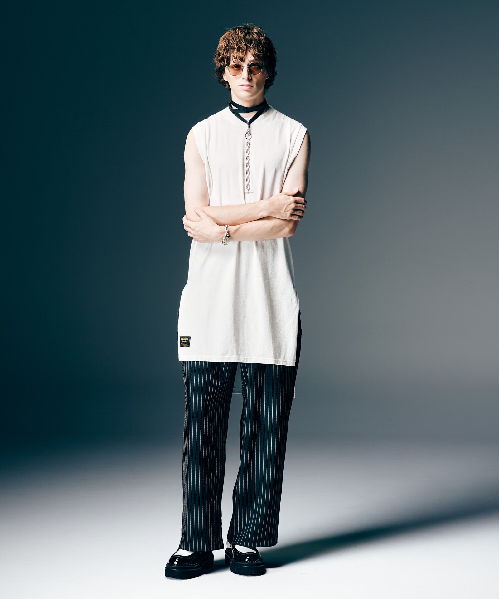블로우 탱크탑(Blow Tank Top)은 서양 승려의 복식에서 영감을 받아 탱크탑을 기반으로 한 스타일을 제안합니다. 롱바디는 앞, 뒤 길이를 다르게 하고 옆 슬릿으로 움직임을 만들어냈습니다. 셔츠나 컷소우만 위에 걸쳐주면 완벽한 레이어드 탑이 완성됩니다. 사용된 텍스타일은 면 100%의 40/2 코밍 저지로, 일본산으로 우아한 광택과 부드러운 촉감을 자랑합니다. 폭은 레귤러핏으로 설정되어 레이어드 시 다루기 편리합니다.