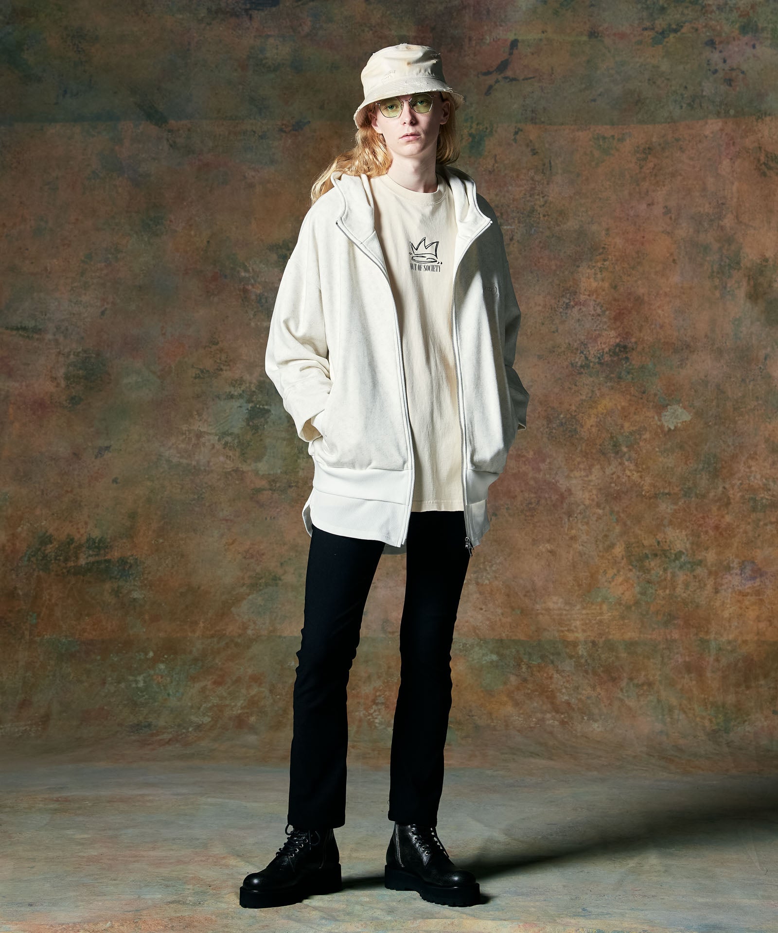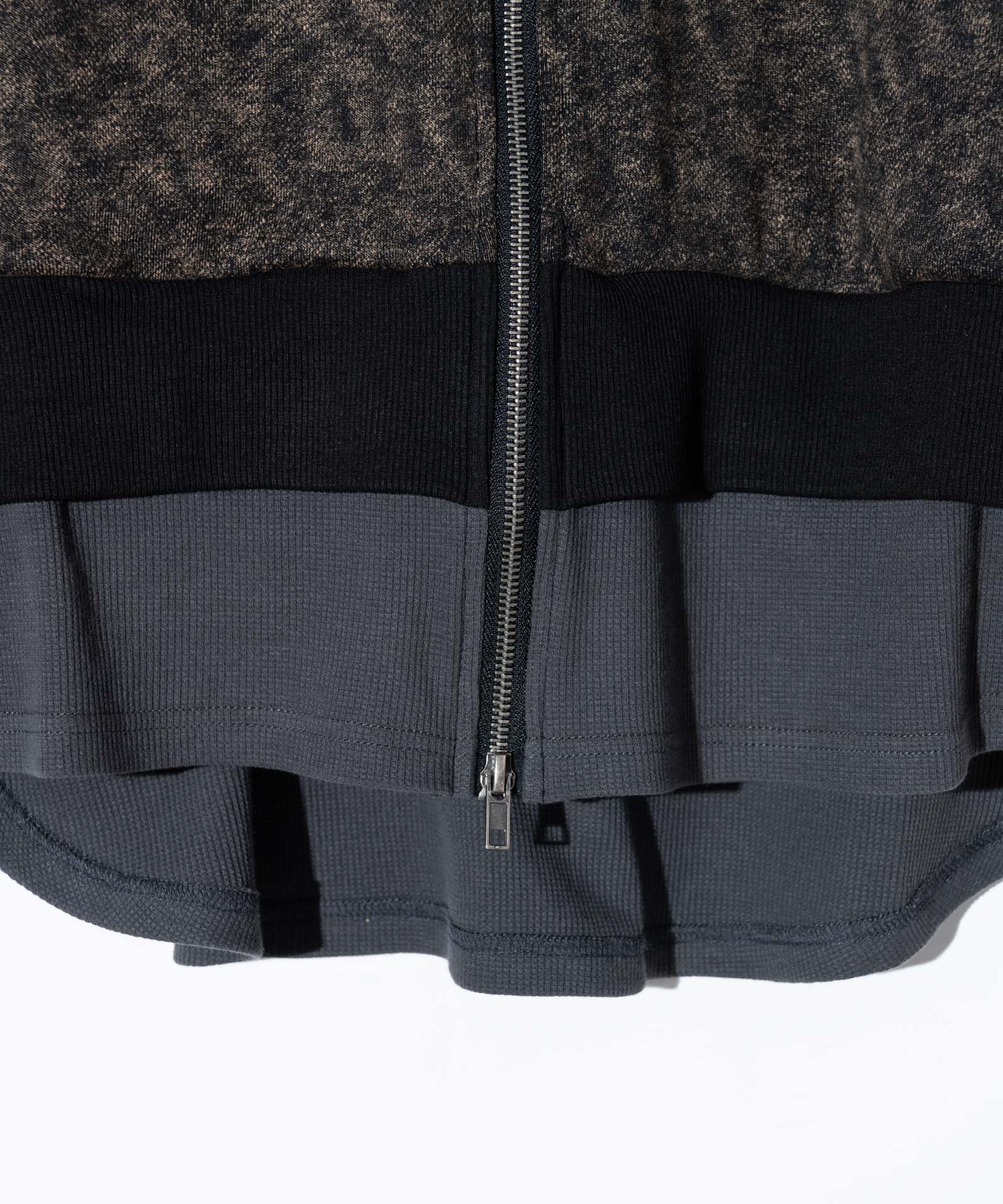 계층화 된 크리드 까마귀는 브랜드의 특수 인조 레이어링을 반영하는 지퍼 업 까마귀입니다. 대형 실루엣 바디는 현대적인 하이 넥 디자인입니다. 밑단과 커프는 열 직물로 만든 가짜 부품으로 장식되어 있으며 다양한 재료의 아방가르드 혼합물을 만듭니다. 전면 지퍼에는 이중 지퍼 설계가 있으며 개구부 및 닫으면 내부 층을 볼 수있어 더 깊은 레이어링이 생성됩니다. 페이드 마감으로 생성 된 사라진 질감은 또한 스타일에 우아함을 더합니다.