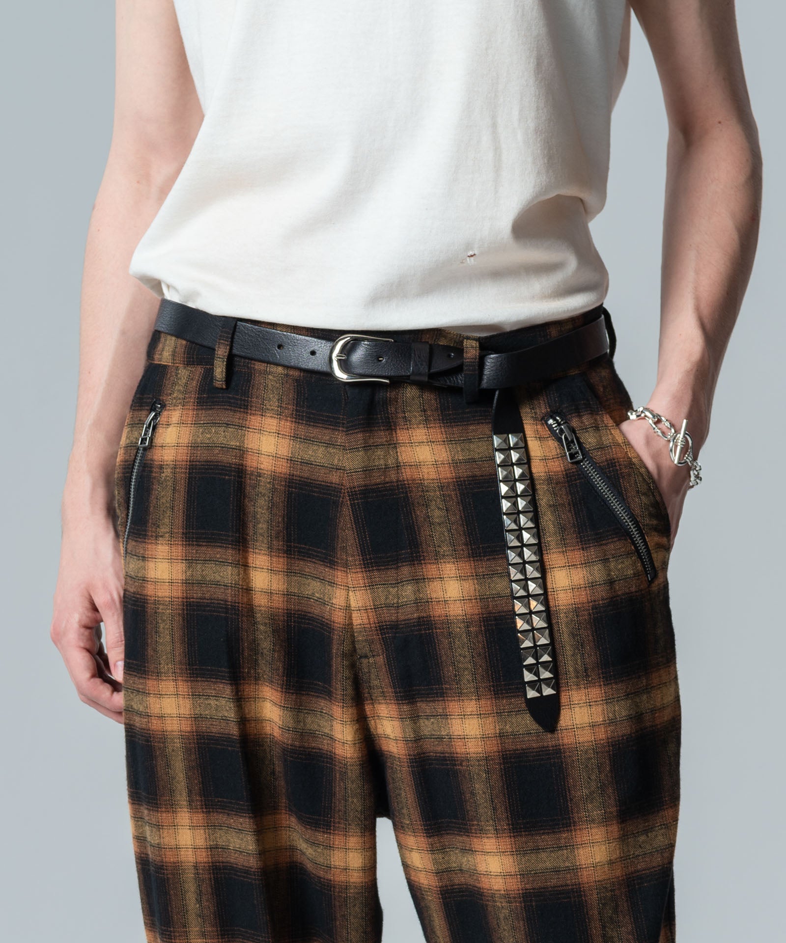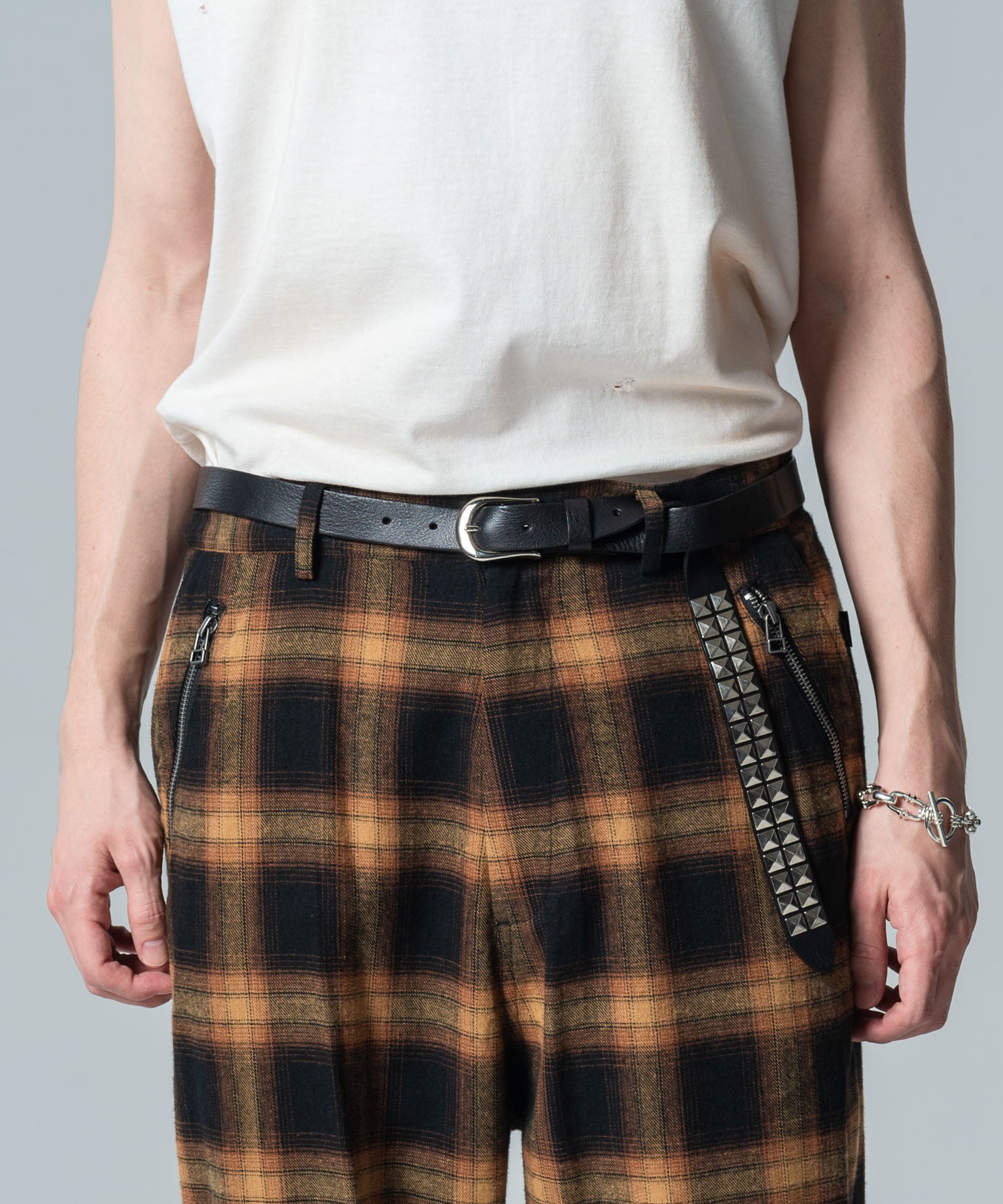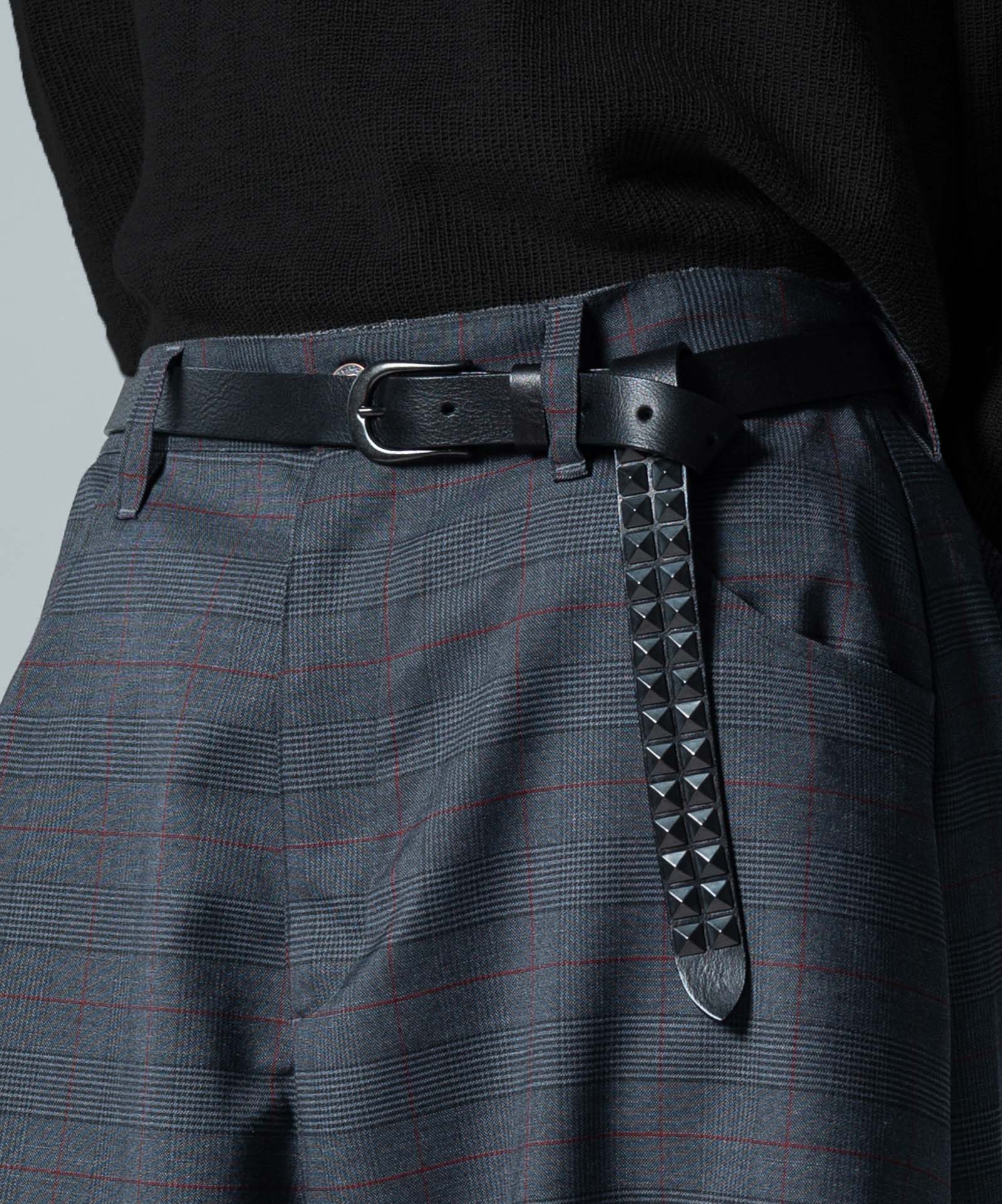 펑크 스터드 벨트는 하드 코어 펑크 스타일을 연상시키는 금속 부품으로 대담하게 장식되어 있습니다. 칼 끝에서 두 줄로, Siliver는 은색 스터드로 장식되어 있으며 검은 색은 검은 색 스터드로 장식되어 있으며, 검은 색 스터드로 장식되어 있으며, 이것은 검의 끝이 매달려있는 것을 착용하는 것을 목표로합니다. 이 재료는 최고 품질의 가죽이며 시간이 지남에 따라 변할 것으로 예상되는 Tochigi Leather이며 도쿄의 공장에서 벨트에서 마감됩니다.