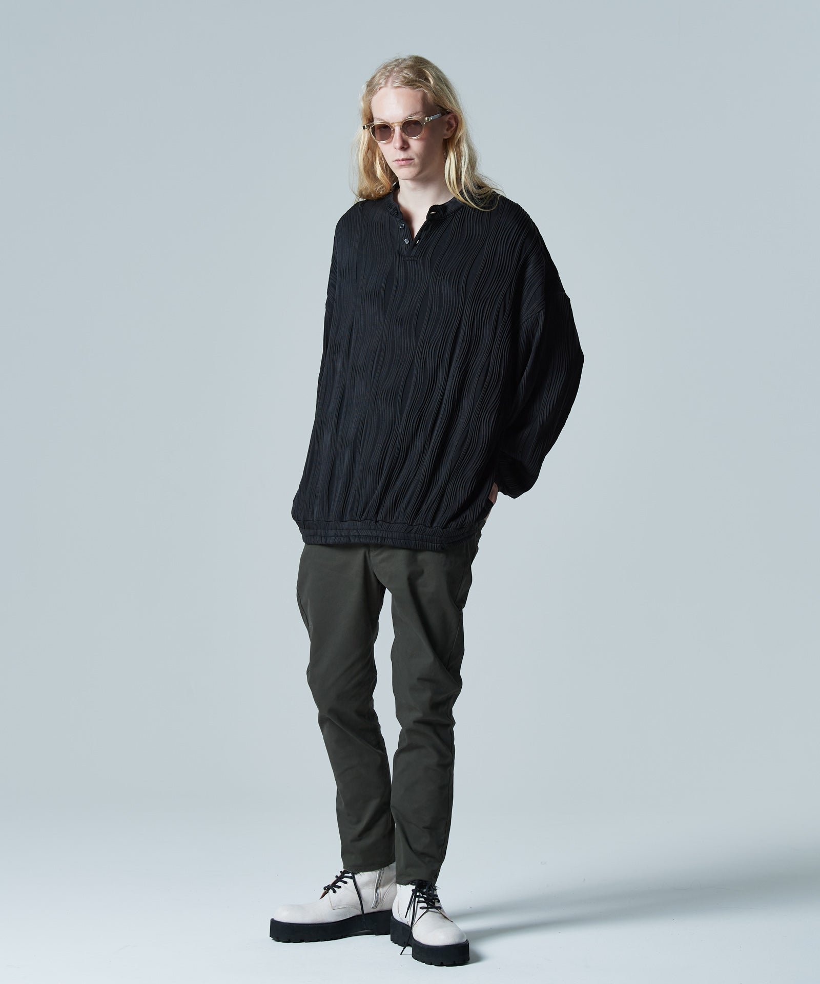 Glamor Henley Cutsew는 Henley Neck Cut을 우아하게 표현하고 브랜드의 독특한 해석으로 꿰매어졌습니다. 섬유는 고르지 않은 간소화 된 턱이있는 스트레치 직물로 만들어졌습니다. 직물의 질감은 뜨개질 바늘로 메쉬를 생성 한 다음 뜨개질 직물에 묶는 신중한 과정을 통해 융기 부분을 표현하는 것입니다. 고급 스럽지만 쉽습니다. 몸은 느슨하고 대형 크기이지만 밑단과 소매는 탄력적이며 매끄럽고 편안한 윤곽을 만듭니다. 또한 목에는 얕은 전선이 낮은 소형 3 버튼 디자인이있어 컷 및 셔츠 또는 셔츠로 스타일이 될 수있는 우아한 모양을 만듭니다.