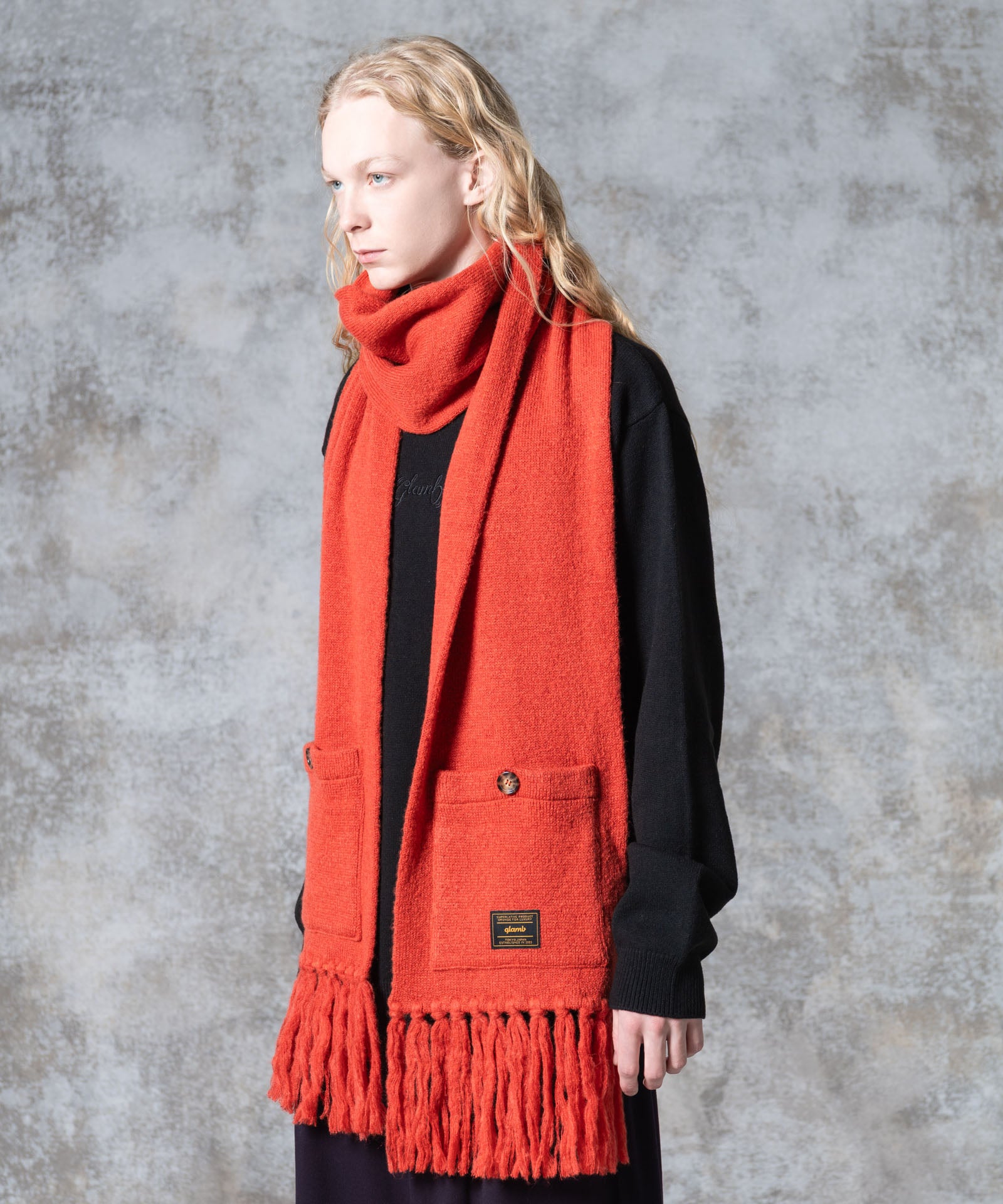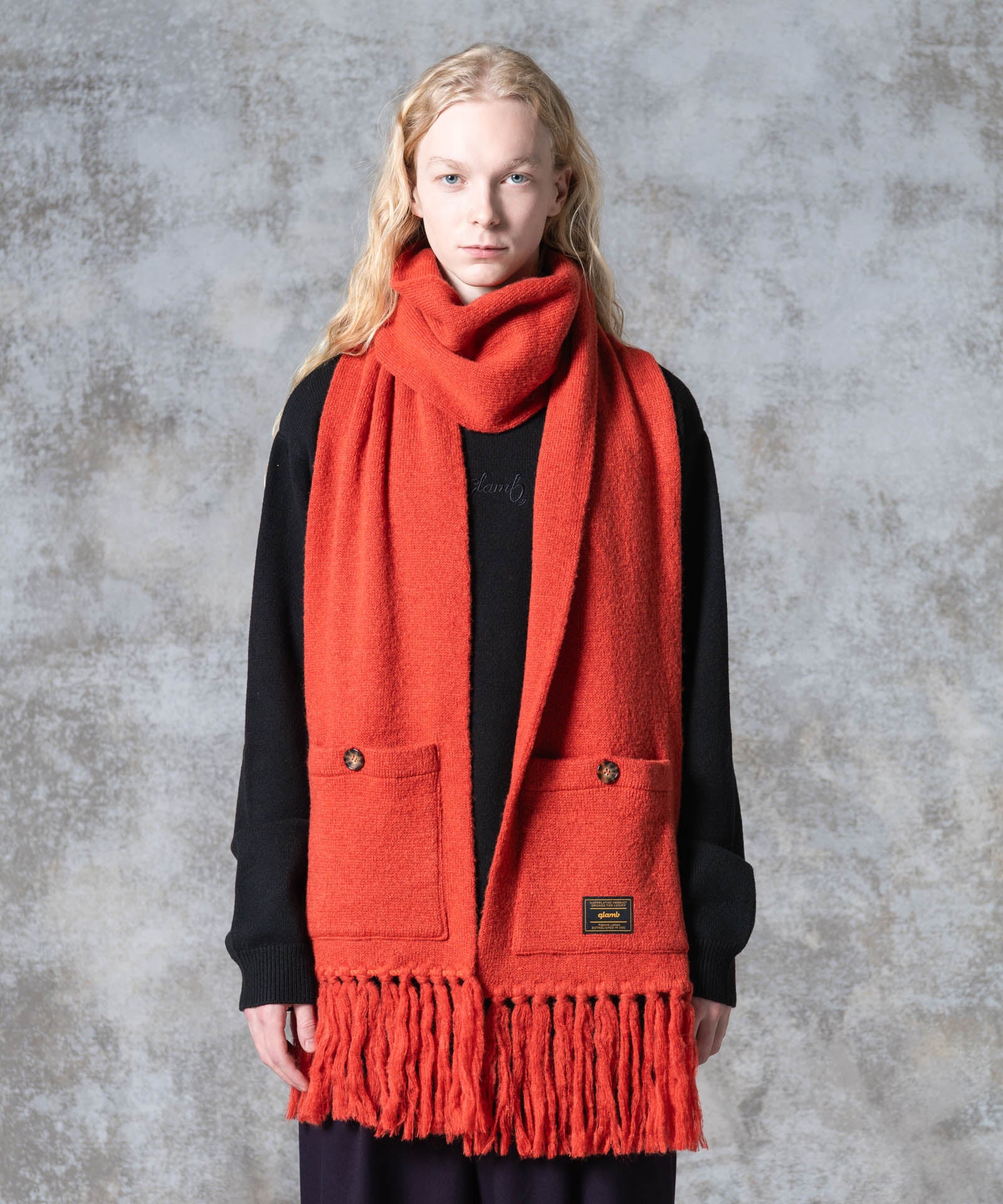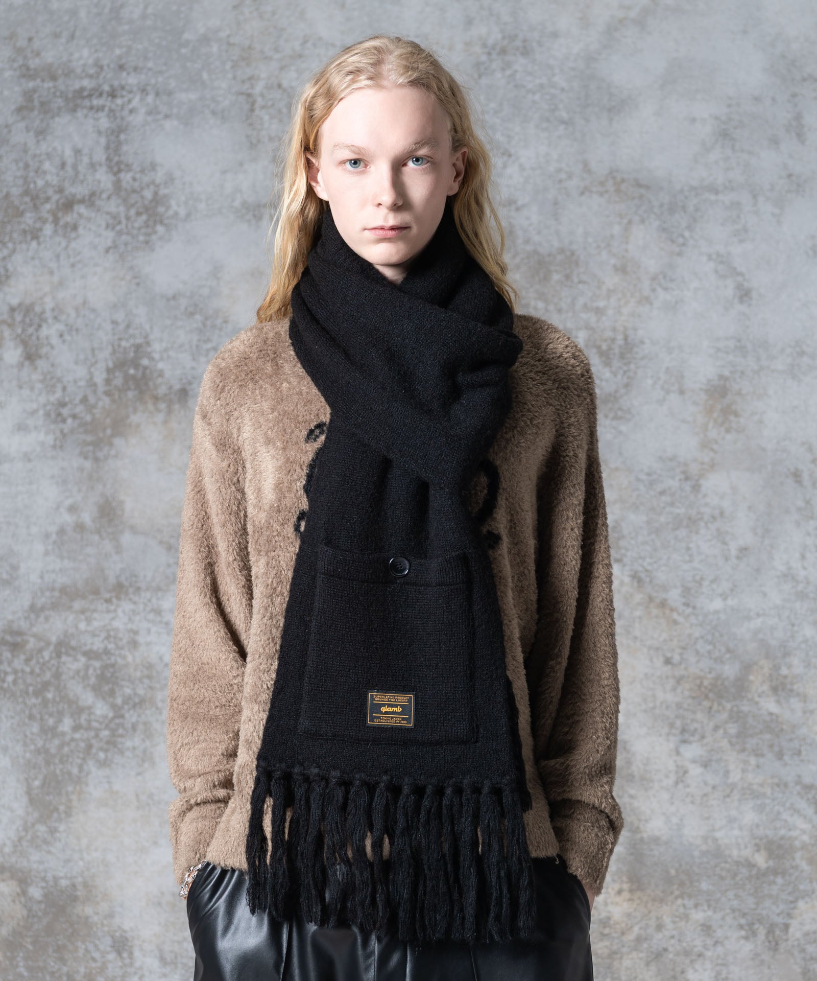 포켓 머플러에는 큰 머플러에 1 점 디자인이 추가되어 액세서리로 더 잘 보이게합니다. 밀링 니트로 마감 한 250cm 길이의 실루엣은 팁에 프린지와 함께 향수를 불러 일으 킵니다. 또한 버튼 포켓이 양쪽 끝에 제공되며 악센트로서 브랜드 태그가있는 자세한 외관은 가을과 겨울 스타일에 기술적 인 재미를 더합니다.