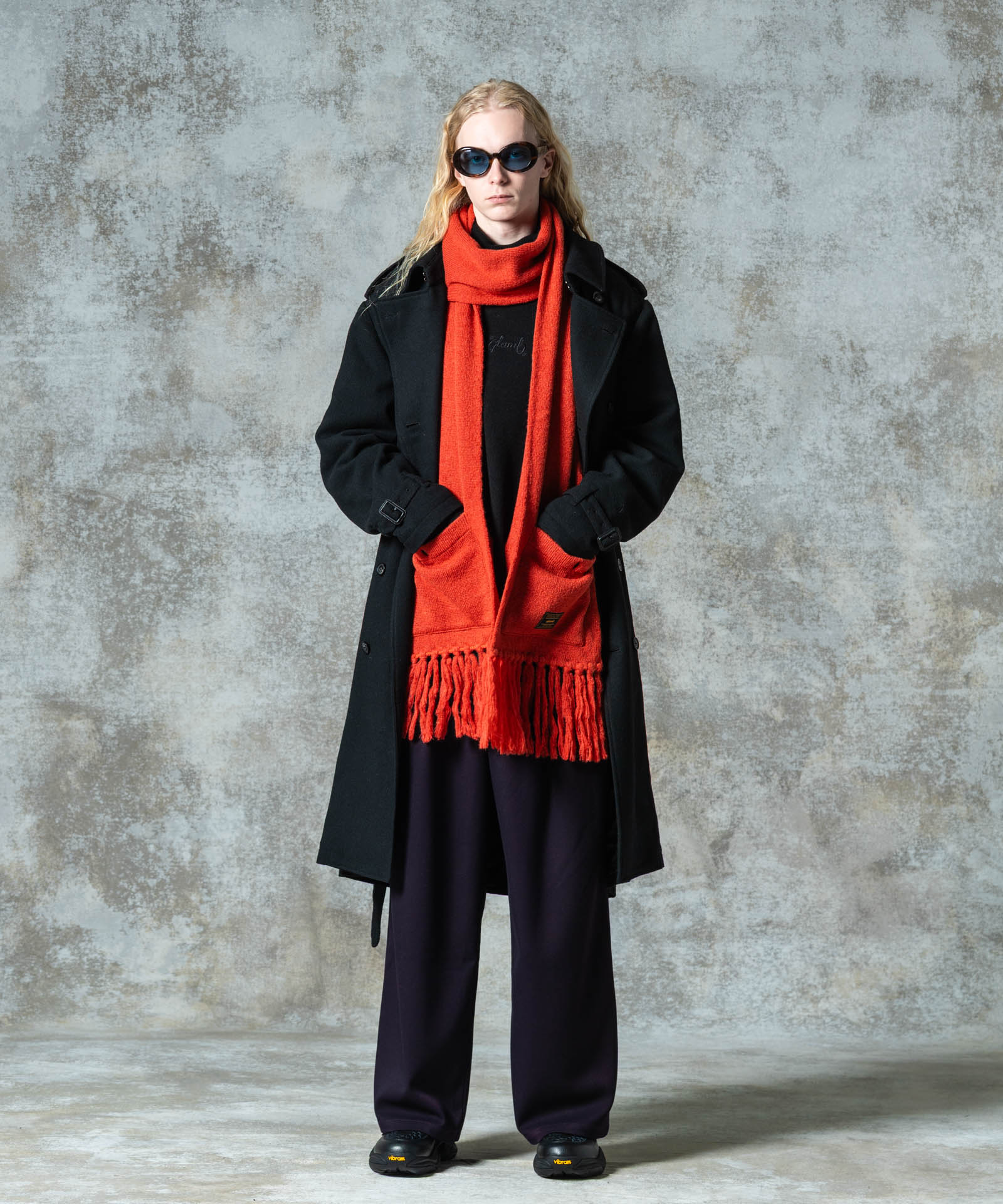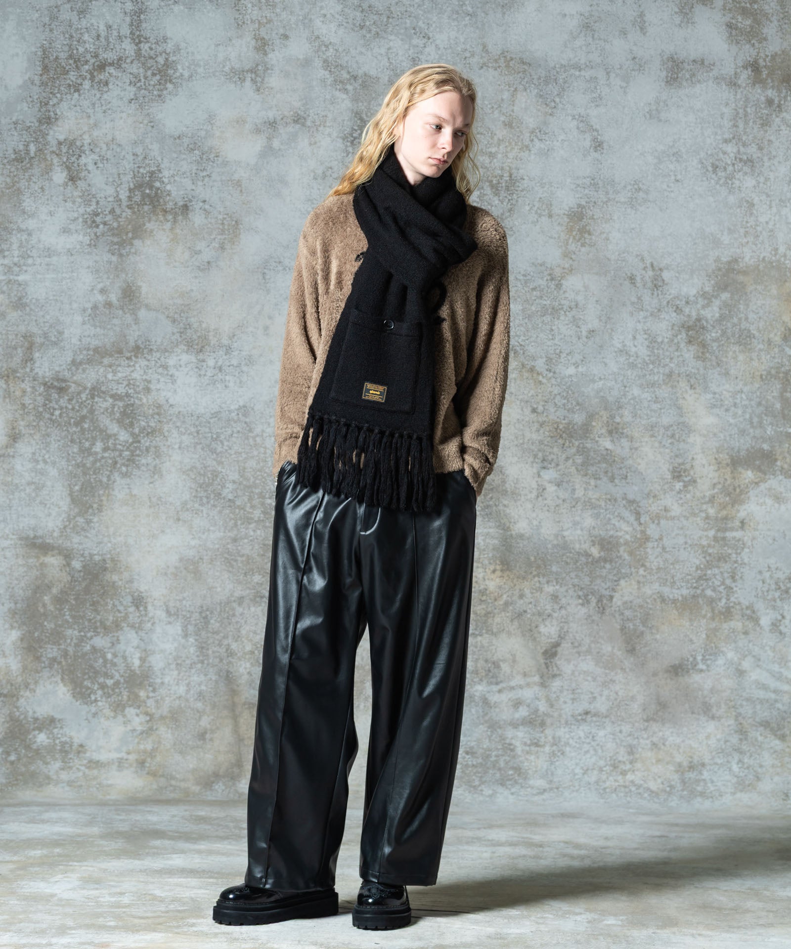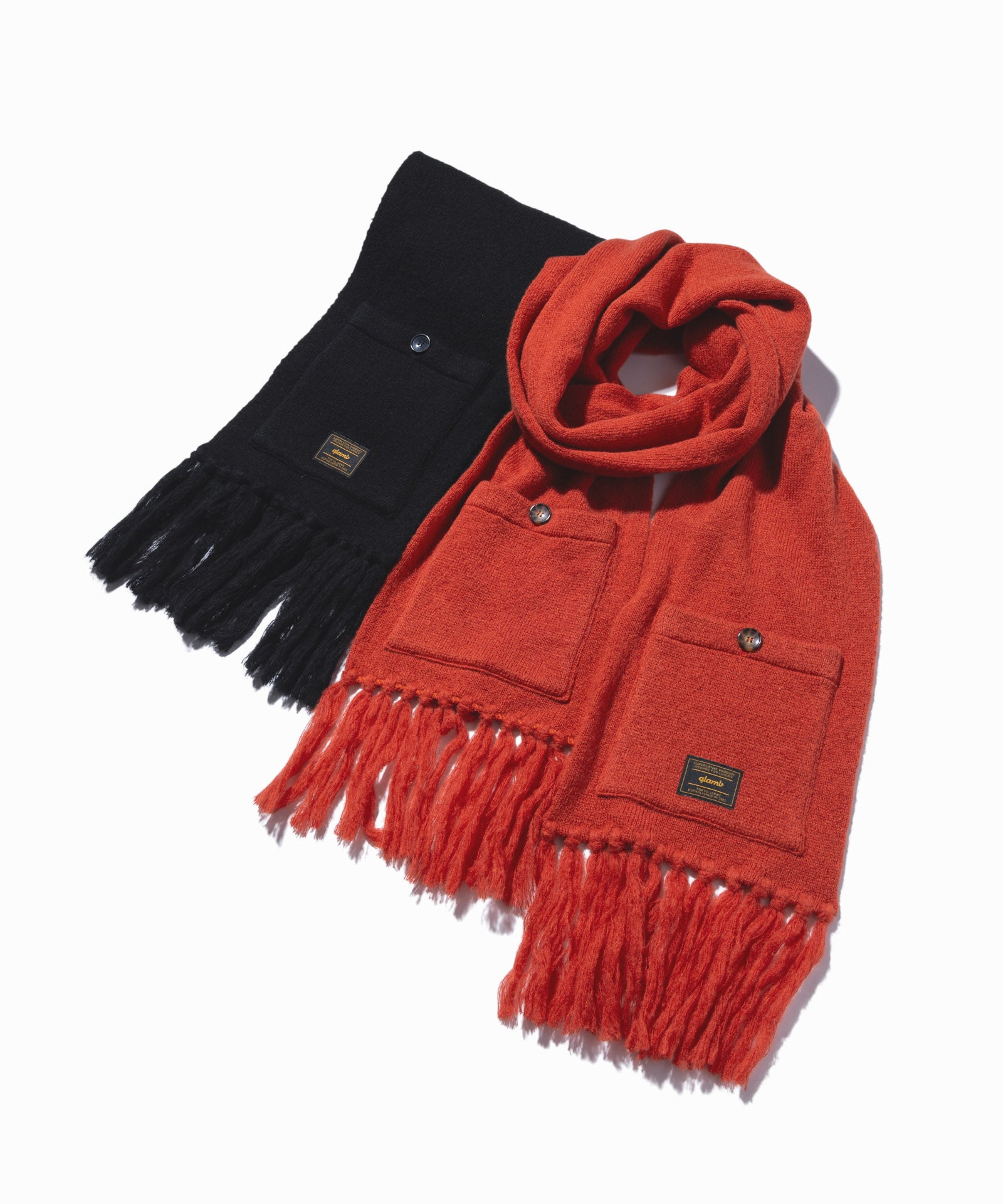 포켓 머플러에는 큰 머플러에 1 점 디자인이 추가되어 액세서리로 더 잘 보이게합니다. 밀링 니트로 마감 한 250cm 길이의 실루엣은 팁에 프린지와 함께 향수를 불러 일으 킵니다. 또한 버튼 포켓이 양쪽 끝에 제공되며 악센트로서 브랜드 태그가있는 자세한 외관은 가을과 겨울 스타일에 기술적 인 재미를 더합니다.