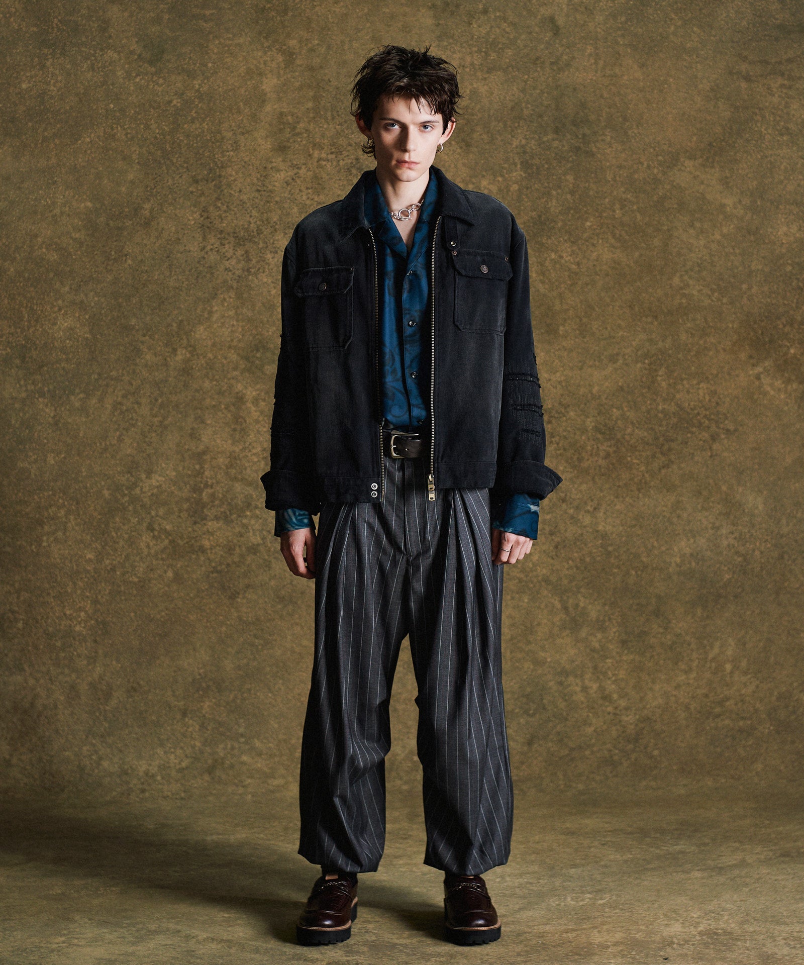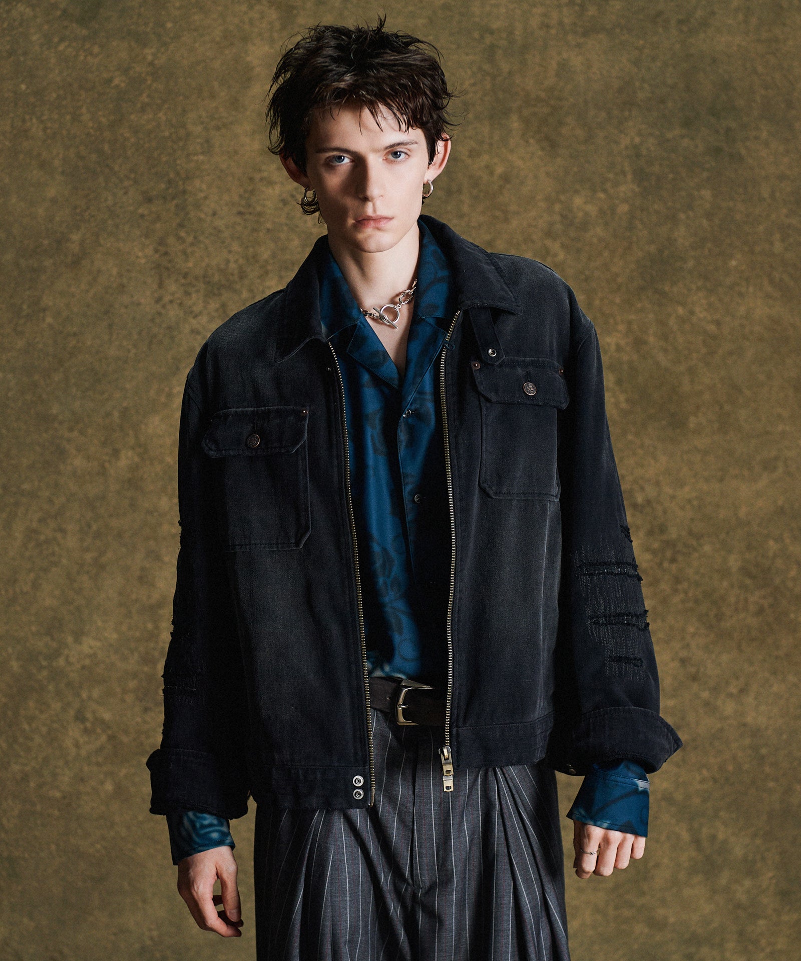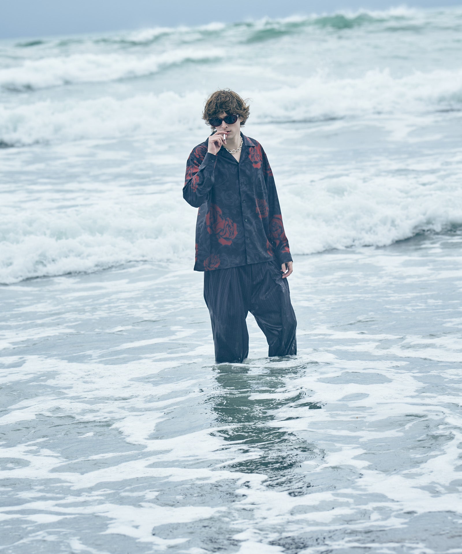 オープンカラーシャツにアイコニックな柄使いを掛け合わせたRose Blur Shirt。ゆとりある身幅にドロップショルダーを組み合わせたルーズフィッティングのボディにあしらったのは、退廃的なダークカラーで描き出されたバラの花弁。大小様々に散りばめられた柄は揺らぎを加えるブラーエフェクトを施すことで輪郭を曖昧に。ミステリアスな奥行きを持ったルックスは秋冬のレイヤードにリリカルな表情を落とすでしょう。