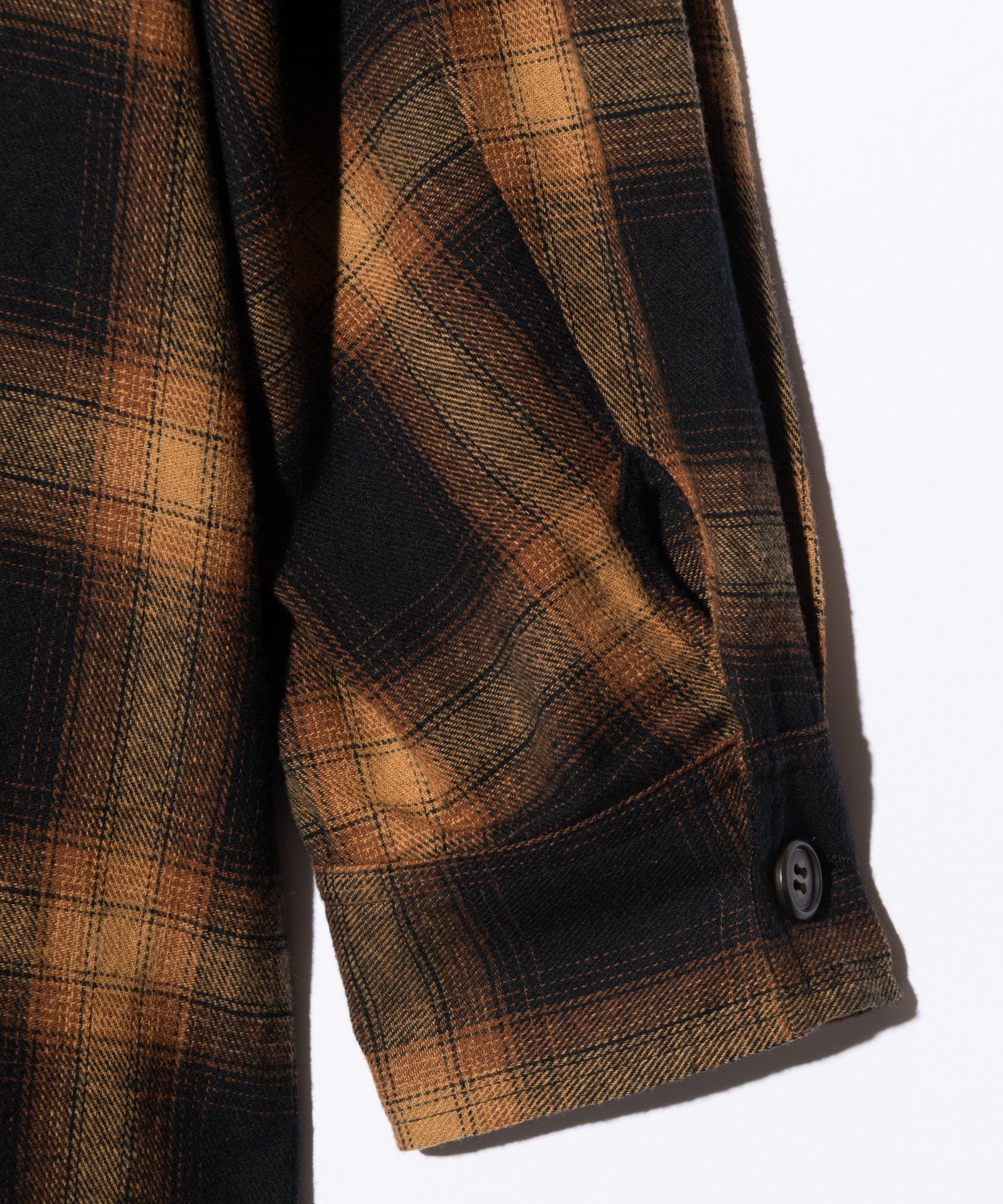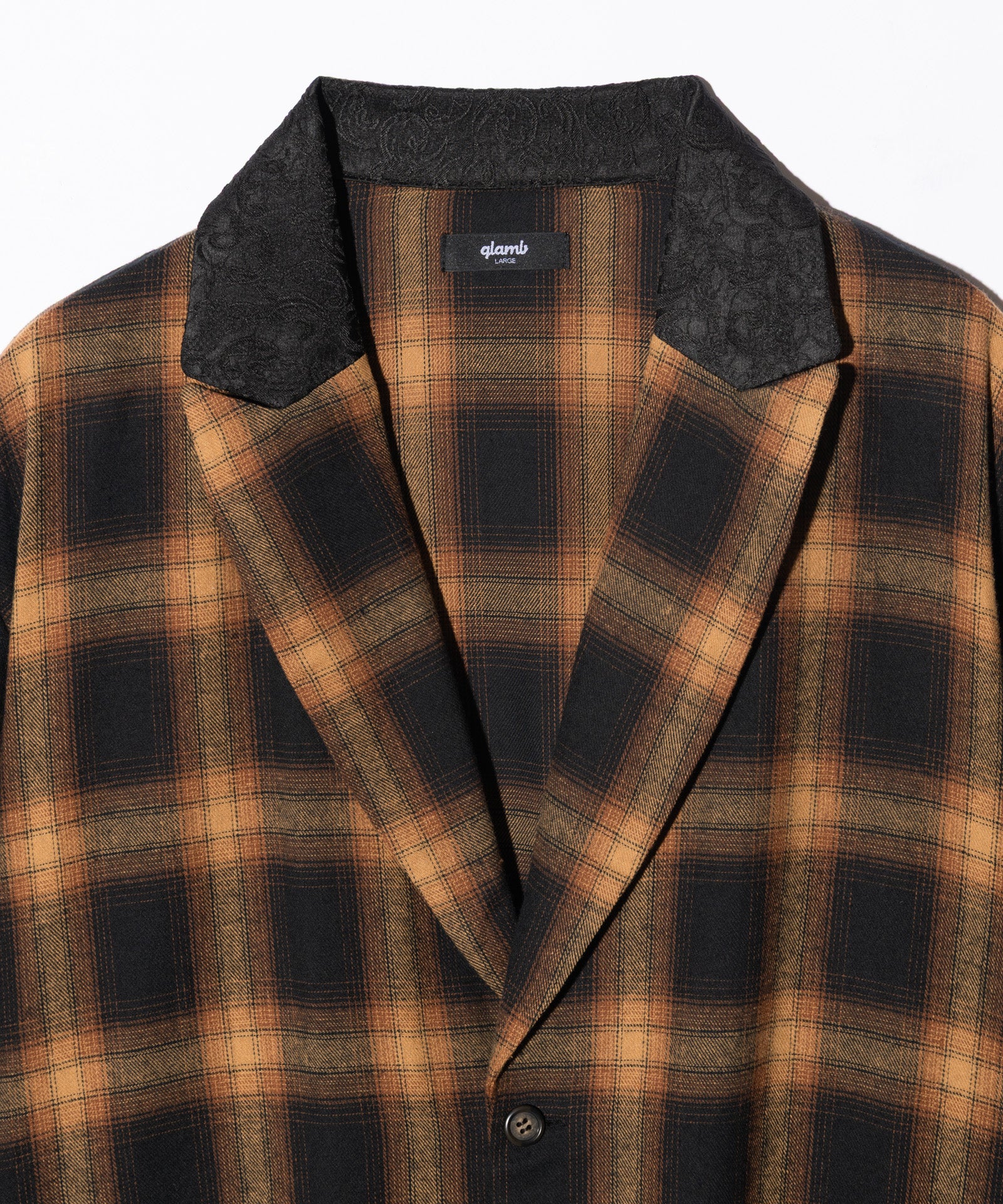 チェスターコートとガウンを融合したかの優雅なロングシルエットがストリートスタイルに新たな装いをもたらすExtra Long Gown Shirt。ピークドラペルとショールカラーを組み合わせたかの首元は上襟にペイズリー生地をあしらったグラマラスな佇まい。膝下までかかるロングシルエットは身幅にゆとりを持たせたルーズフィッティングとなっています。腰元2つのポケットはアウトポケットであしらってイージーなニュアンスをプラス。オールブラックの中にクラック柄を潜ませたBlack、グランジィなオンブレチェック使いのYellowとカラーバリエーションによって異なる個性も魅力の1枚です。
