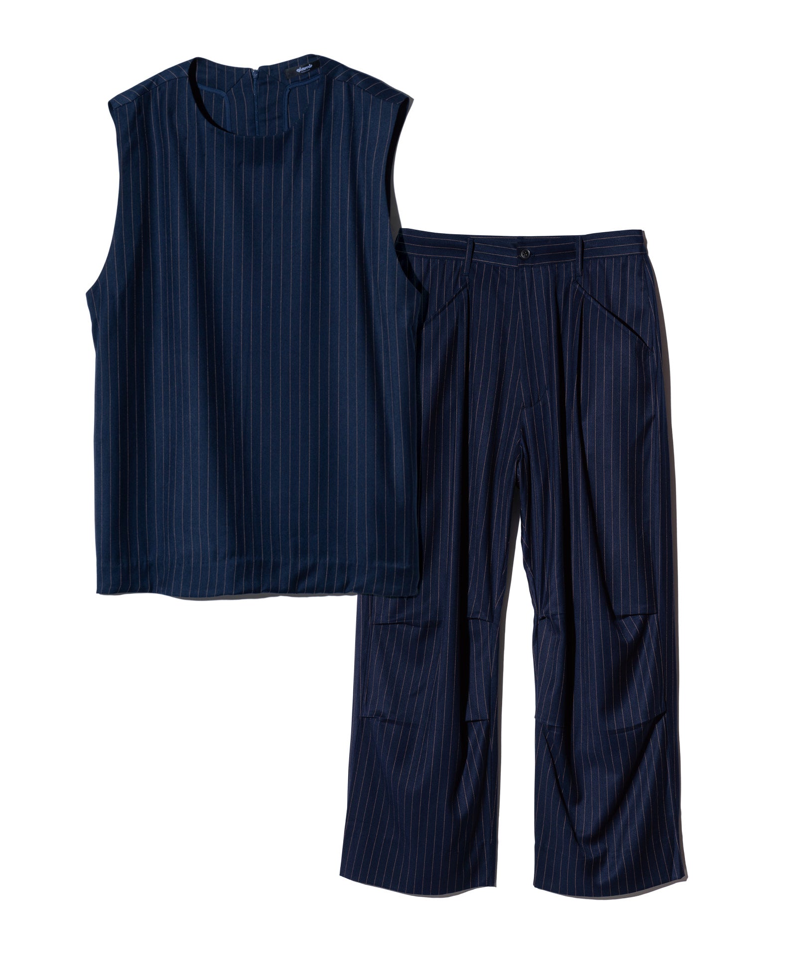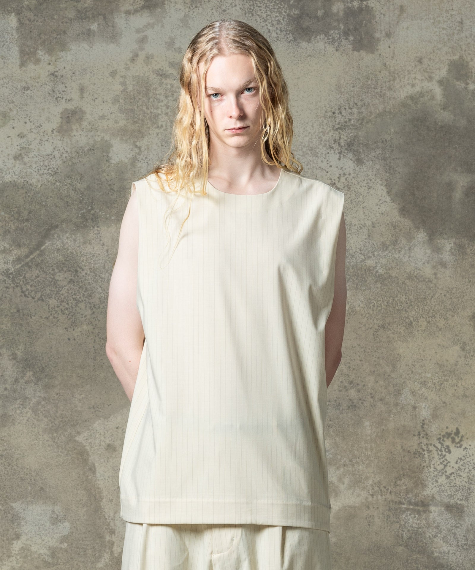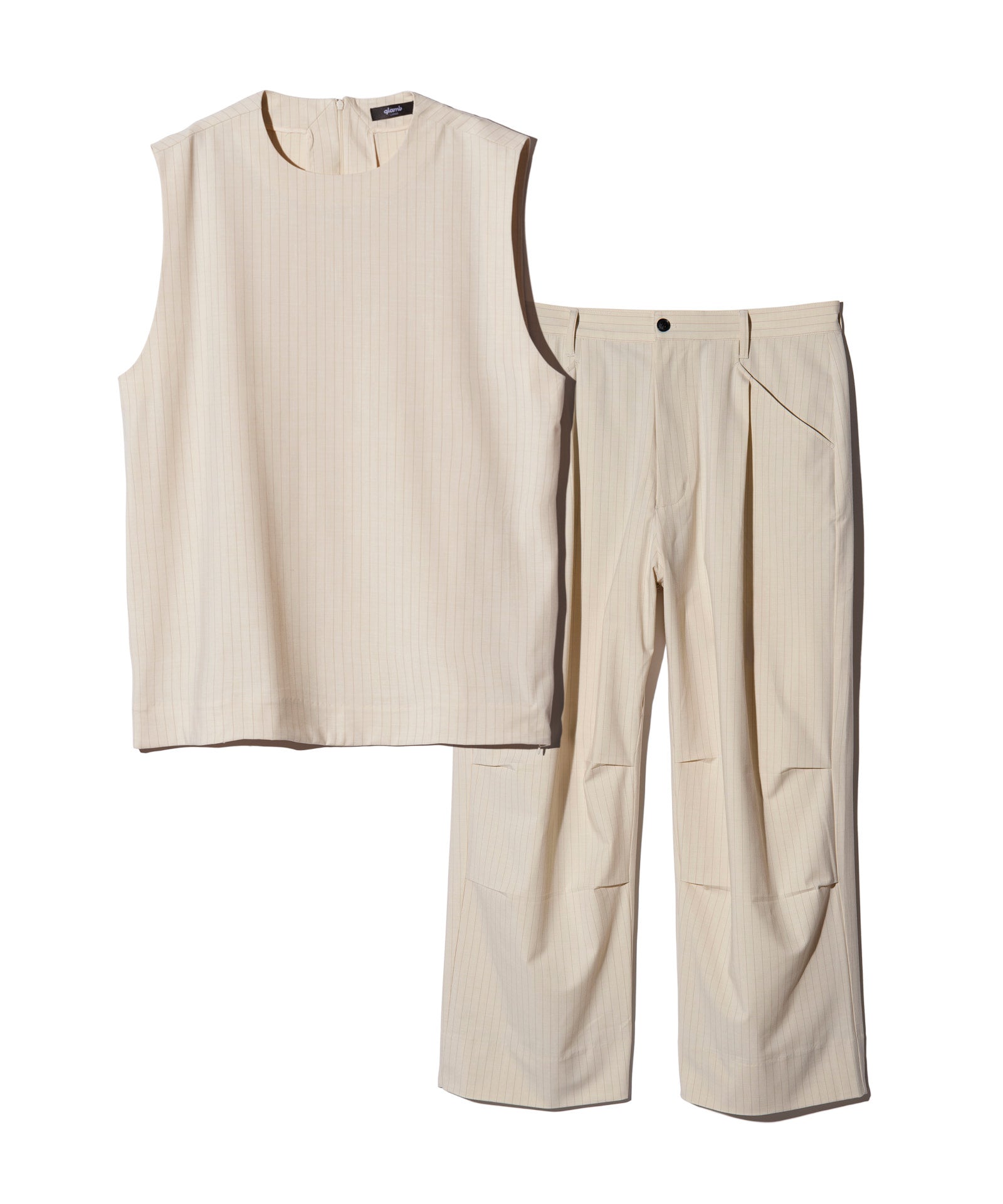 Stunn Seeveless는 기존 스트리트웨어의 "Stunn"재 해석의 컬렉션 테마와 함께 이번 시즌의 세계관을 예상했습니다. 직물은 평범한 검은 색이고 상아와 해군은 줄무늬가 있으며 각 색상 변화에 대해 다른 패턴의 직물에 적합합니다. 상단은 민소매 풀오버 셔츠입니다. 뒷바체에는 이번 시즌의 세부 사항 인 Cross Darts가 강조되어 있습니다. 지퍼는 다트의 상단과 신체의 양쪽에 제공되므로, 쉽게 입고 이륙 할 수 있으며, 개구부와 닫아서 내부 레이어링을 즐길 수 있습니다. 바닥에는 무릎에 두 개의 턱으로 3 차원으로 구성된 헐렁한 실루엣이 있습니다. 깊은 슬래시 포켓은 또한 전반적인 외관에 균형을 더합니다.