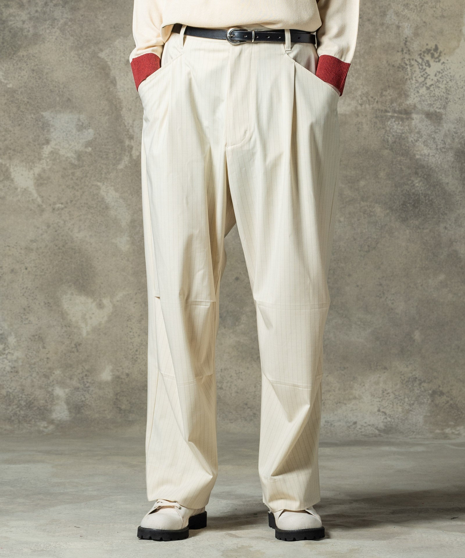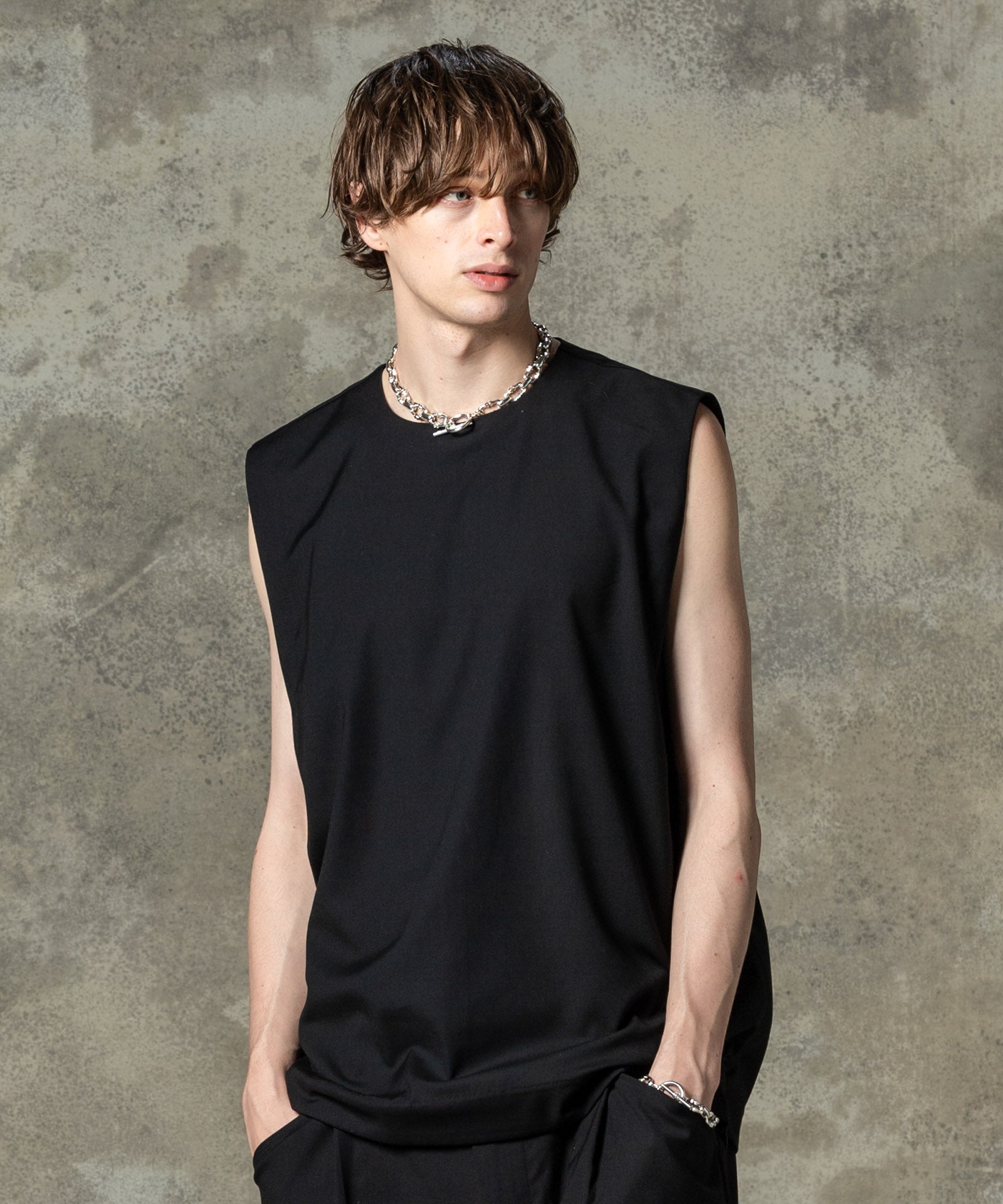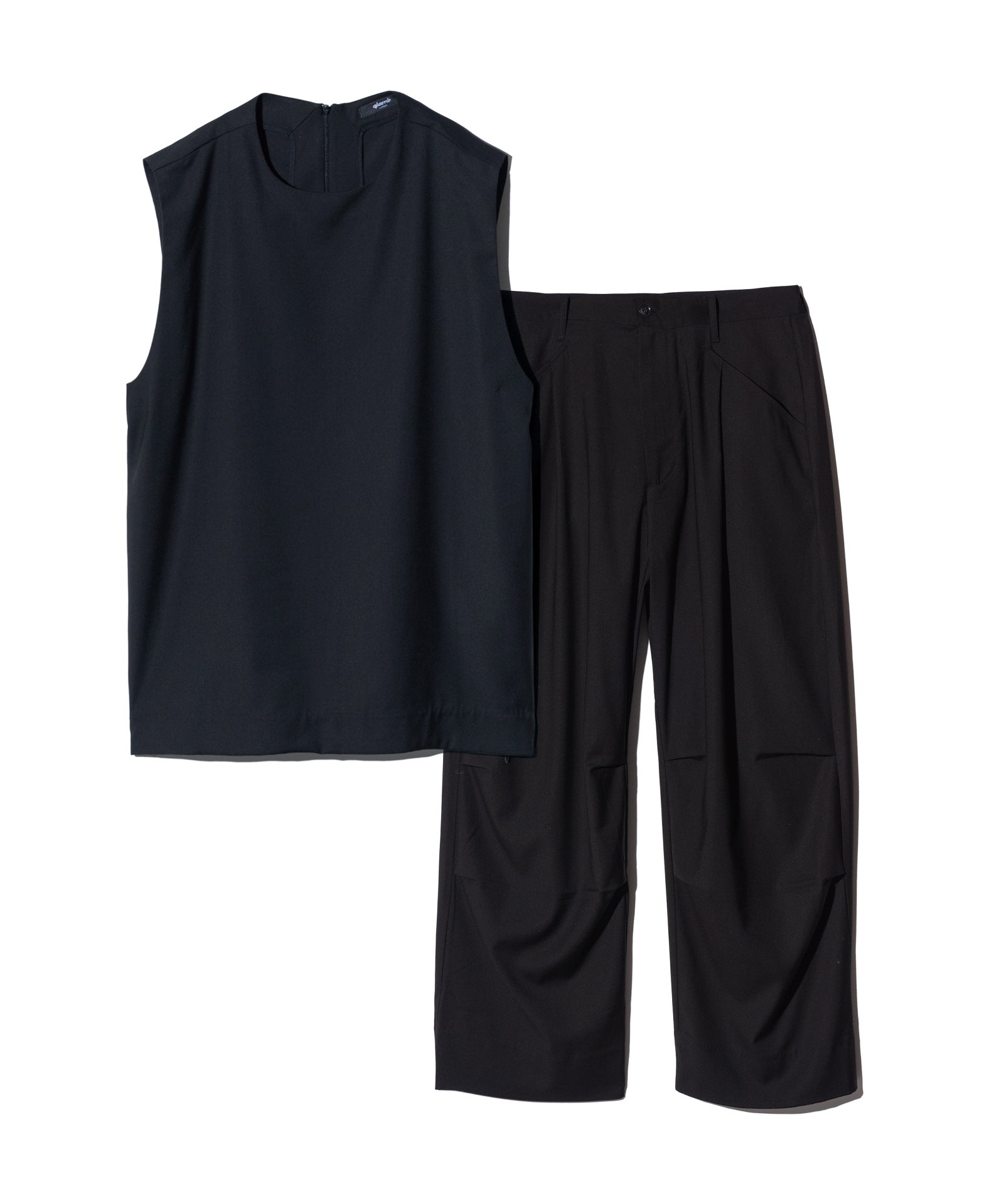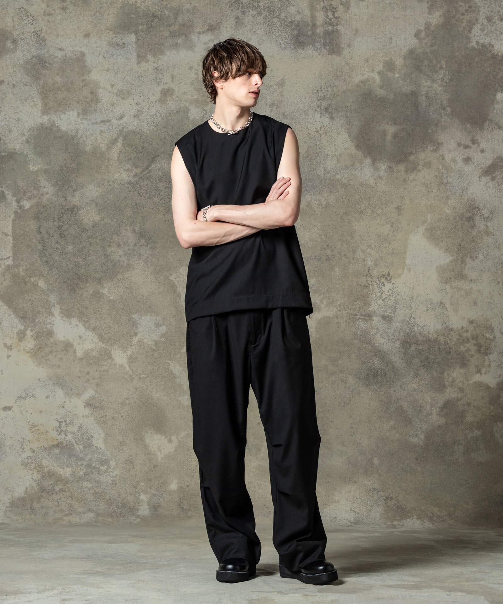 Stunn Seeveless는 기존 스트리트웨어의 "Stunn"재 해석의 컬렉션 테마와 함께 이번 시즌의 세계관을 예상했습니다. 직물은 평범한 검은 색이고 상아와 해군은 줄무늬가 있으며 각 색상 변화에 대해 다른 패턴의 직물에 적합합니다. 상단은 민소매 풀오버 셔츠입니다. 뒷바체에는 이번 시즌의 세부 사항 인 Cross Darts가 강조되어 있습니다. 지퍼는 다트의 상단과 신체의 양쪽에 제공되므로, 쉽게 입고 이륙 할 수 있으며, 개구부와 닫아서 내부 레이어링을 즐길 수 있습니다. 바닥에는 무릎에 두 개의 턱으로 3 차원으로 구성된 헐렁한 실루엣이 있습니다. 깊은 슬래시 포켓은 또한 전반적인 외관에 균형을 더합니다.