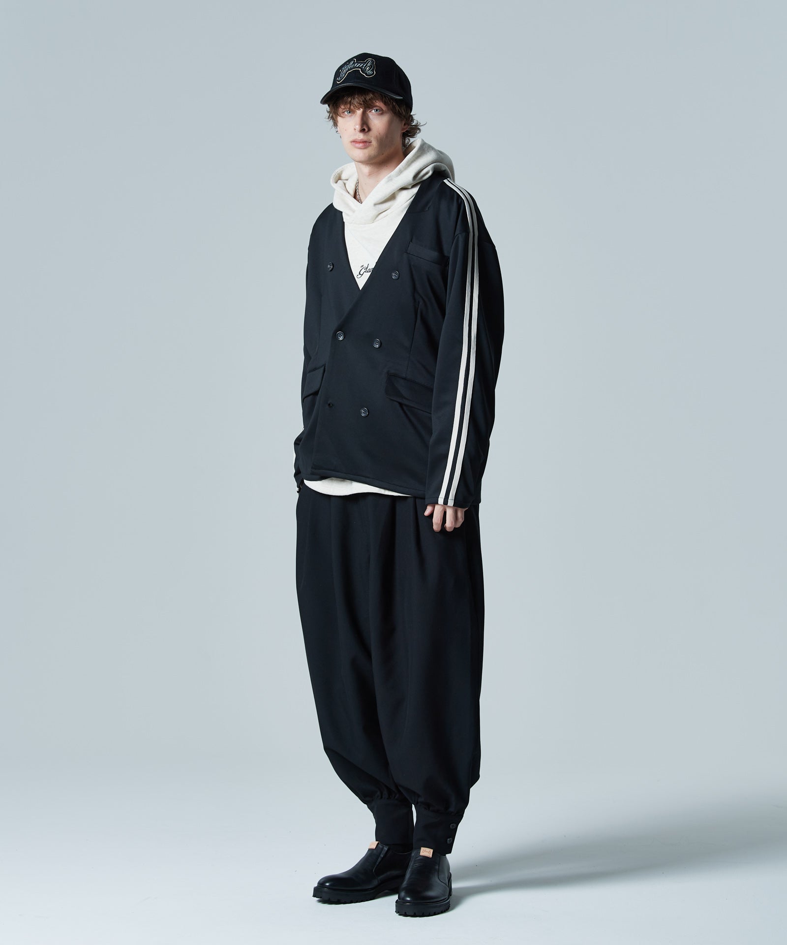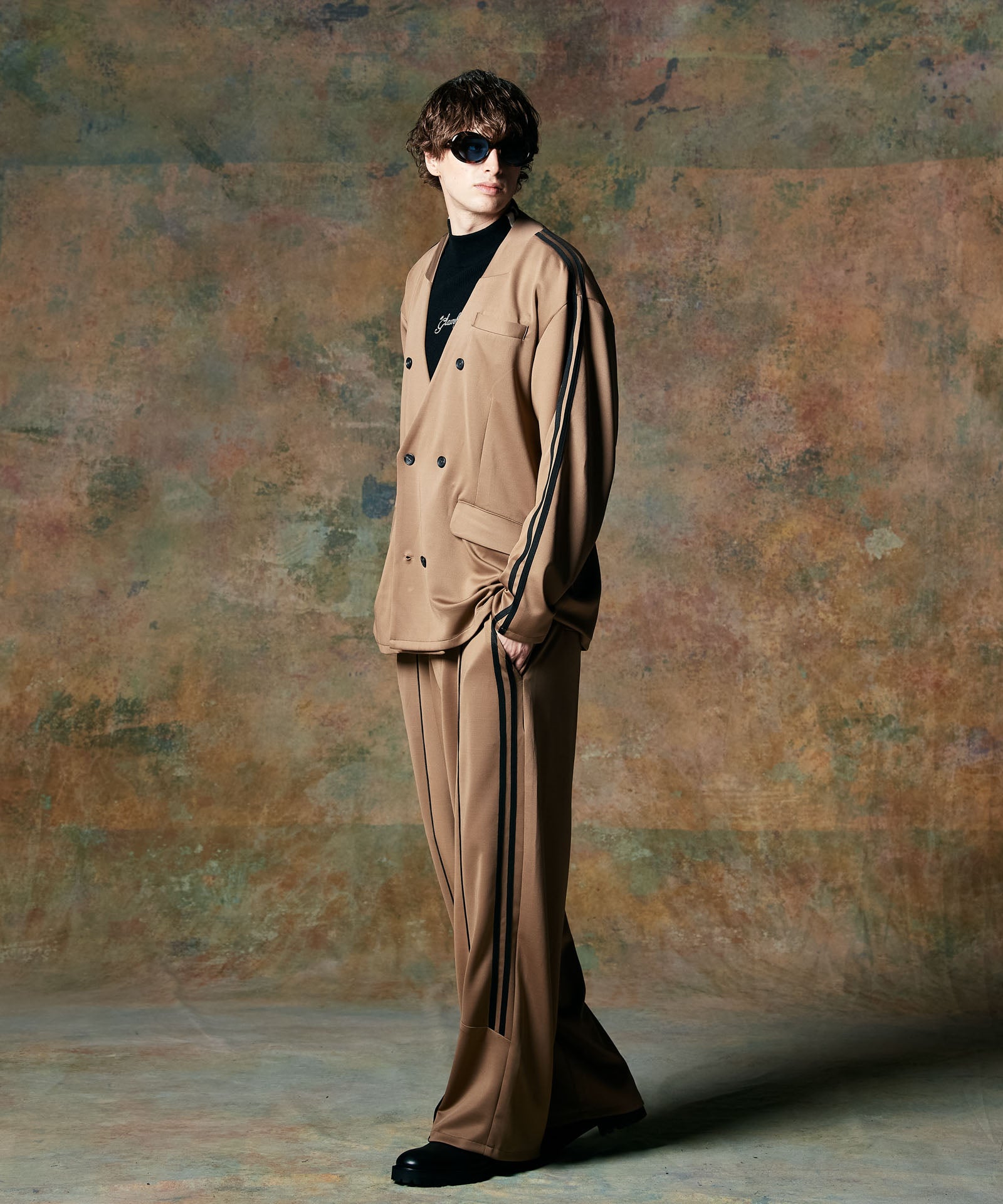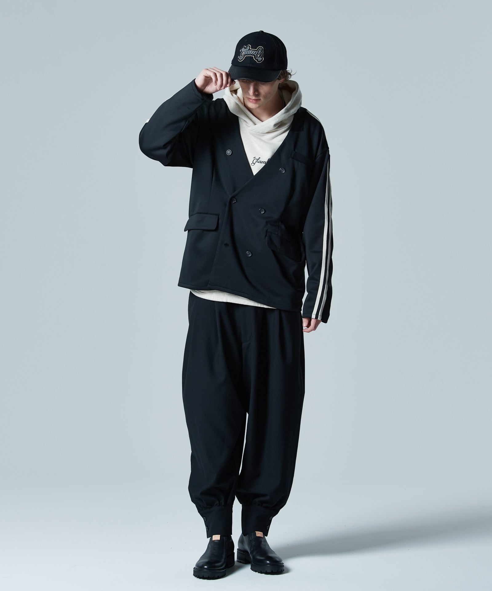 Line Jersey 설정은 독특하고 편안한 균형을 이용한 맞춤형 세트와 라인 유니폼의 혼합입니다. 라인 저지 재킷 인 The Top은 칼라를 결합한 독특한 마감재를 가지고 있으며, 옷깃을 생략하여 표현하고 전통적인 더블 브레스트 마감 처리합니다. 바닥은 라인 유니폼과 넓은 슬랙을 결합하고 경사 포켓과 밑단 부분으로 선을 자르고 미래의 뉘앙스를 추가합니다. 섬유는 편안한 반동으로 얇은 저지 소재로 만들어졌습니다.