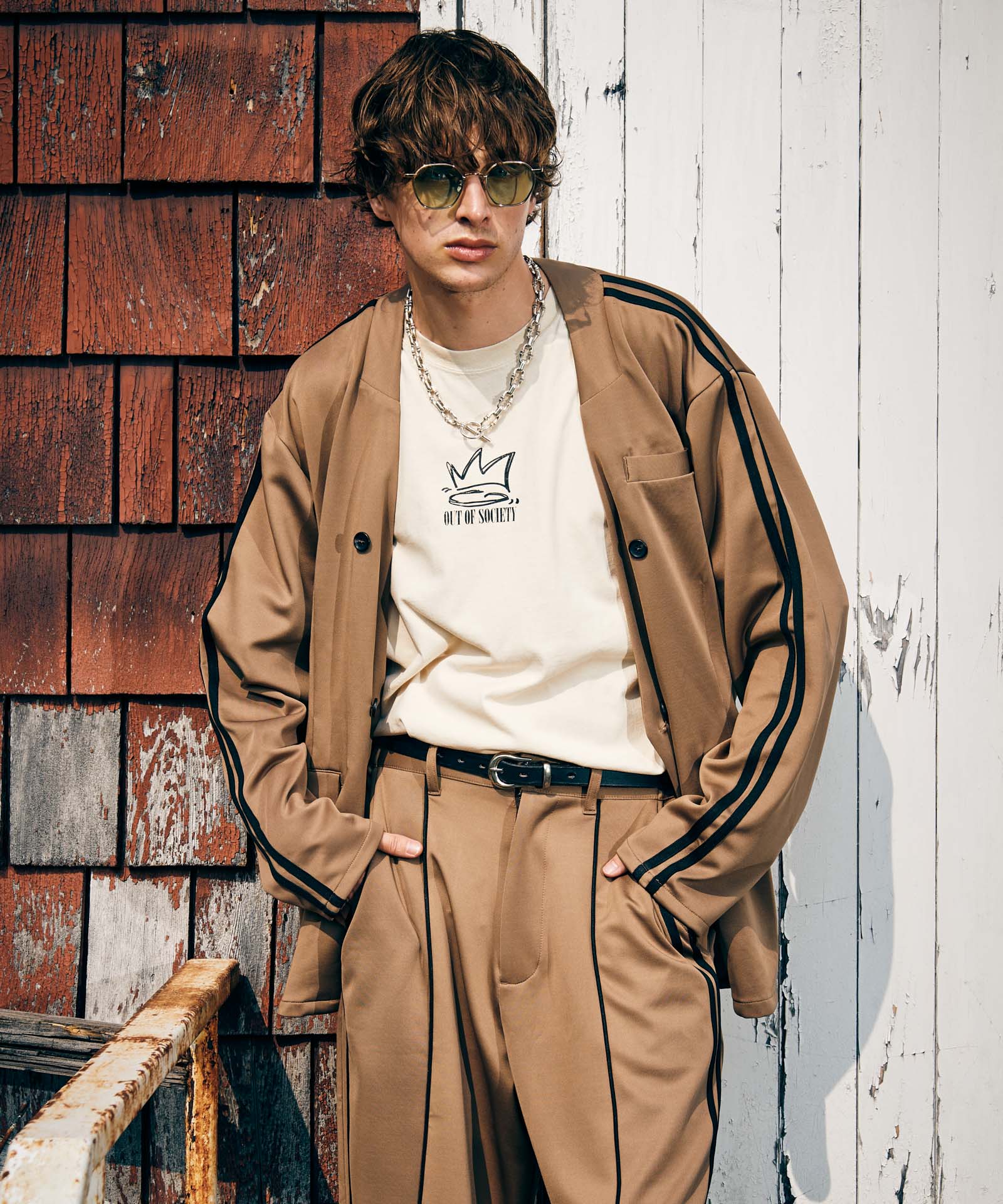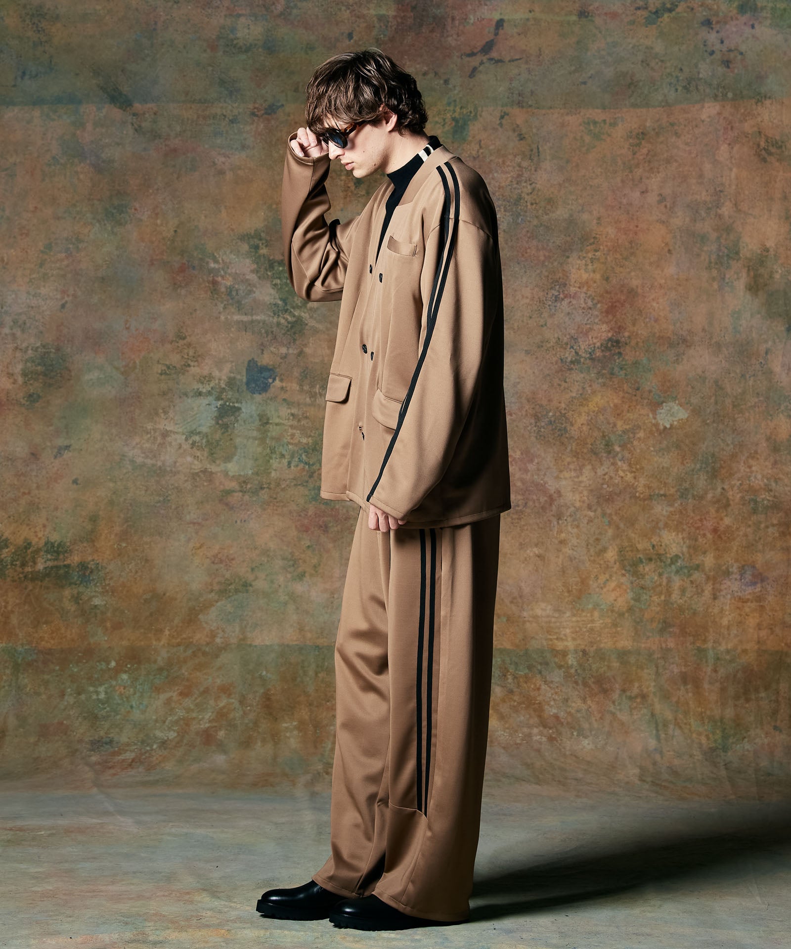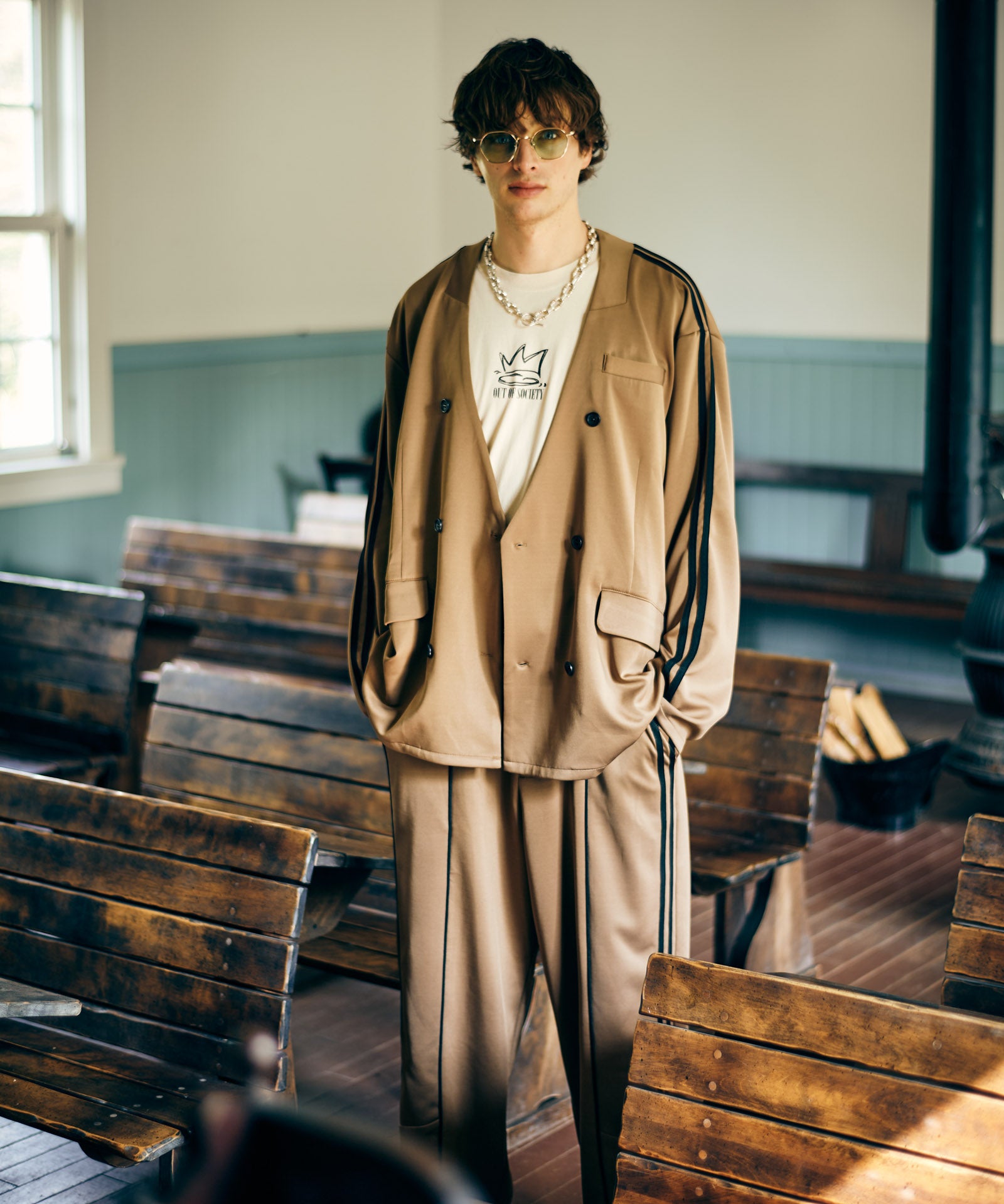 Line Jersey 설정은 독특하고 편안한 균형을 이용한 맞춤형 세트와 라인 유니폼의 혼합입니다. 라인 저지 재킷 인 The Top은 칼라를 결합한 독특한 마감재를 가지고 있으며, 옷깃을 생략하여 표현하고 전통적인 더블 브레스트 마감 처리합니다. 바닥은 라인 유니폼과 넓은 슬랙을 결합하고 경사 포켓과 밑단 부분으로 선을 자르고 미래의 뉘앙스를 추가합니다. 섬유는 편안한 반동으로 얇은 저지 소재로 만들어졌습니다.