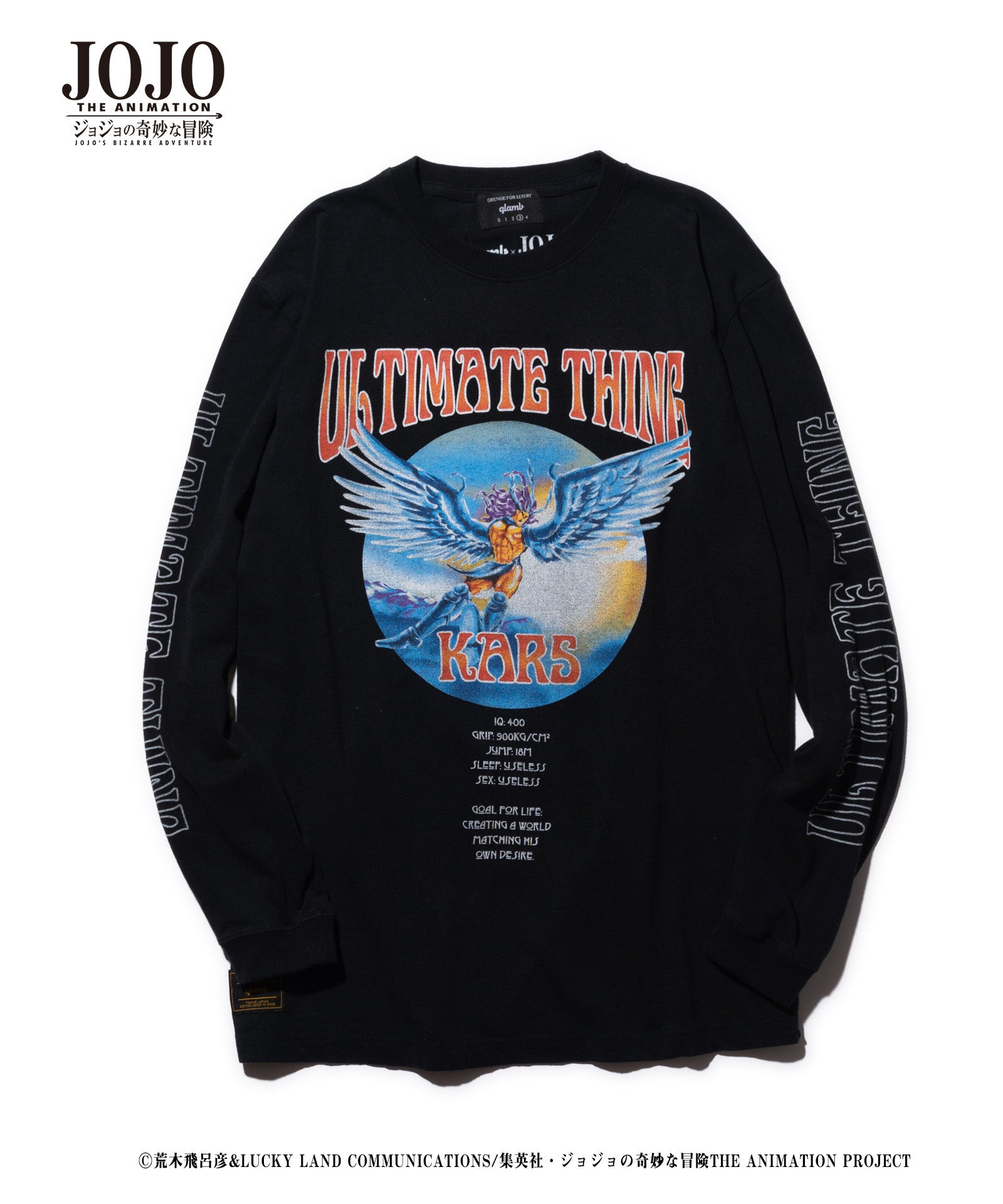 2021 년 봄, Glamb과 TV Anime "Jojo 's 기괴한 모험"이 협력했습니다. Kars Long Sleeves T는 "Battle Current"에 나타나는 Archenemy 자동차를 가상의 밴드 티셔츠를 연상시키는 외관과 결합합니다.