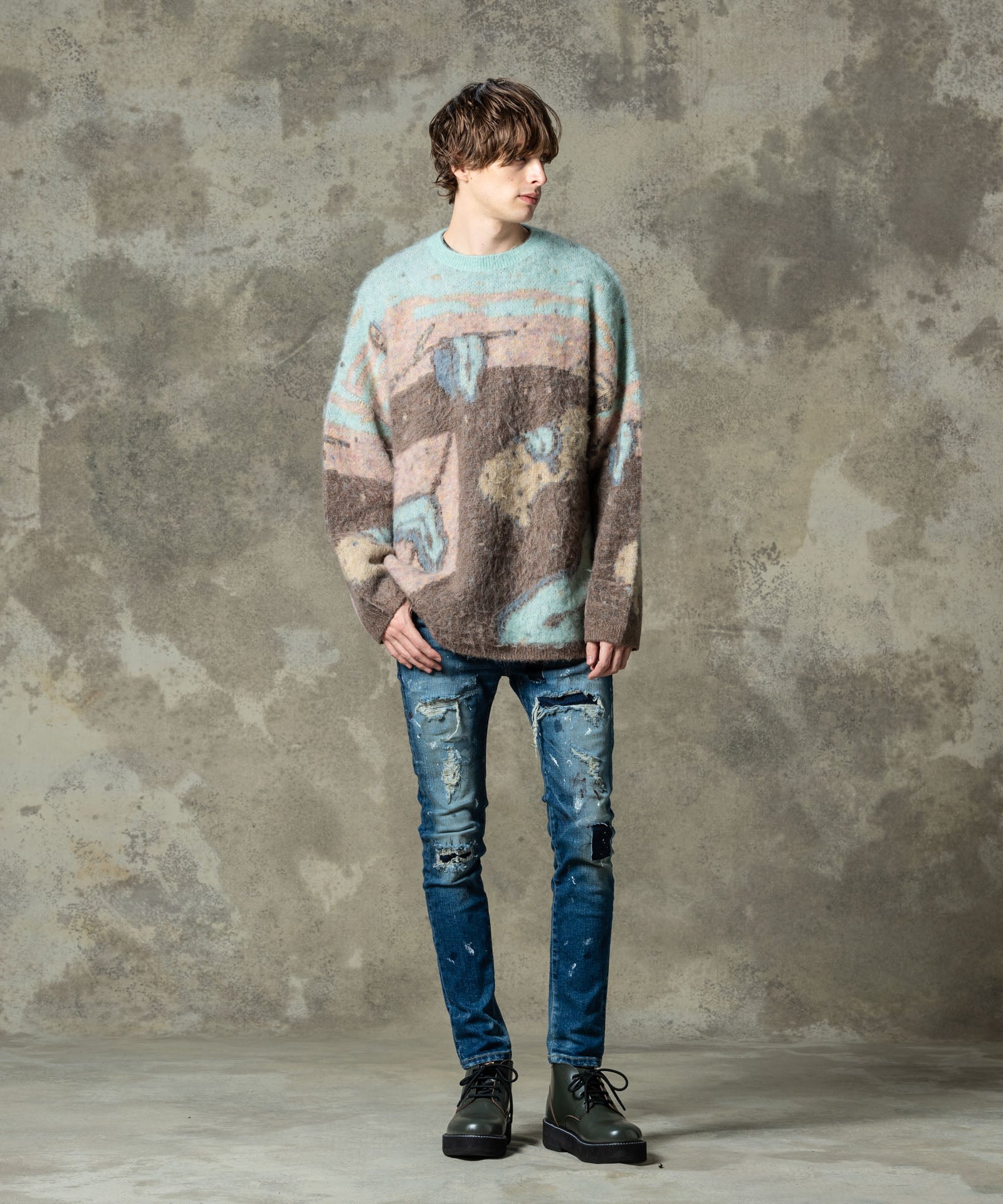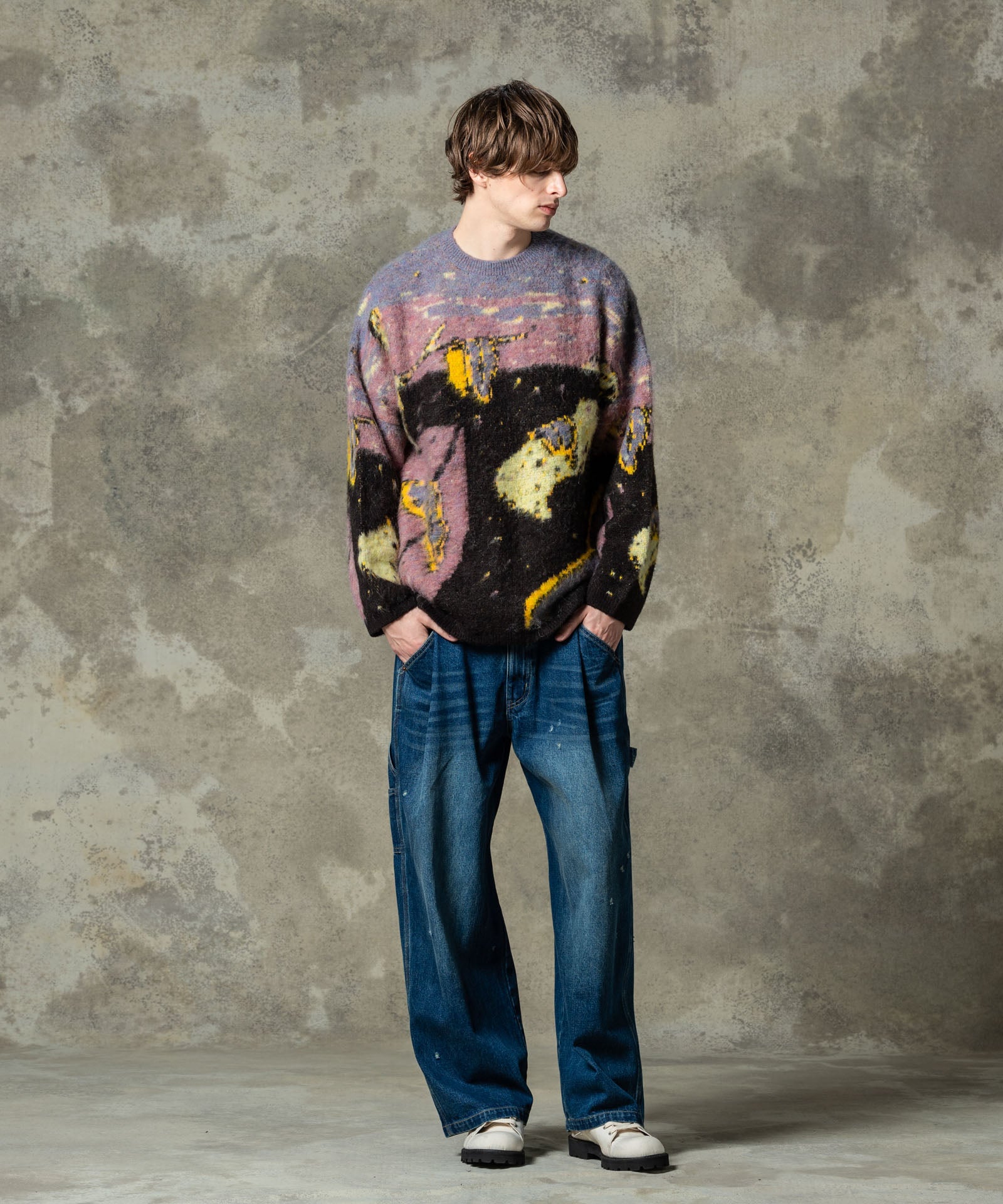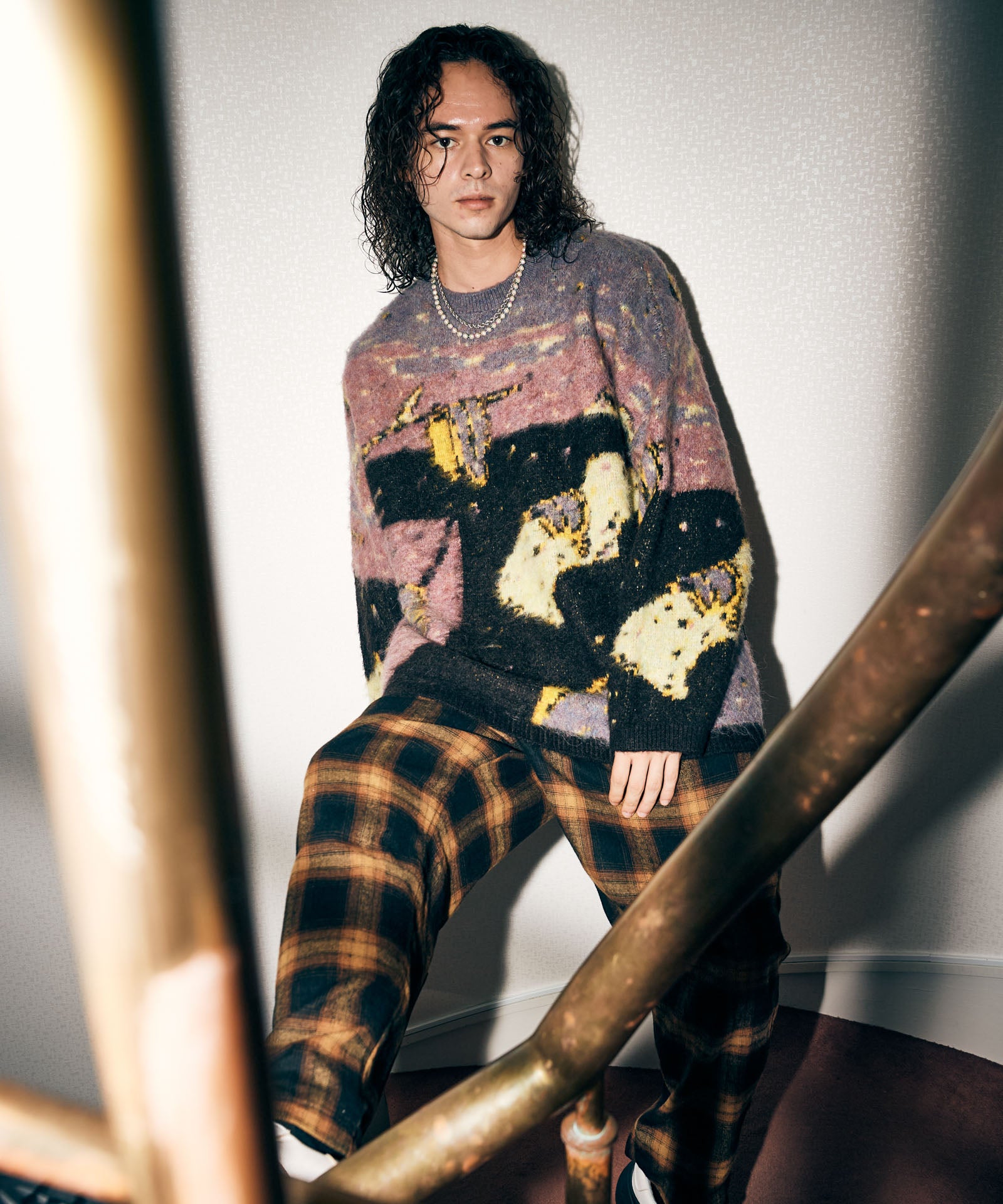 Twist Clocks Pullover Knit은 디자이너가 프랑스 파리에서 방문한 그림 모음으로 이번 시즌 컬렉션에 영감을주기 위해 방문했습니다. Jacquard가 바디로 짠 것은 브랜드가 그린 그래픽으로 초현실주의 예술의 일반적인 묘사를 모방합니다. 이것은 대형 실루엣으로 바디의 앞뒤에 동일한 배열로 동일한 패턴이 나타나는 개념적 조각입니다. 뜨개질 원사는 묘사에 오일 같은 변동을 추가하기 위해 고르지 않은 색상의 혼합형 원사로 만들어집니다. 깊고 컬러 니트 패브릭은 모헤어 브러시 마감 처리로 완성되어 예술의 대기에 초초 록 스타일을 추가합니다.