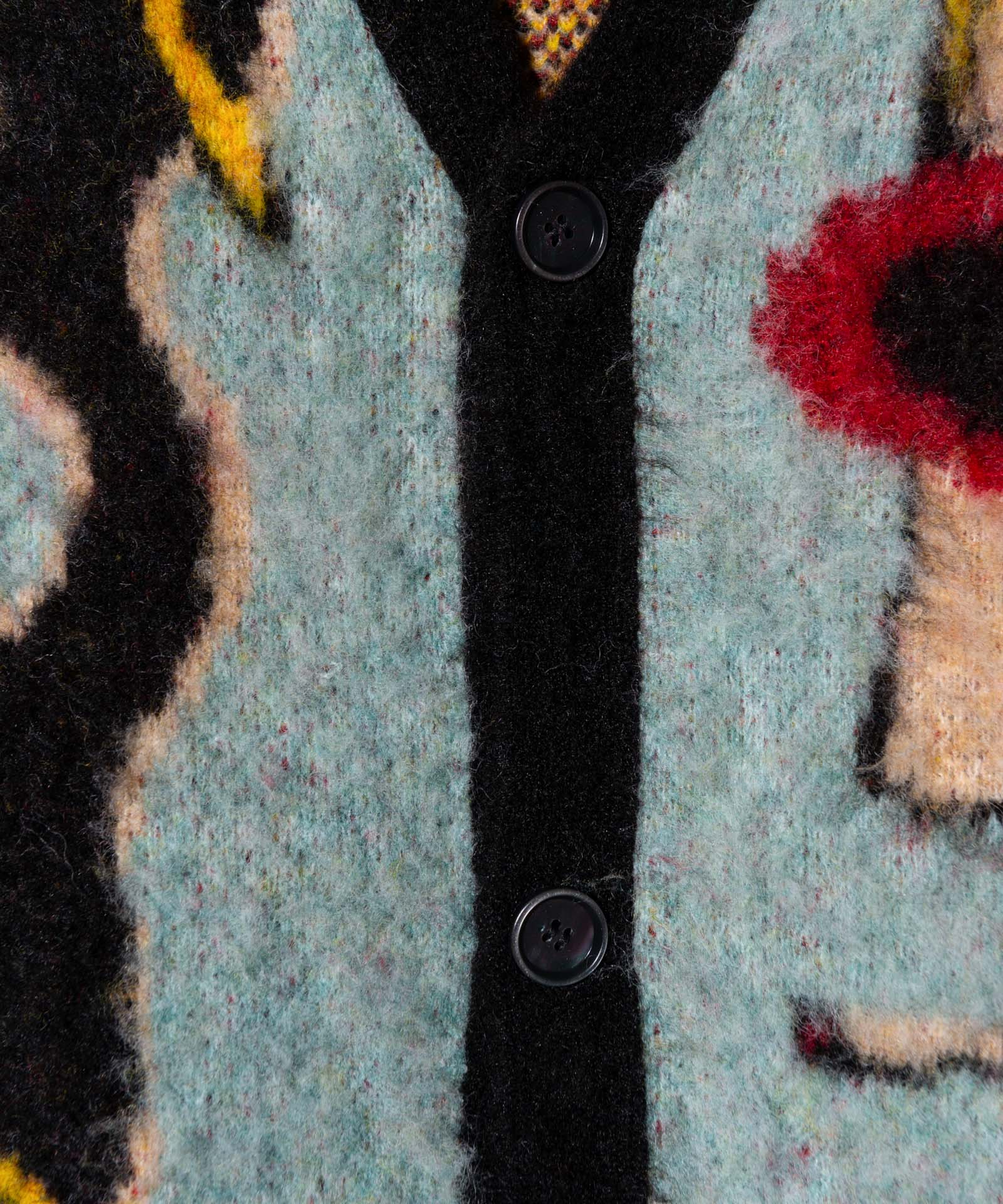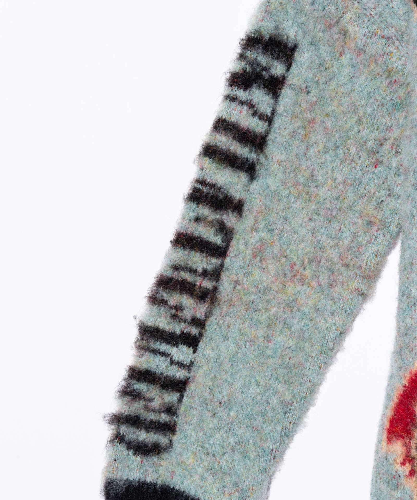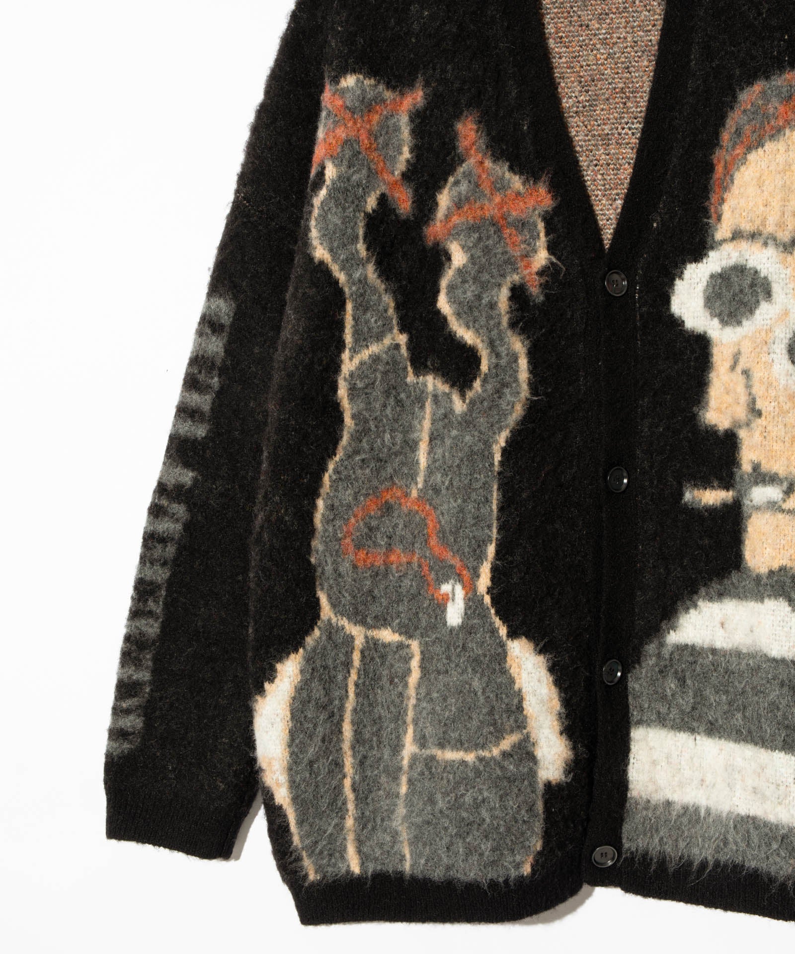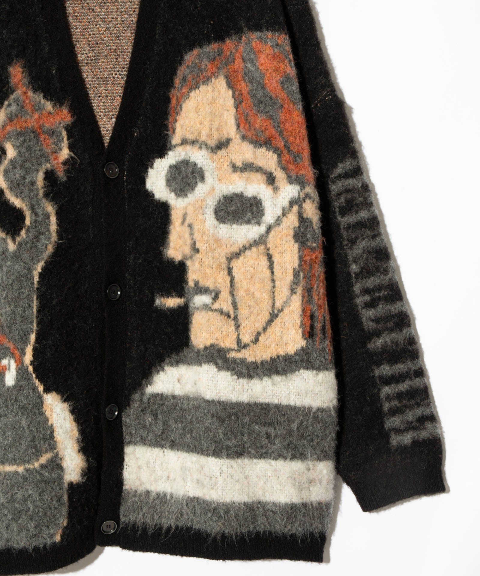 Weeping Man Cardigan은 Grunge Culture의 열망과 프랑스 추상 그림의 본질을 결합하여 Esprit와 같은 외관을 만듭니다. Jacquard는 그런지 방식으로 옷을 입은 금발 남자의 몸과 신비한 캐릭터를 묘사합니다. 입체파적인 터치가 있으며, 레이아웃은 같은 방식으로 몸의 앞뒤에 동일한 패턴으로 대담합니다. 섬유는 Tom Yarn으로 만들어졌으며 브러시 마감 처리가 추가되어 Mohair와 같은 브러시 느낌을 만듭니다. 바디는 방울 어깨를 몸이 느슨한 몸 너비와 결합하여 거리와 그런지 스타일링으로 착용 할 수있는 실루엣을 만듭니다.
