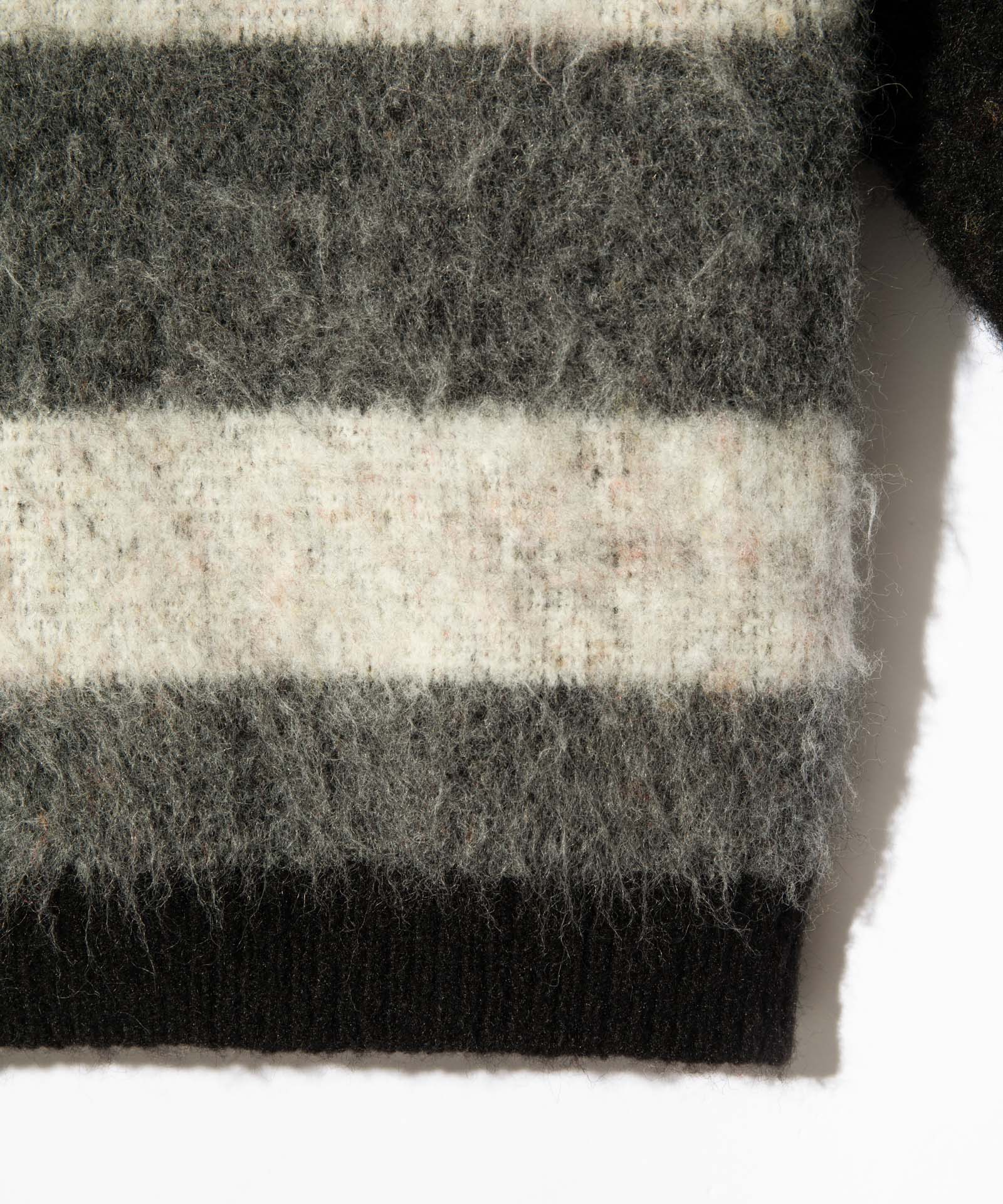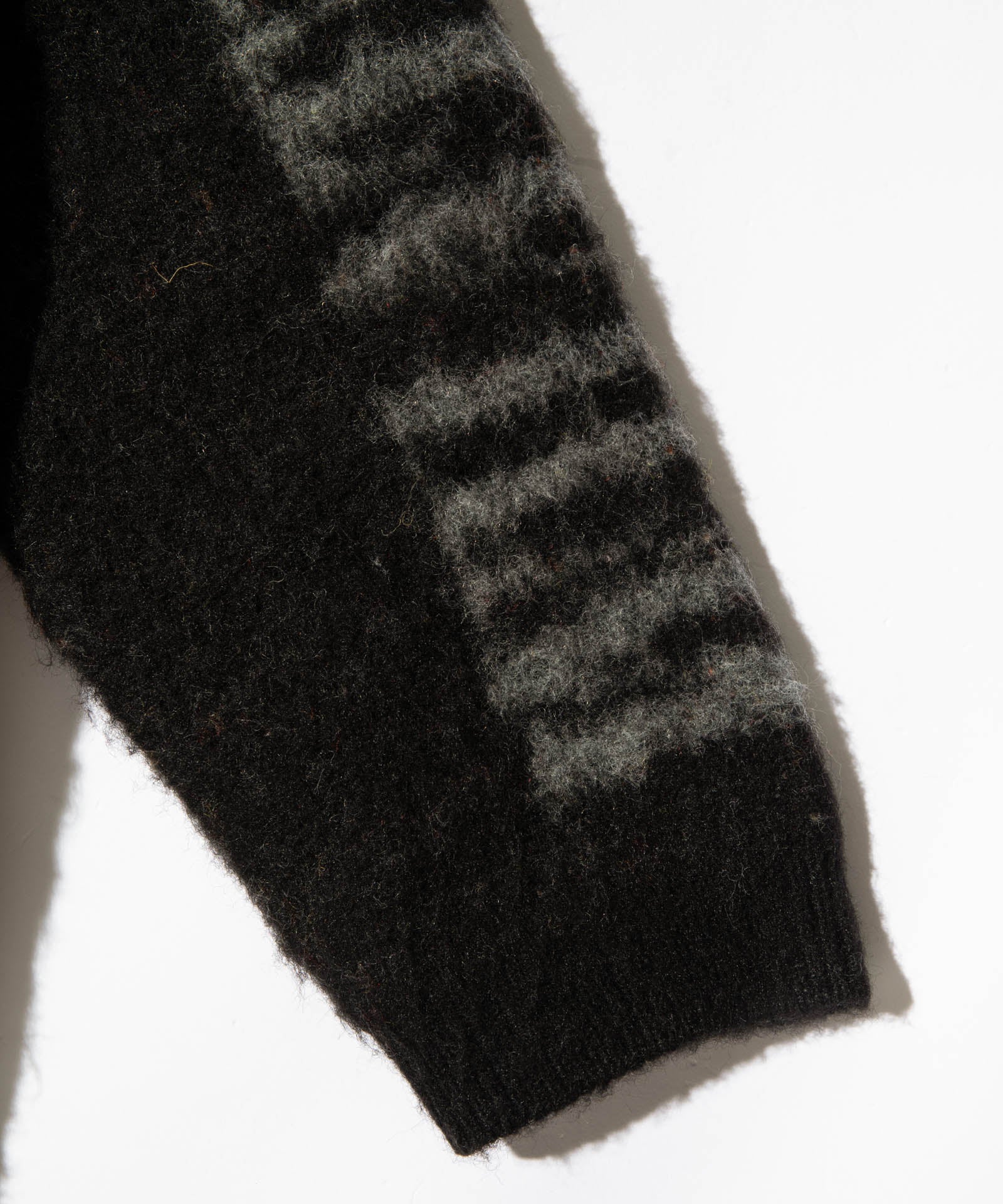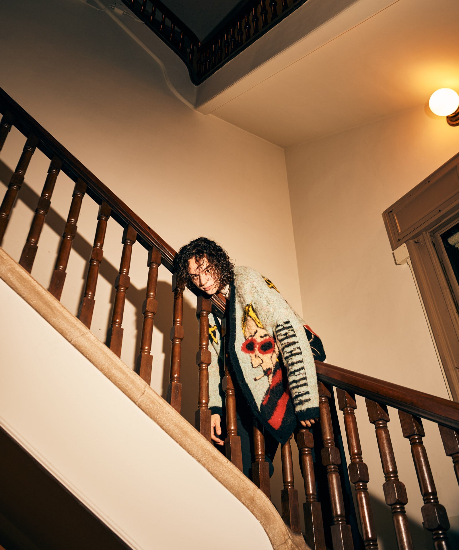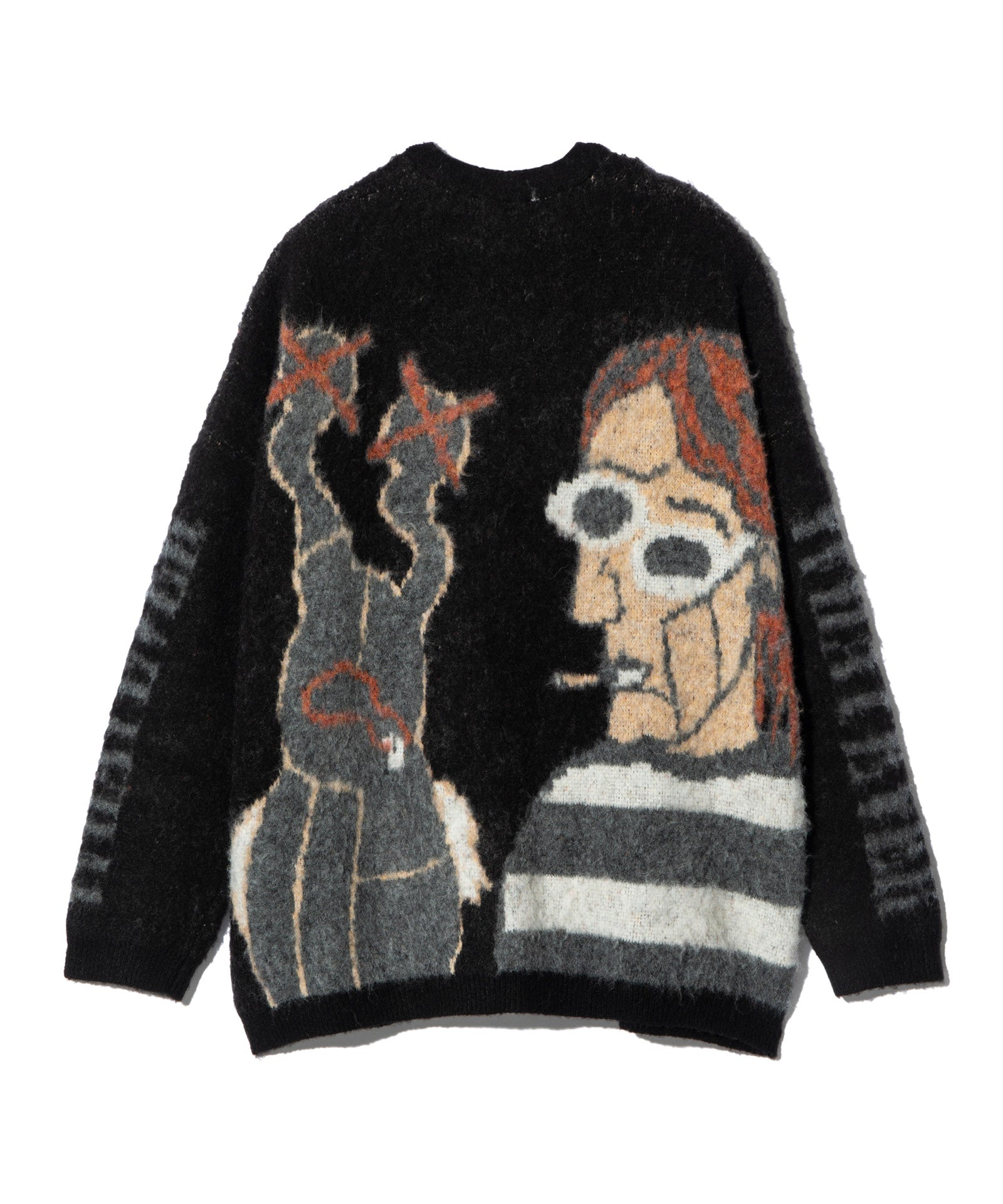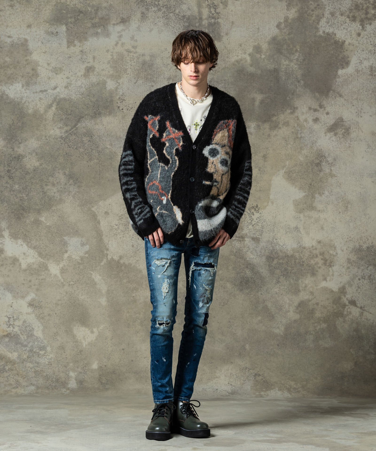 Weeping Man Cardigan은 Grunge Culture의 열망과 프랑스 추상 그림의 본질을 결합하여 Esprit와 같은 외관을 만듭니다. Jacquard는 그런지 방식으로 옷을 입은 금발 남자의 몸과 신비한 캐릭터를 묘사합니다. 입체파적인 터치가 있으며, 레이아웃은 같은 방식으로 몸의 앞뒤에 동일한 패턴으로 대담합니다. 섬유는 Tom Yarn으로 만들어졌으며 브러시 마감 처리가 추가되어 Mohair와 같은 브러시 느낌을 만듭니다. 바디는 방울 어깨를 몸이 느슨한 몸 너비와 결합하여 거리와 그런지 스타일링으로 착용 할 수있는 실루엣을 만듭니다.