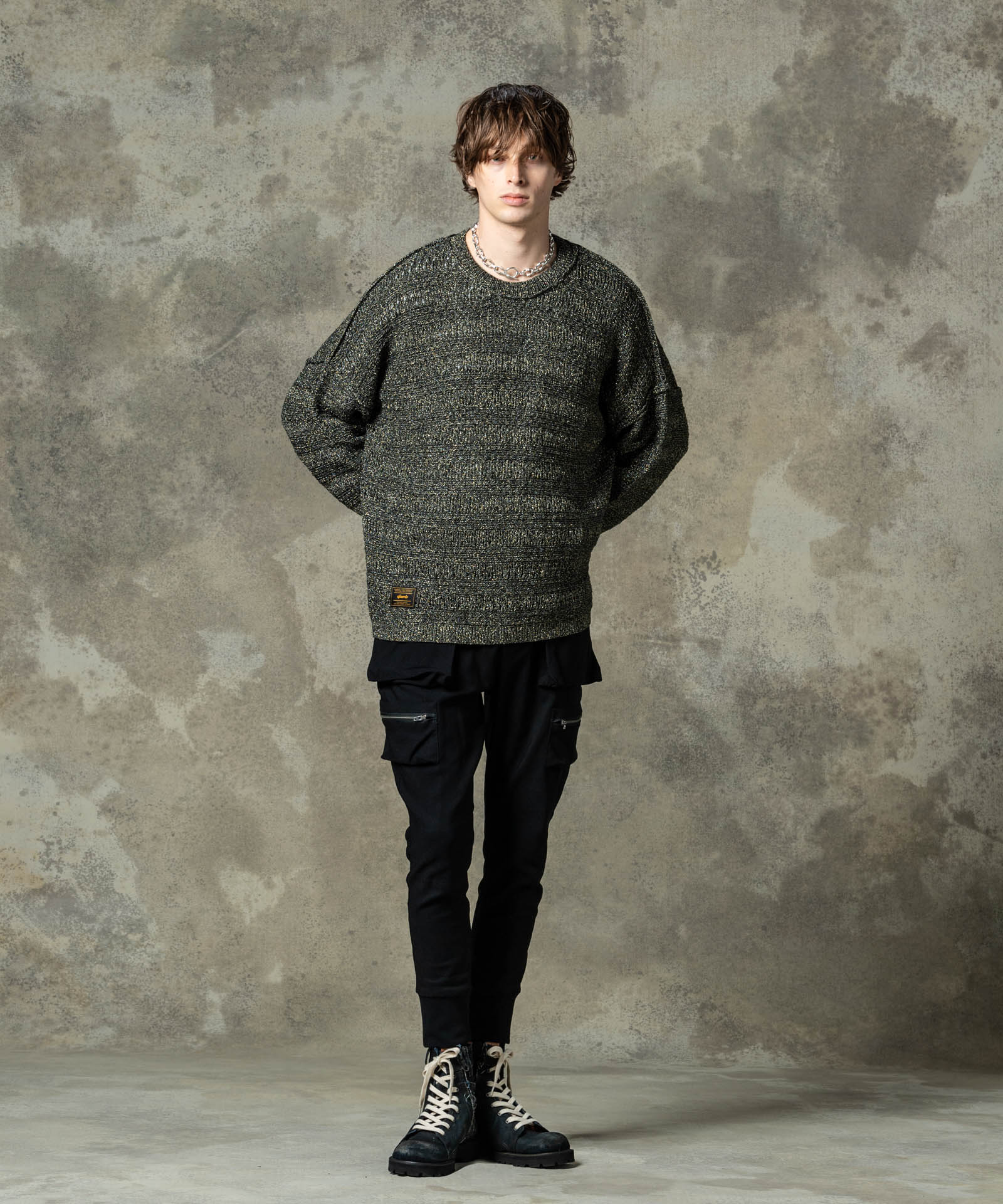 반짝이는 오픈 워크 니트는 저가지 니트와 금속 질감을 결합하고 잠금 장치와 쉽게 결합합니다. 대형 몸체는 개방형 짜기가있는 느슨한 질감을 가지고 있습니다. 뜨개질 원사는 반짝이는 원사로 만들어져 매력적인 본질을 추가합니다. 암홀과 어깨 라인은 펑크와 그런지 패션 아이콘으로 만든 옷의 뒷면에 이음새 허용량을 사용합니다. 재료와 세부 사항 모두에 캡슐화 된 암석 장난기는 성인 스프링 스타일을 형성합니다.