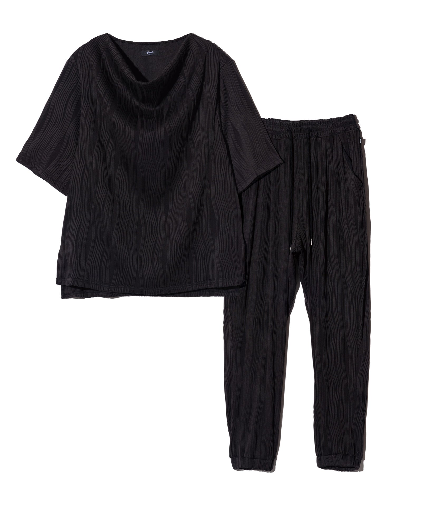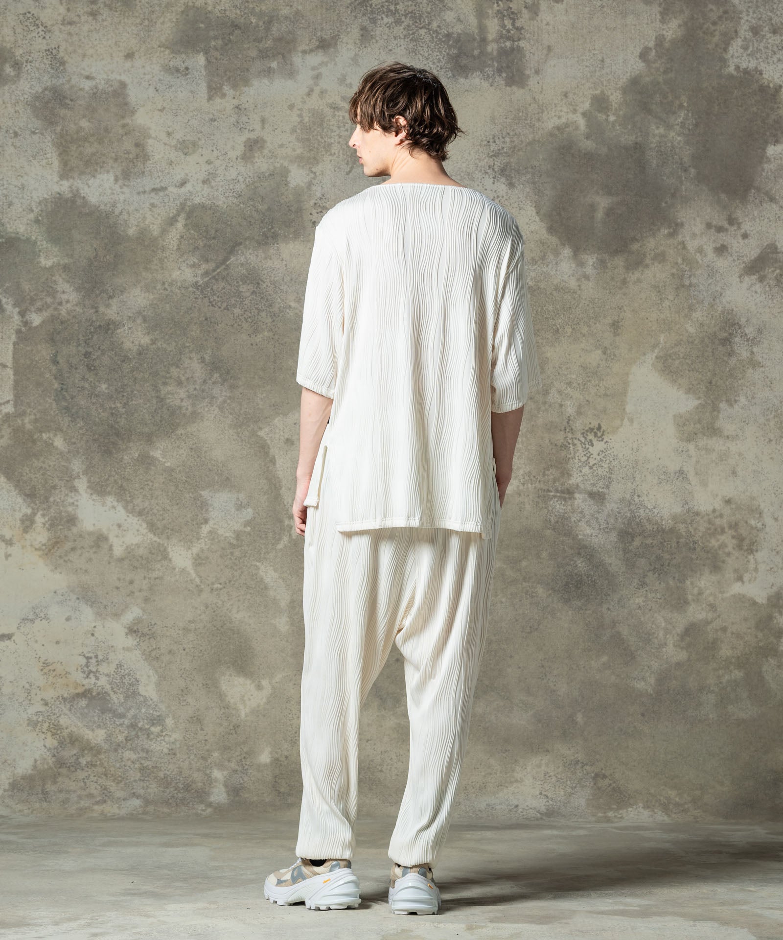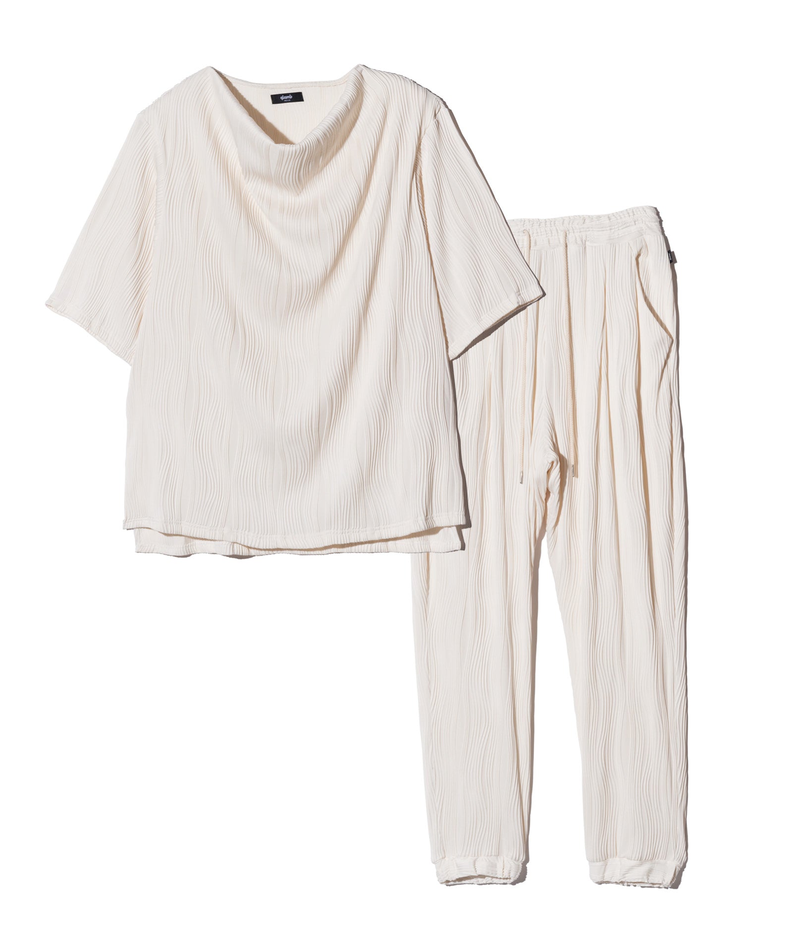 Stunn Willow Crepe 설정은 Glamb의 컬렉션에서 인기를 얻은 패턴 작업과 섬유를 결합하여 스프링 스타일을 제안합니다. 섬유는 고르지 않은 간소화 된 턱이있는 직물로 만들어졌습니다. 깊은 고랑은 뜨개질 바늘을 사용하여 메쉬를 생성 한 다음 뜨개질 직물에 묶는 신중한 과정을 통해 형성됩니다. 이 상단은 가슴에 인상적인 드레이프가 있으며 앞면이 넓고 앞쪽이 뒤쪽으로 이동하여 실루엣을 만듭니다. 몸은 길이가 길고 몸이 넓은 편안한 착용감을 가지고 있습니다. 바닥에는 허리 주위에 턱이 있고 허벅지 주위에는 넓은 실루엣이 테이퍼 된 실루엣이 있습니다. 갈비뼈처럼 조여진 밑단은 직물의 수평으로 사용하여 만들어졌으며 기능적이고 장난기가 좋도록 설계되었습니다. 스타일링 할 때는이 설정 외에도 STUNN 시리즈의 동일한 Stunn Long Sleeves T-Shirt를 내부 레이어로 사용하여 더 많은 구조와 같은 레이어링을 즐길 수 있습니다.