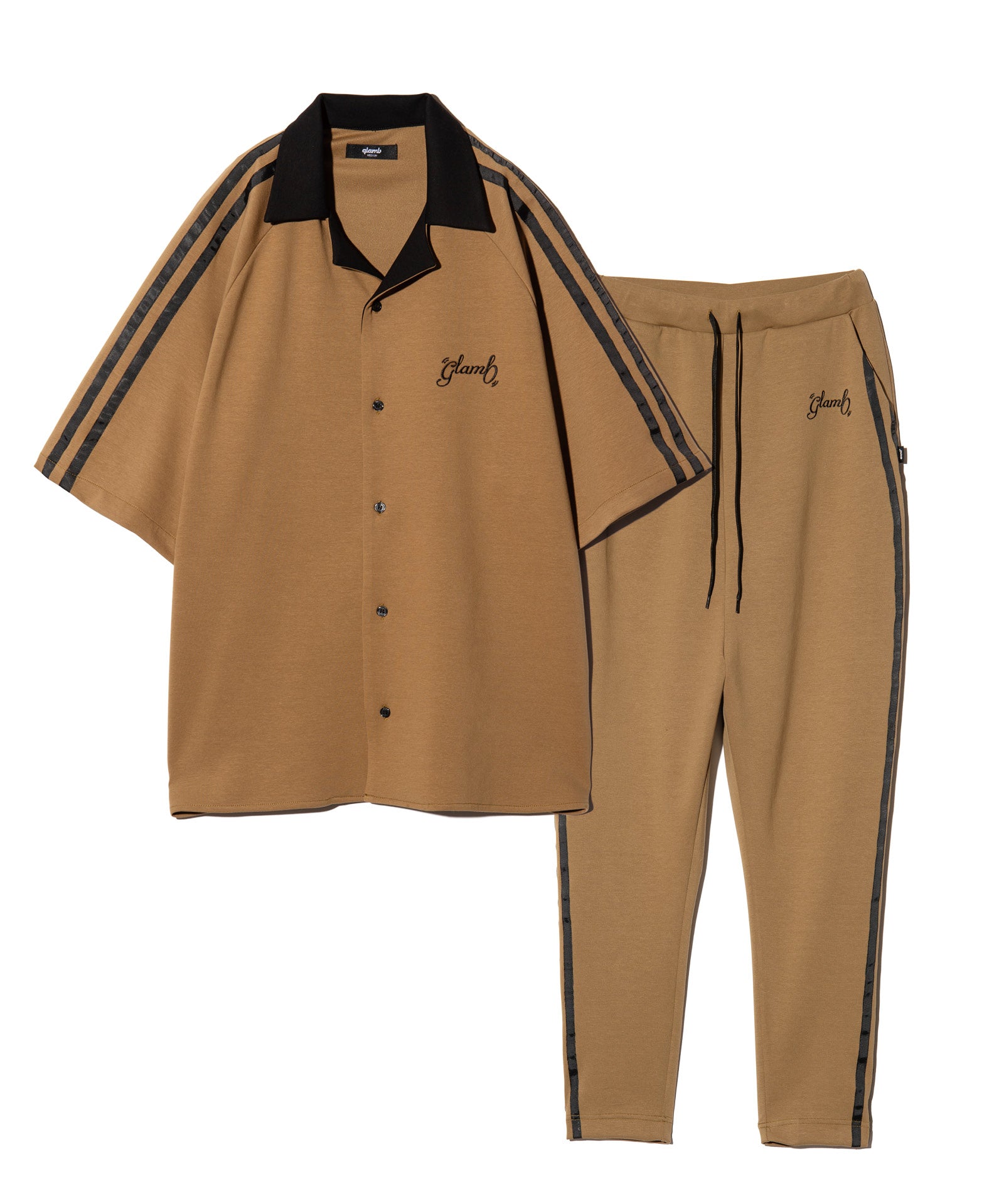 라인 테이프 트랙 설정은 라인 유니폼을 결합하여 열린 칼라 셔츠를 결합하여 Rude Street를 제안합니다. 섬유에 사용되는 저지 직물은 부드러운 느낌을 가지고 여전히 적당한 장력을 가지고있어 깔끔한 실루엣을 만듭니다. 사이드 라인은 야외 같은 그로스 그레인 테이프로 만들어져 활발한 뉘앙스를 더합니다. 상단에는 넓은 몸 너비와 어깨가 결합 된 넓은 실루엣이 있습니다. 바닥은 깊은 상승에서 무릎 아래로 떨어지는 스 퍼트가있는 단단한 사로엘입니다.