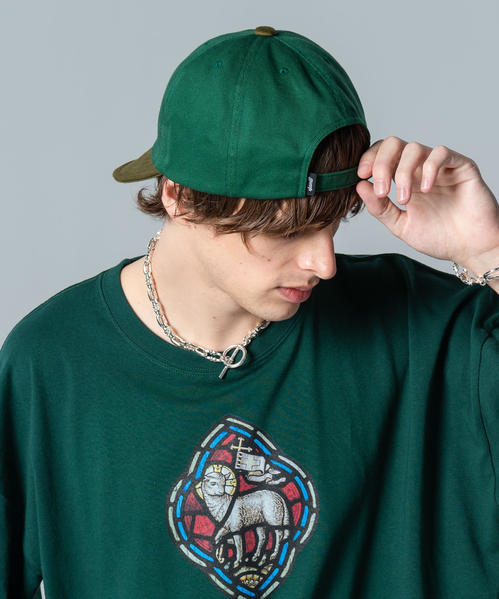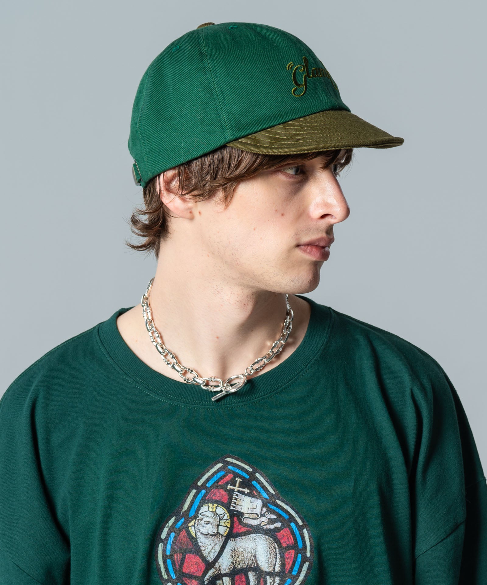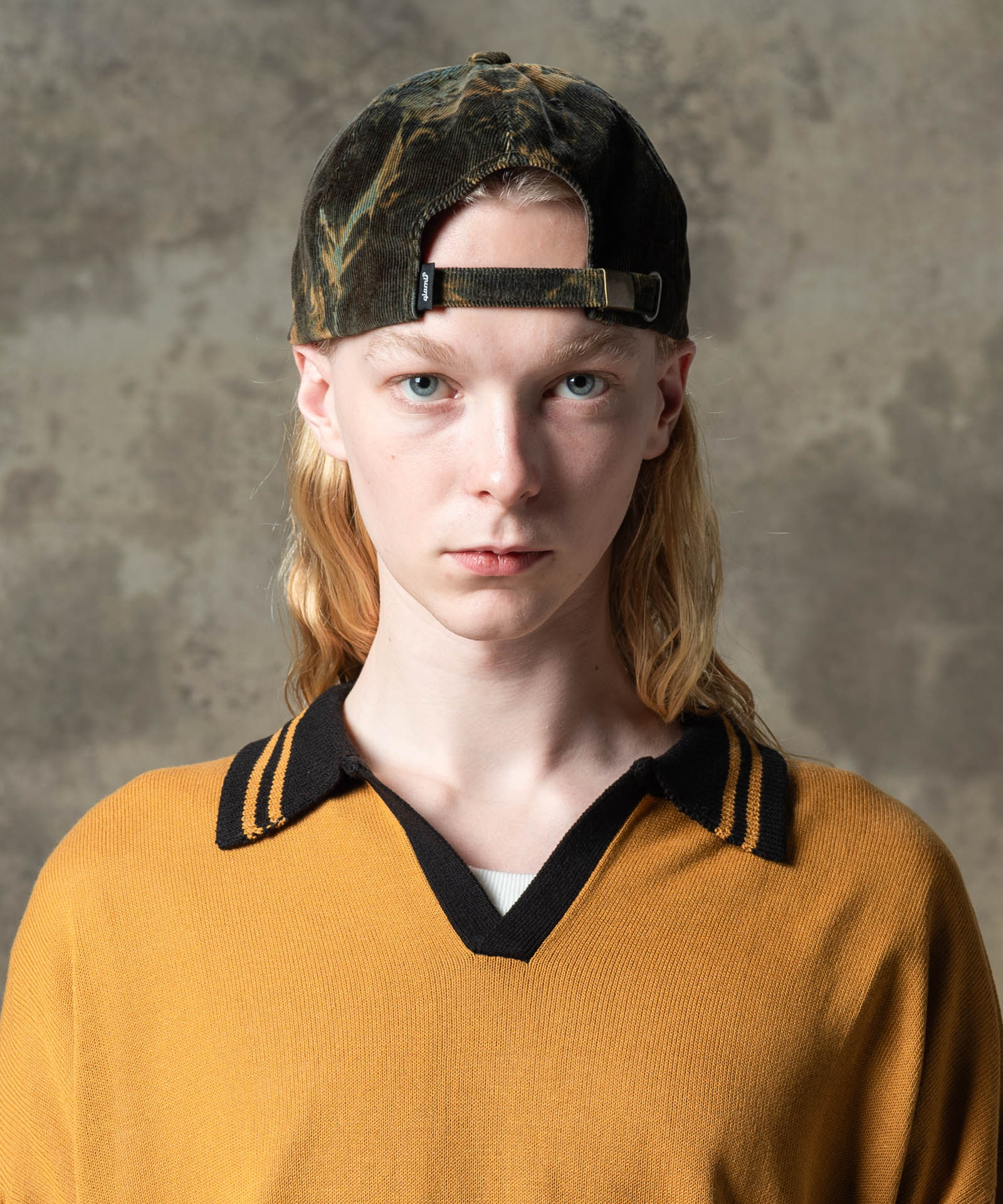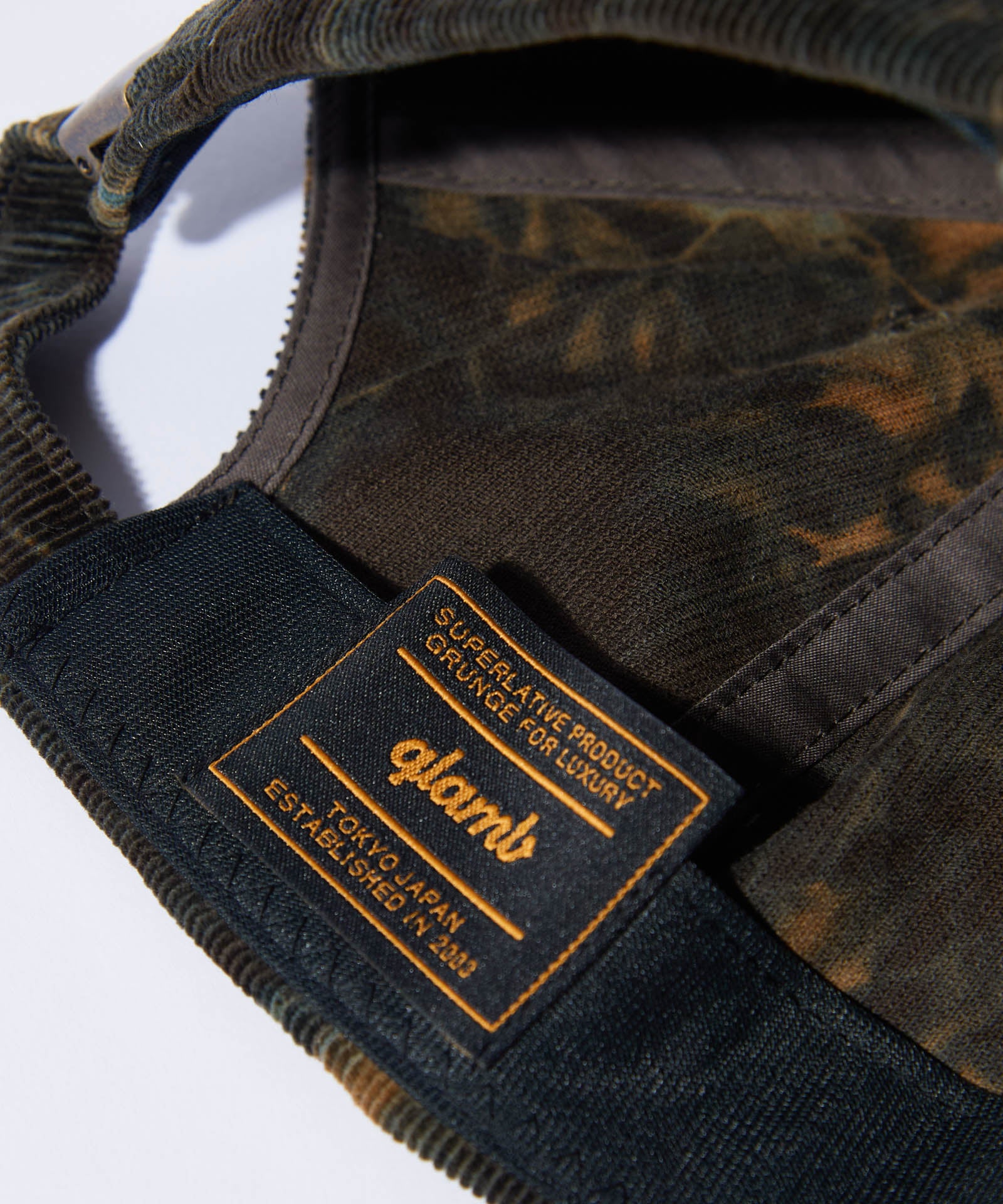 オントレンドなアンパイアキャップにglambのフィルターを通したSpin Logo Umpire Cap。ツバ部分をコンパクトに設定したボディはフロントにブランドロゴを刺繍。ツバを上に立ち上げたストリートライクなフリップスタイルもおすすめです。無地のBlackとGreenのテキスタイルにはカツラギ生地を使用。Multiにはカゴ染めと呼ばれる日本古来の技法を脱色に転用してブリーチ加工を施した表情豊かなコーデュロイ生地を使用しています。