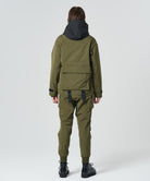 The front is equipped with three pockets for small items during shoots, along with a D-ring at the hem. The back design includes three hunting pockets and straps to secure items such as umbrellas, meeting the practical needs of photographers who require quick access to equipment. The Velcro cuffs, printed with a reflective glamb spin logo, prevent rain and wind from entering, while an integrated buckle belt allows the jacket to be carried on the back, ensuring hands are always free.