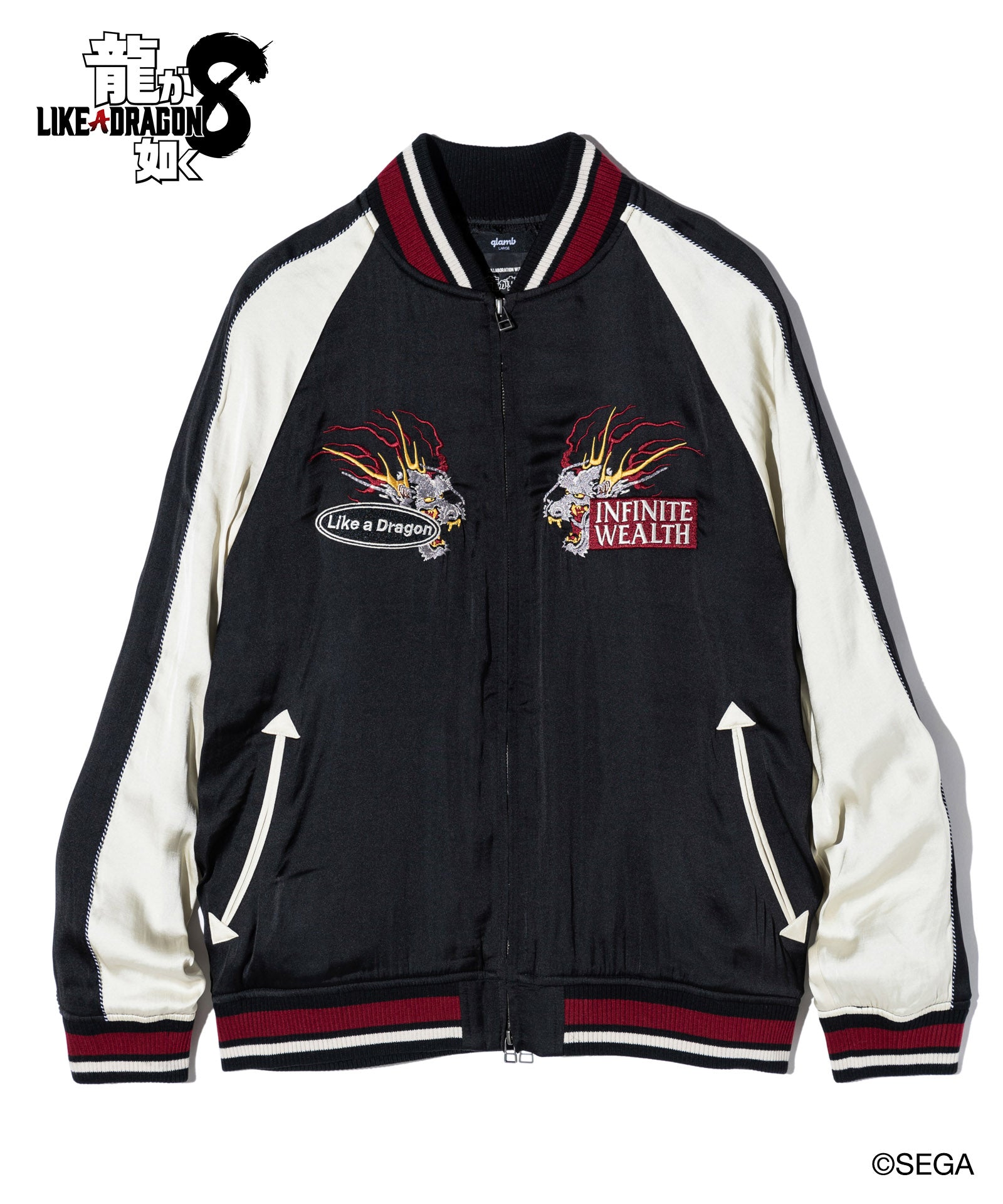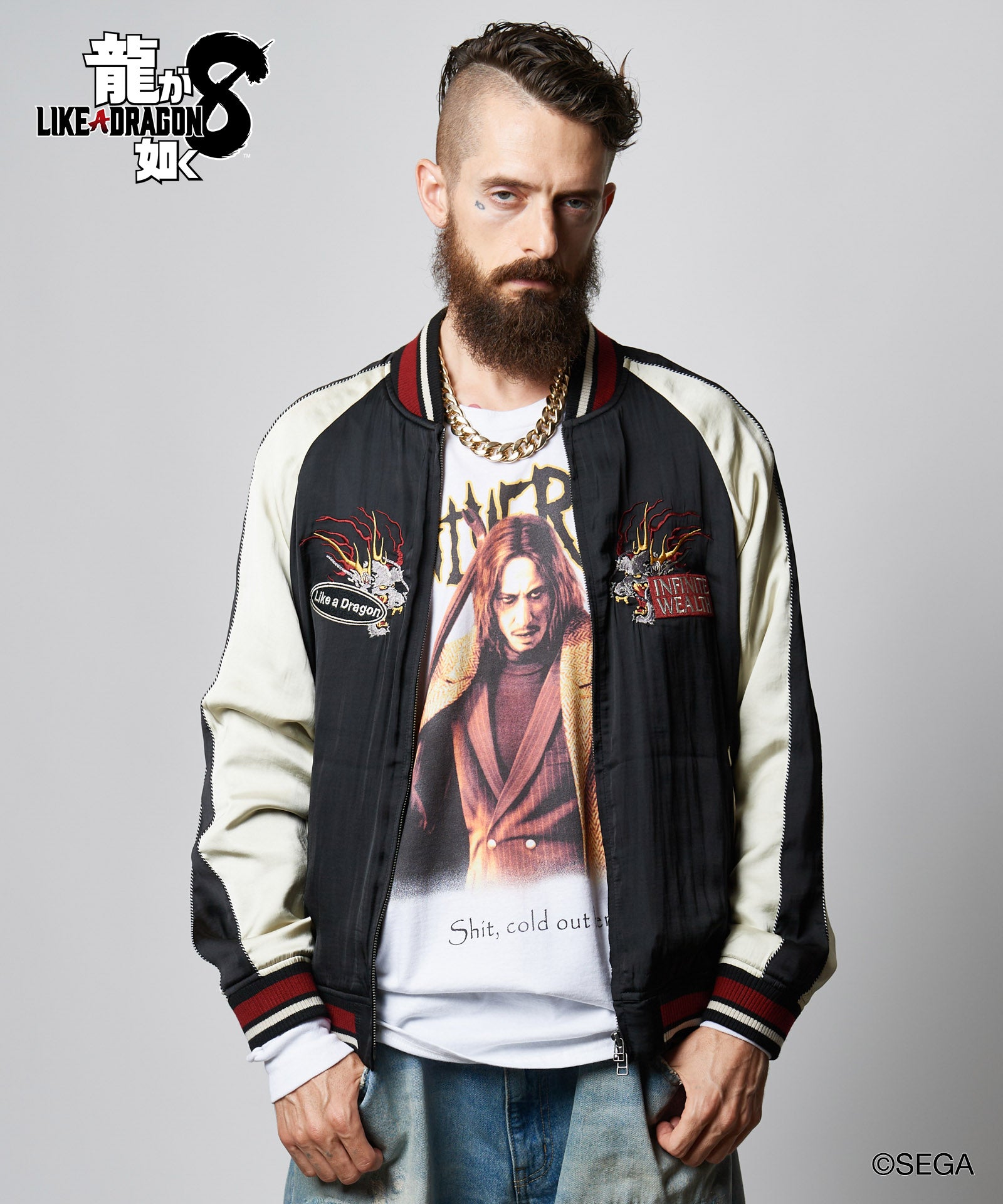 glambとゲーム『龍が如く8』がコラボレーション。桐生一馬の極技をスーベニアジャケットに描き込み、アウトローなトップススタイルを演出するKazuma Kiryu Ska Jumper。