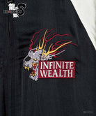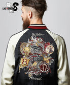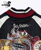 The back is embroidered with the designs of Kiryu's Legendary Dragon tattoo and the Koi, Golden Dragon, and Kirin tattoos of his past adversaries The patchwork, which weaves in imagery from the series, to make this jacket a natural fit for a street or rocker look.