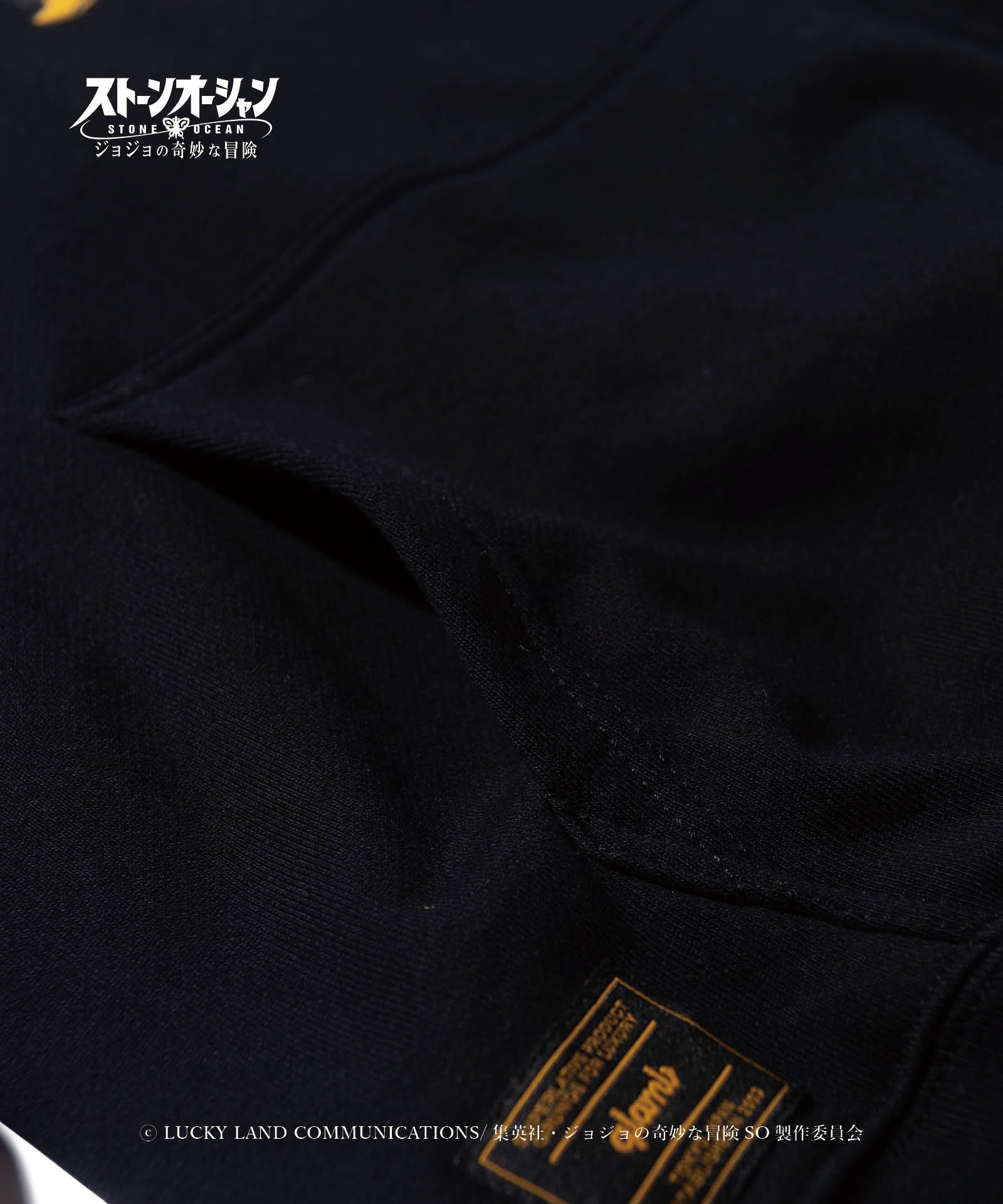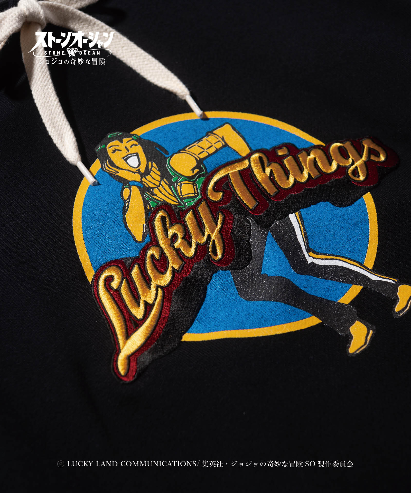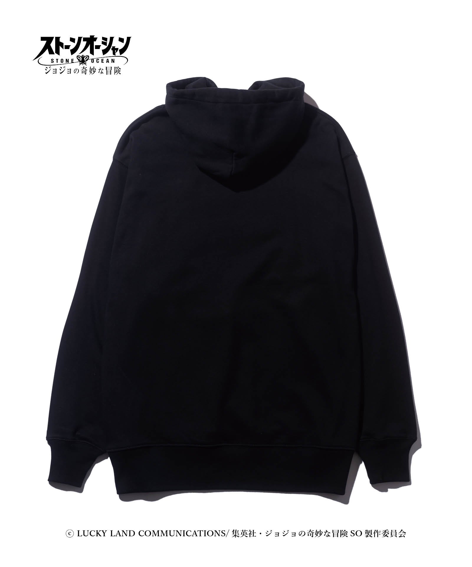 アニメ『ジョジョの奇妙な冒険』シリーズとのコラボレーションにより数多くのアイテムを発表してきたglambが『ジョジョの奇妙な冒険 ストーンオーシャン』と二度目のコラボレーションを発表。 主人公、空条徐倫の相棒エルメェス・コステロを載せたE・Costello Hoodie。彼女の人気のワンシーンを、glambは20世紀の軍用機に数多く描かれたノーズアートのアイデアでグラフィックとして再構築。「Lucky Things」は刺繍によって施しており、オールドアメリカンなムードに洋服ならではの立体表現を交えています。 ボディはテキスタイルに12.7オンスのヘヴィウェイト裏毛生地を使用。身幅とアーム幅にゆとりを設けたルーズシルエットと相まって、重厚でクラシカルな佇まいを楽しませます。