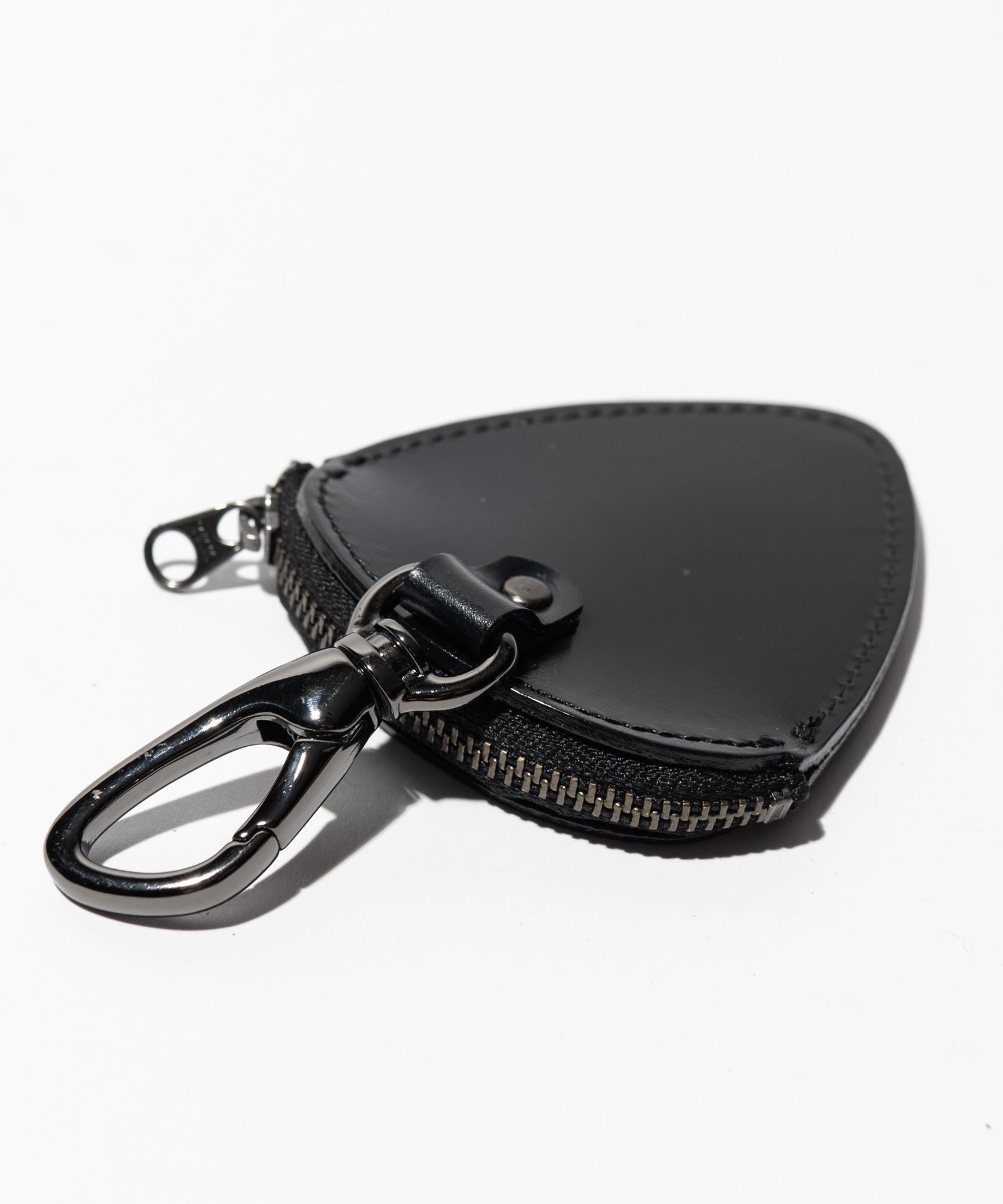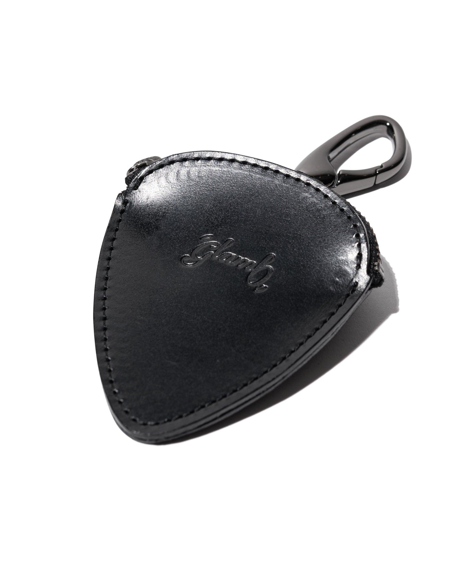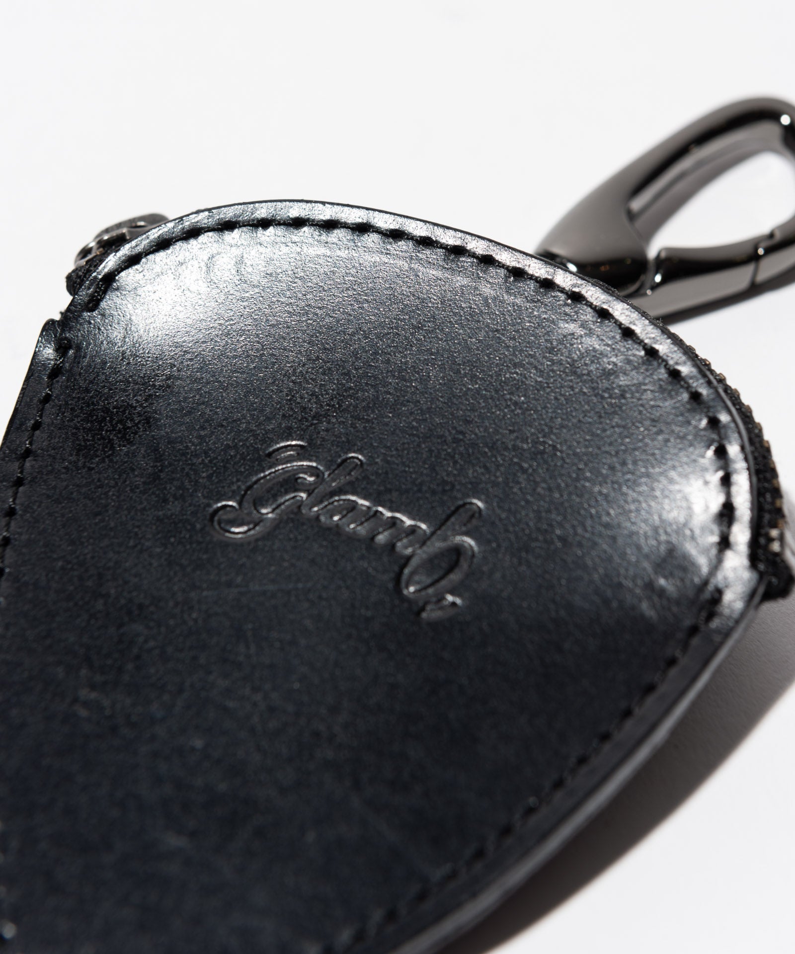 glambが抱くロックへのリスペクトを体現したGuitar Pick Coin Case。ギターピックを模した形状のコインケースは素材に英国製ブライドルレザーを使用。ワックスを染み込ませることで優れた柔軟性と強度、美しい光沢を持たせたこちらは新品に見られる「ブルーム」と呼ばれる白い斑点が特徴。使い込むごとに馴染んでいき、レザーの味を引き立たせていきます。フロントにはglambスピンロゴを型押ししてさりげないアクセントに。裏側にはナスカンを付属しており、バッグやベルトループに通すアクセサリー使いとしても絶好です。