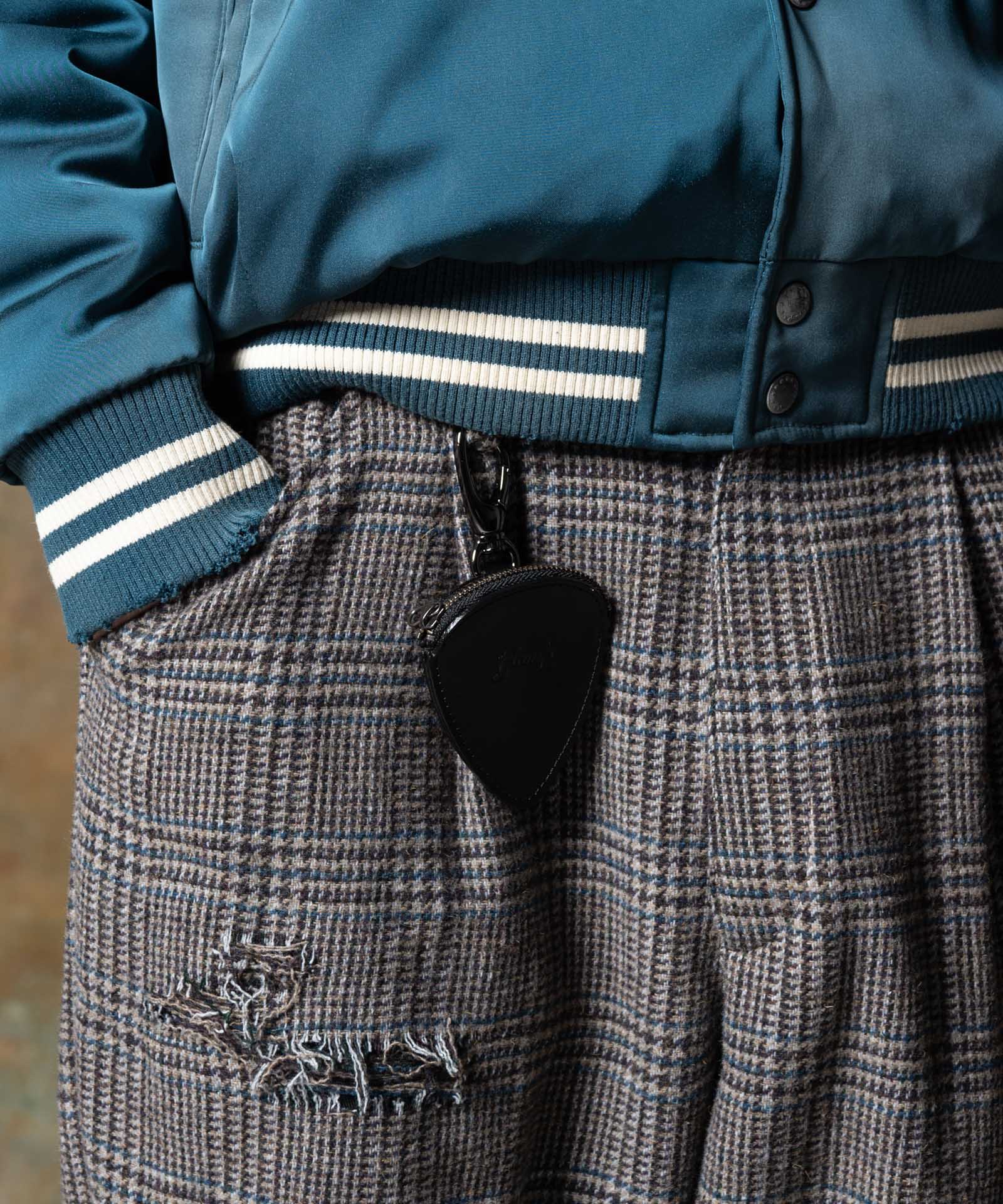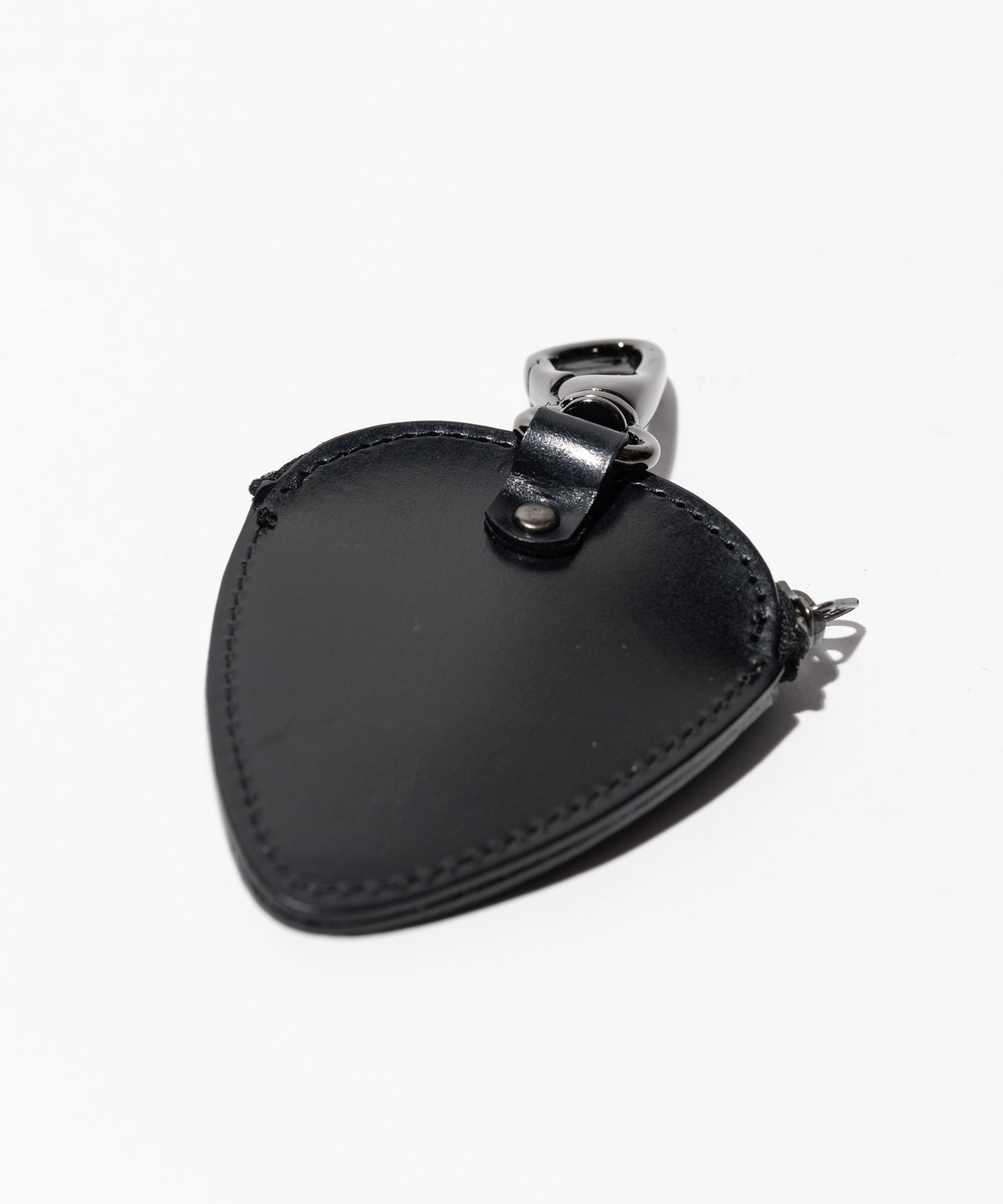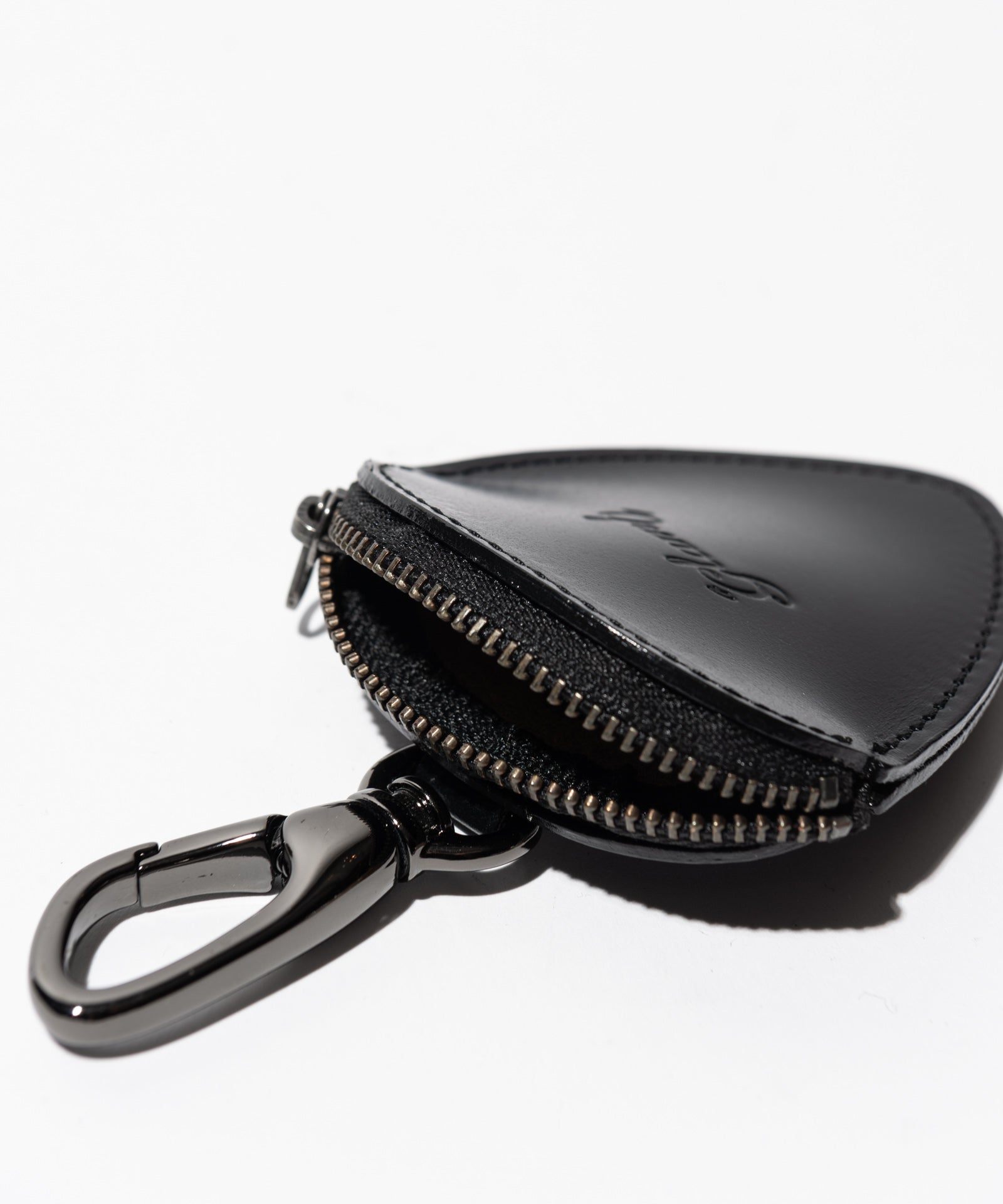 glambが抱くロックへのリスペクトを体現したGuitar Pick Coin Case。ギターピックを模した形状のコインケースは素材に英国製ブライドルレザーを使用。ワックスを染み込ませることで優れた柔軟性と強度、美しい光沢を持たせたこちらは新品に見られる「ブルーム」と呼ばれる白い斑点が特徴。使い込むごとに馴染んでいき、レザーの味を引き立たせていきます。フロントにはglambスピンロゴを型押ししてさりげないアクセントに。裏側にはナスカンを付属しており、バッグやベルトループに通すアクセサリー使いとしても絶好です。