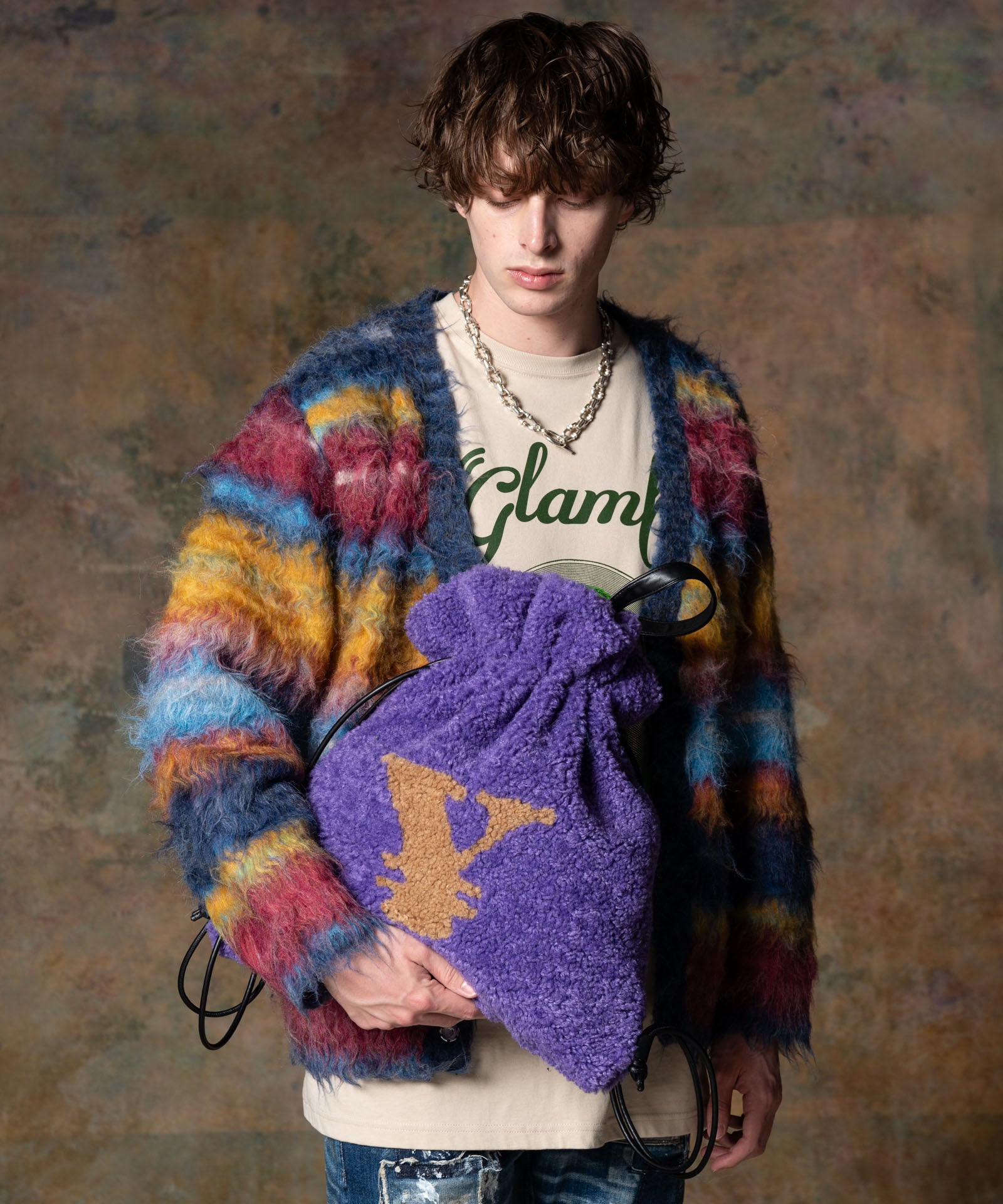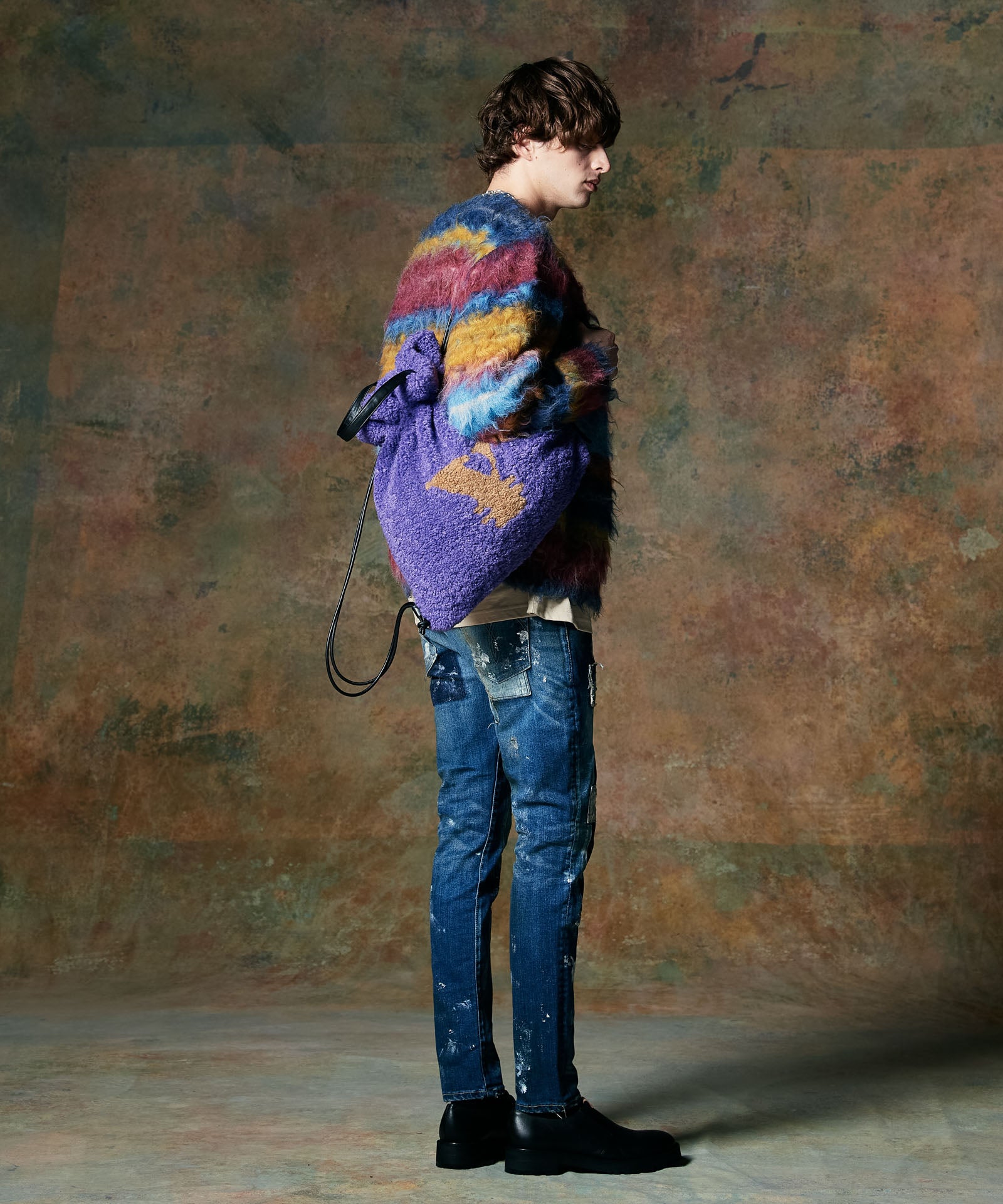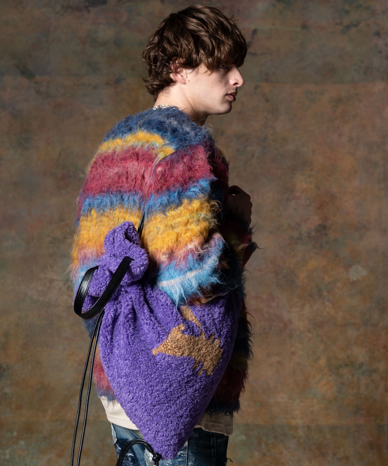 ブランドの飽くなき物作りへの追求がスタイリングに上質な機知をもたらすYen Mark Boa Bag。生地に用いたのはリュクスな光沢を備えたボア。毛皮専門のファクトリーにて¥マークを手作業で裁断、その後別色のボディをくり抜いて縫い合わせるという時間を惜しまない工程で仕上げました。シンセティックレザーの持ち手の他、サイドループも備えておりトートバッグとリュックの2WAYでご使用いただけます。