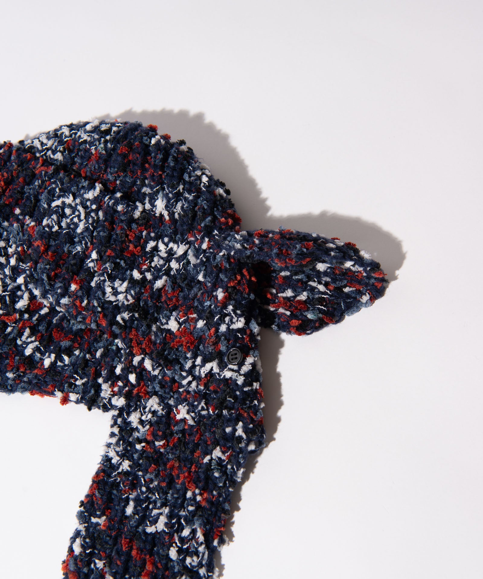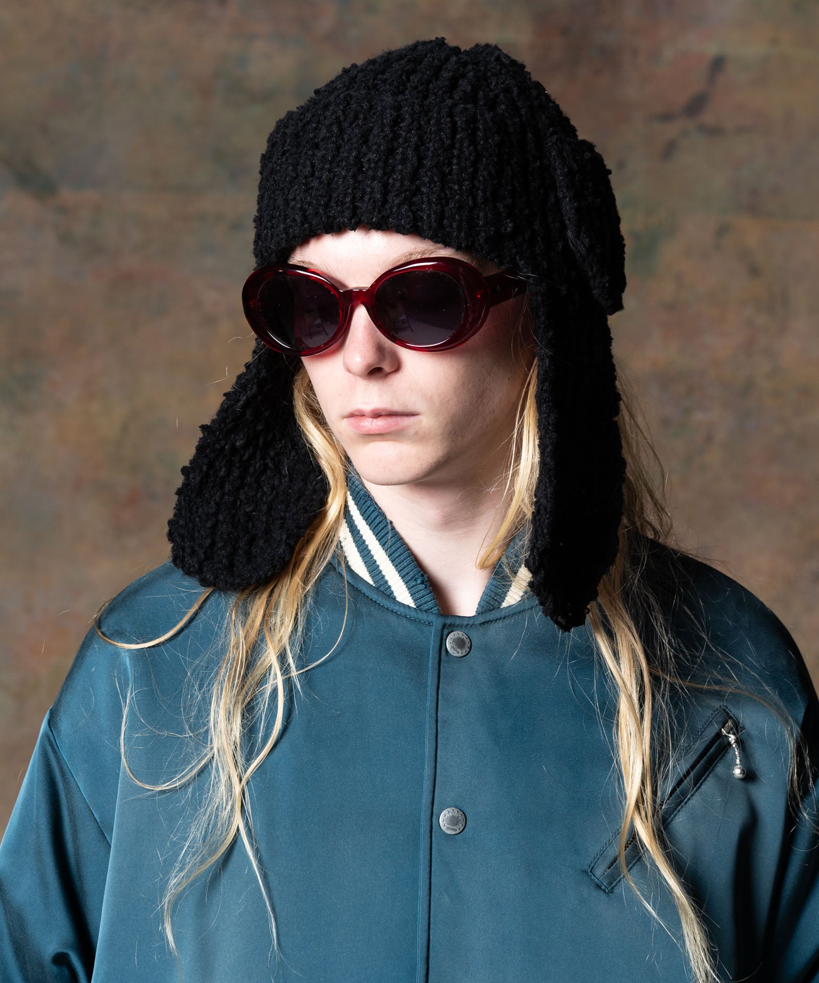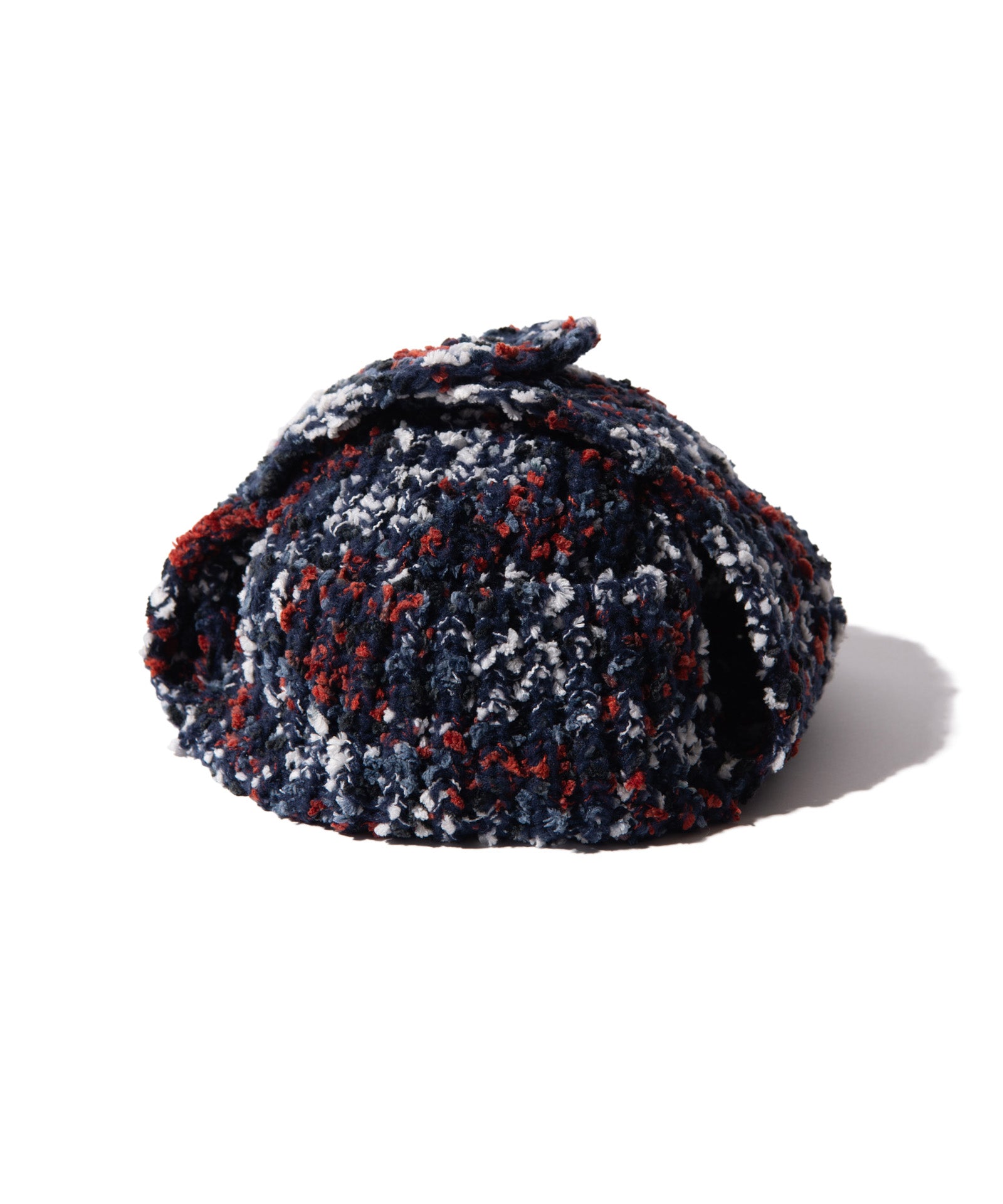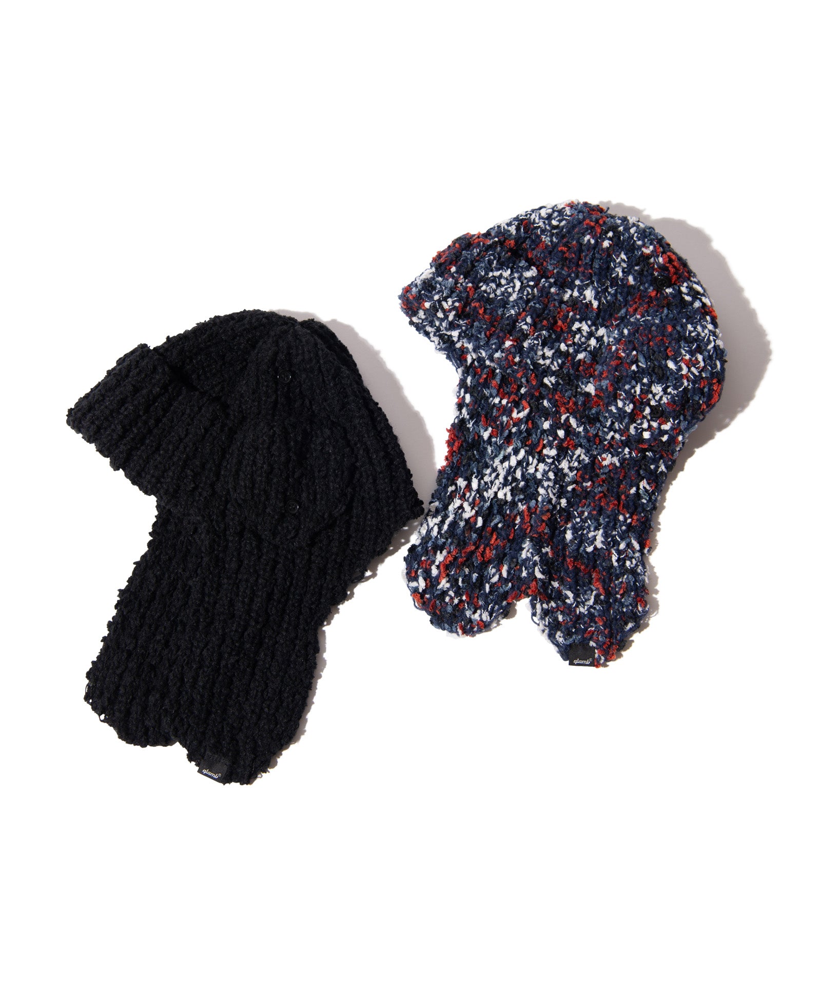 ブランドのニッティングを駆使した素材感に溢れたテクスチャが魅力となるKnit Flight Cap。耳付きのフライトキャップタイプのボディはカラーバリエーション毎に異なる素材使いが特徴。Blackはモノトーンながらネップ混の素材を用いることで凹凸を、 Blueは複数色の糸を引き揃えることでアーティスティックなカラーリングを生み出しました。