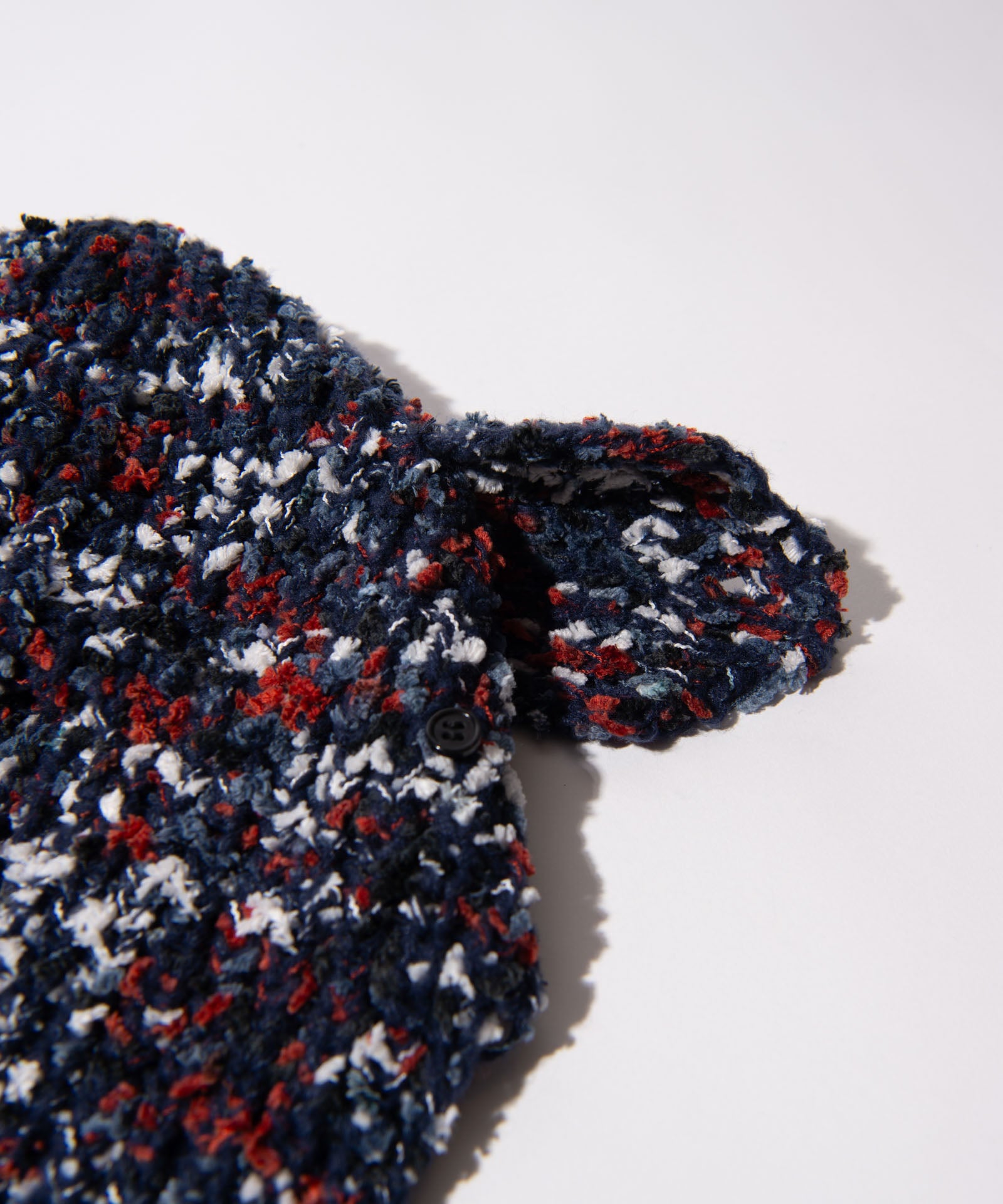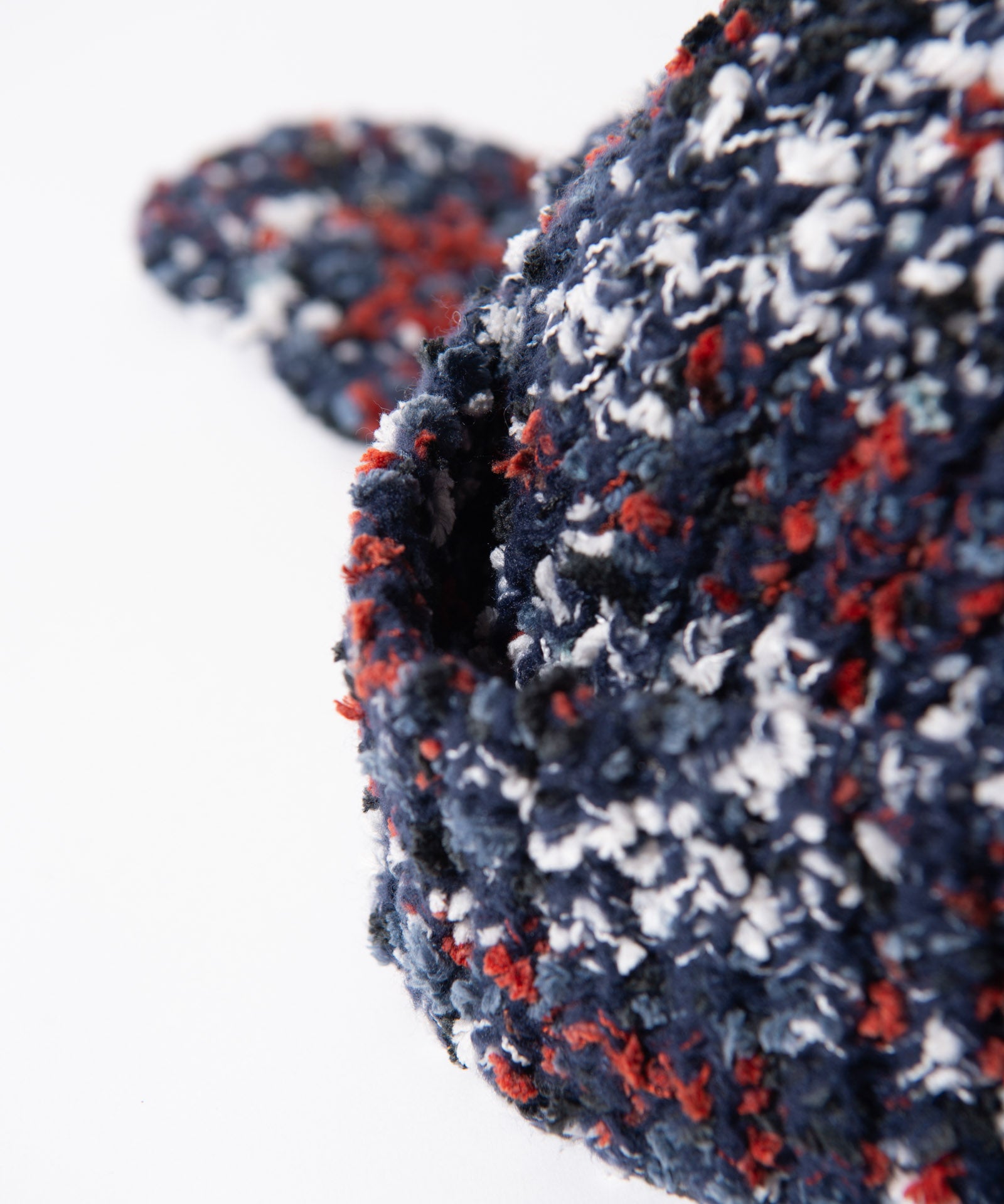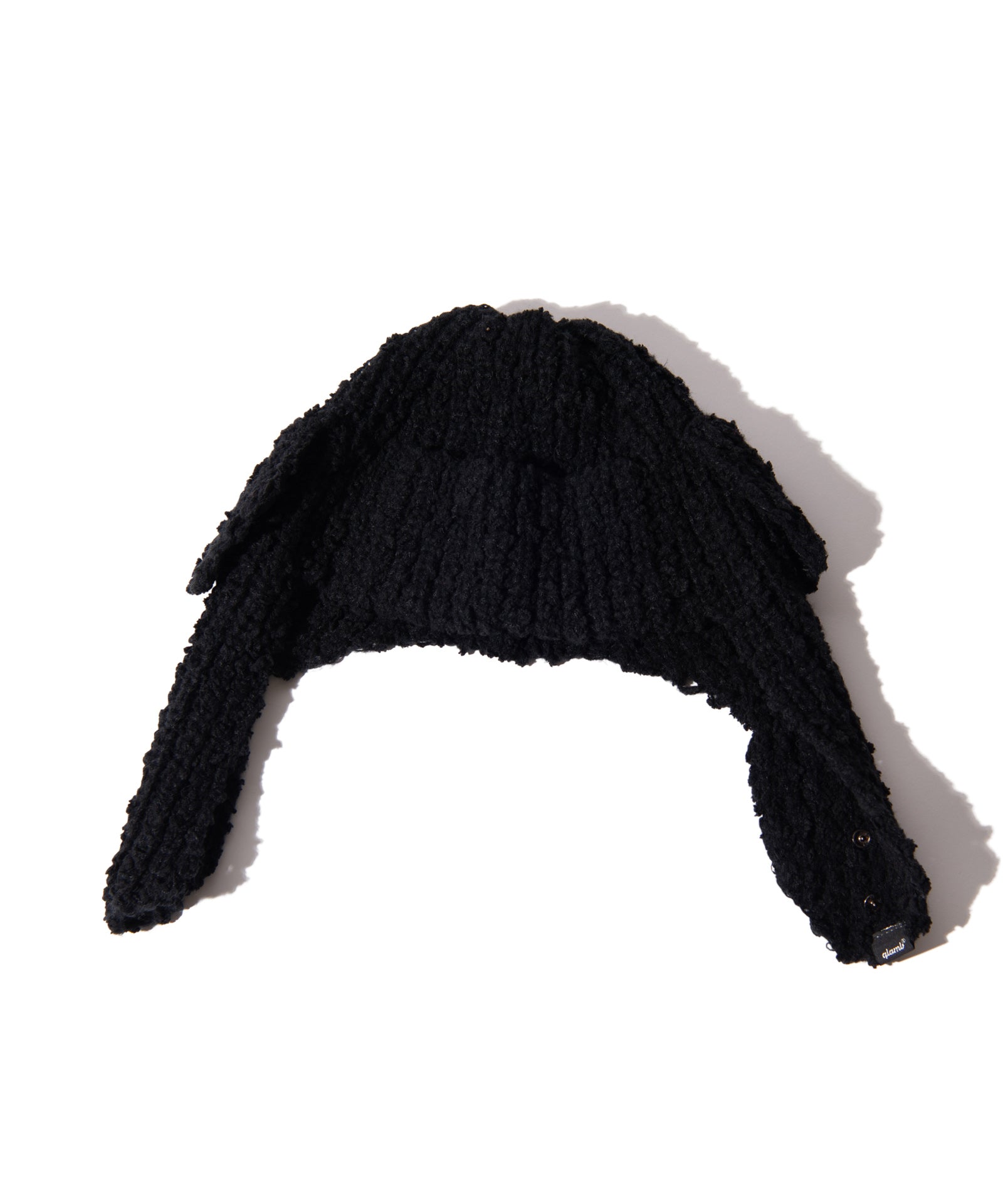 ブランドのニッティングを駆使した素材感に溢れたテクスチャが魅力となるKnit Flight Cap。耳付きのフライトキャップタイプのボディはカラーバリエーション毎に異なる素材使いが特徴。Blackはモノトーンながらネップ混の素材を用いることで凹凸を、 Blueは複数色の糸を引き揃えることでアーティスティックなカラーリングを生み出しました。