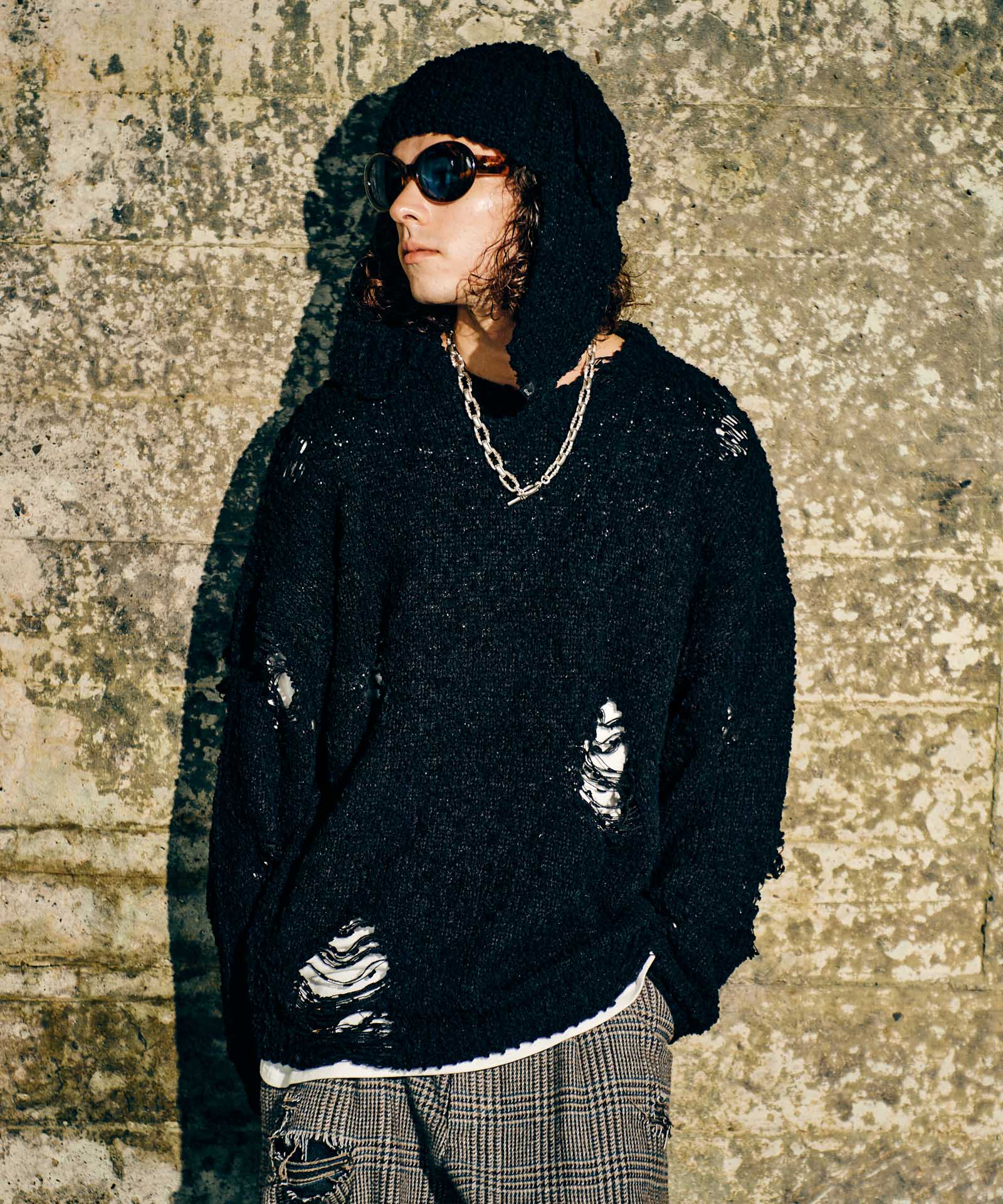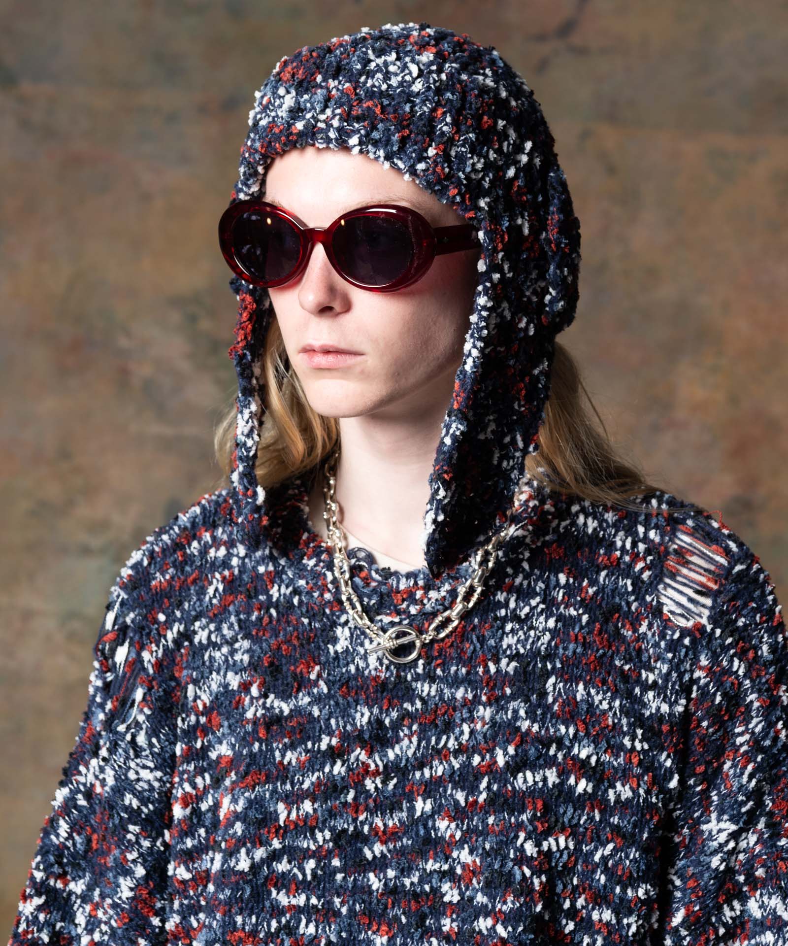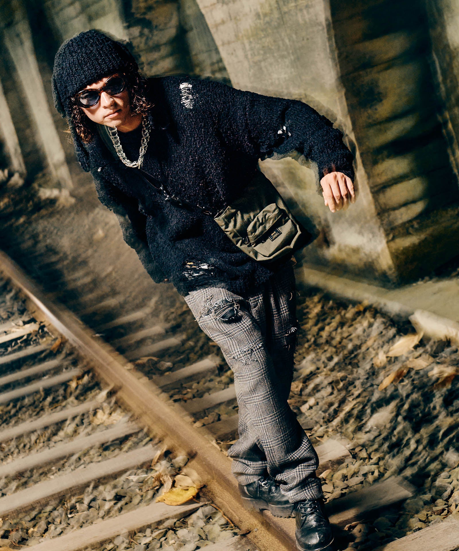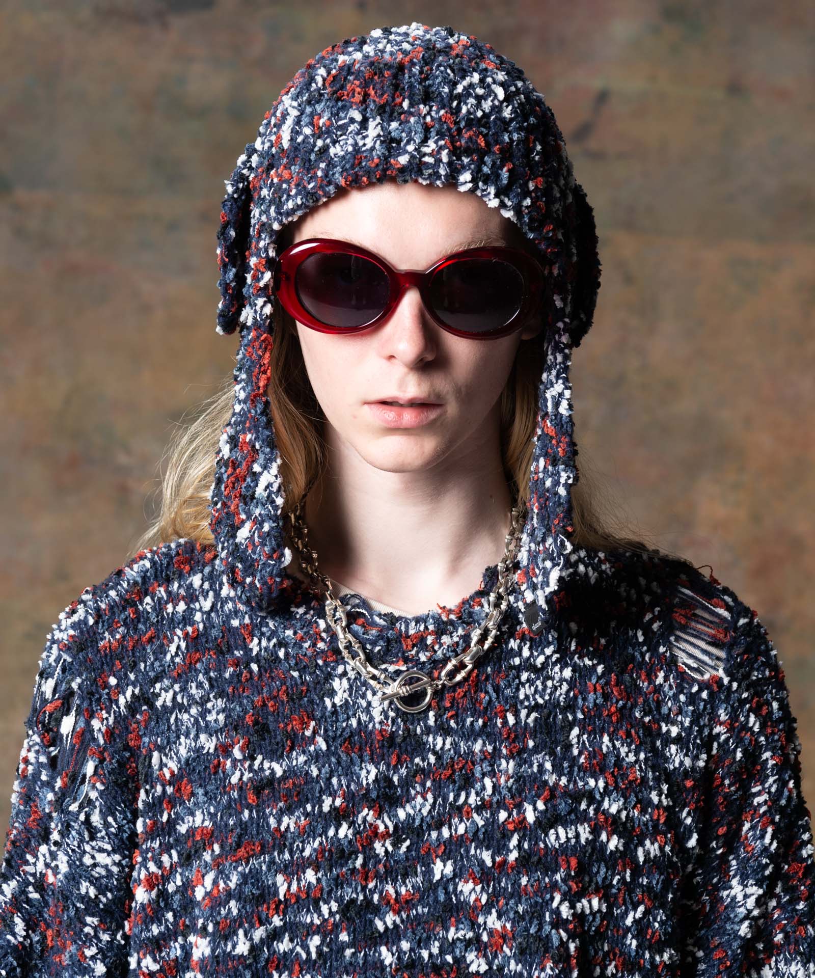 ブランドのニッティングを駆使した素材感に溢れたテクスチャが魅力となるKnit Flight Cap。耳付きのフライトキャップタイプのボディはカラーバリエーション毎に異なる素材使いが特徴。Blackはモノトーンながらネップ混の素材を用いることで凹凸を、 Blueは複数色の糸を引き揃えることでアーティスティックなカラーリングを生み出しました。