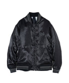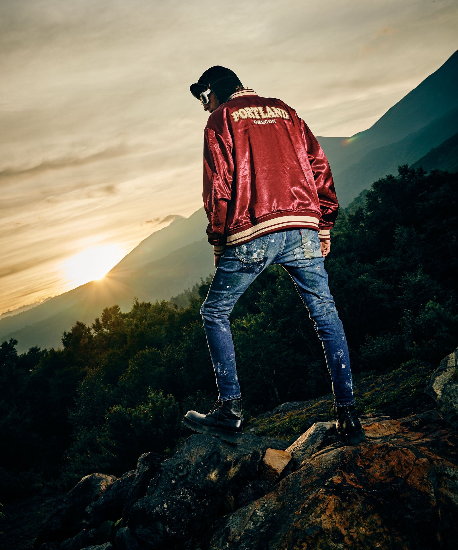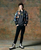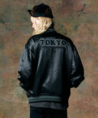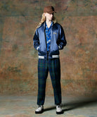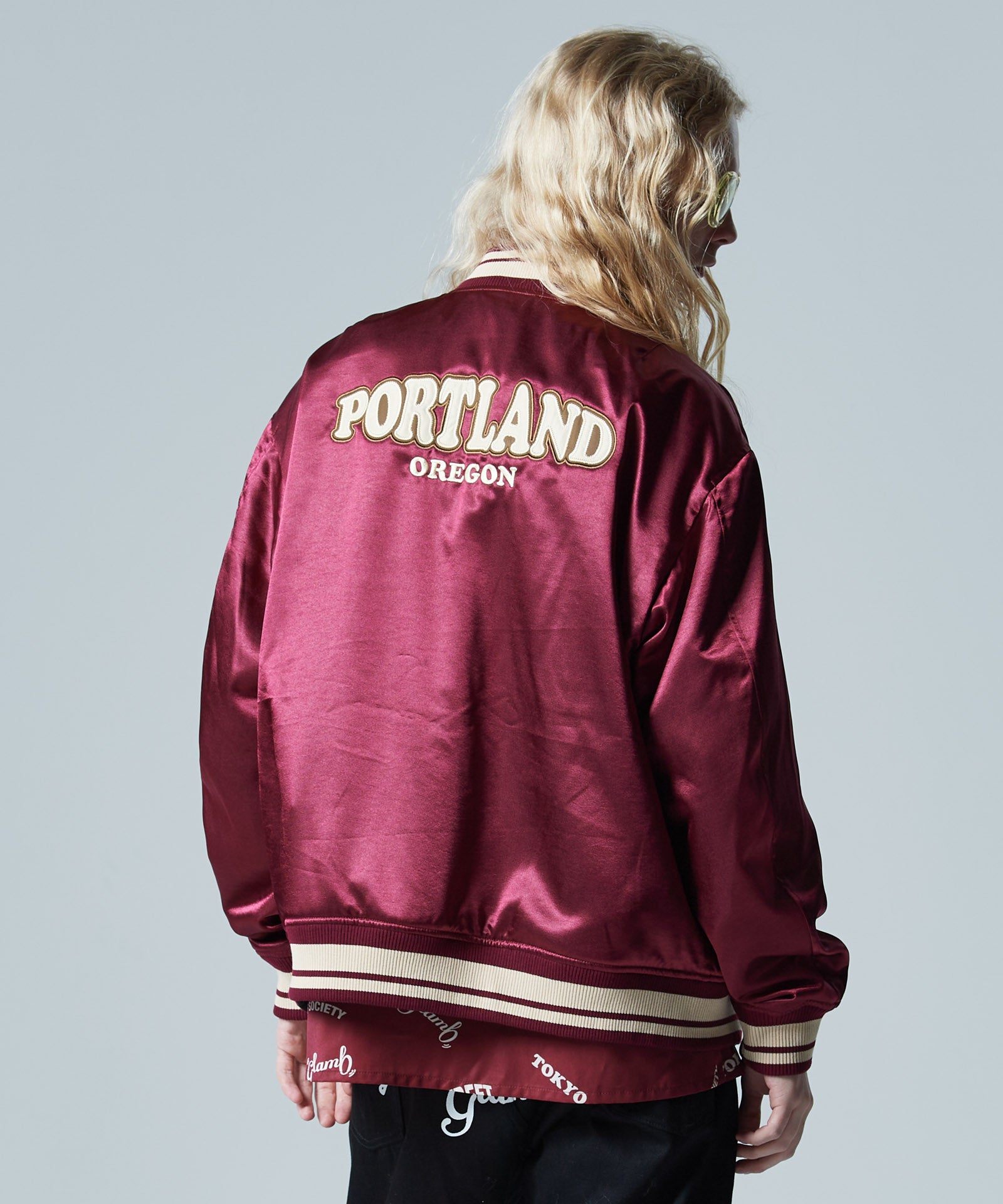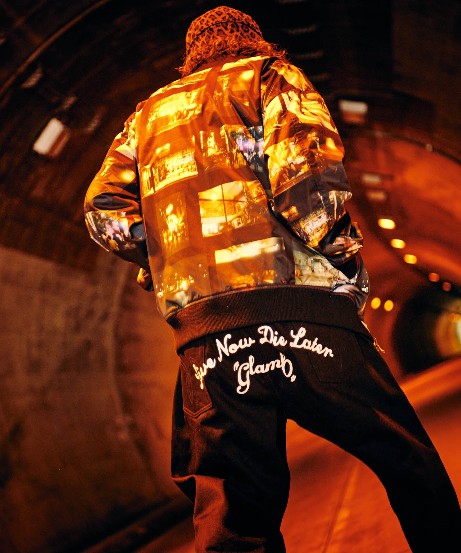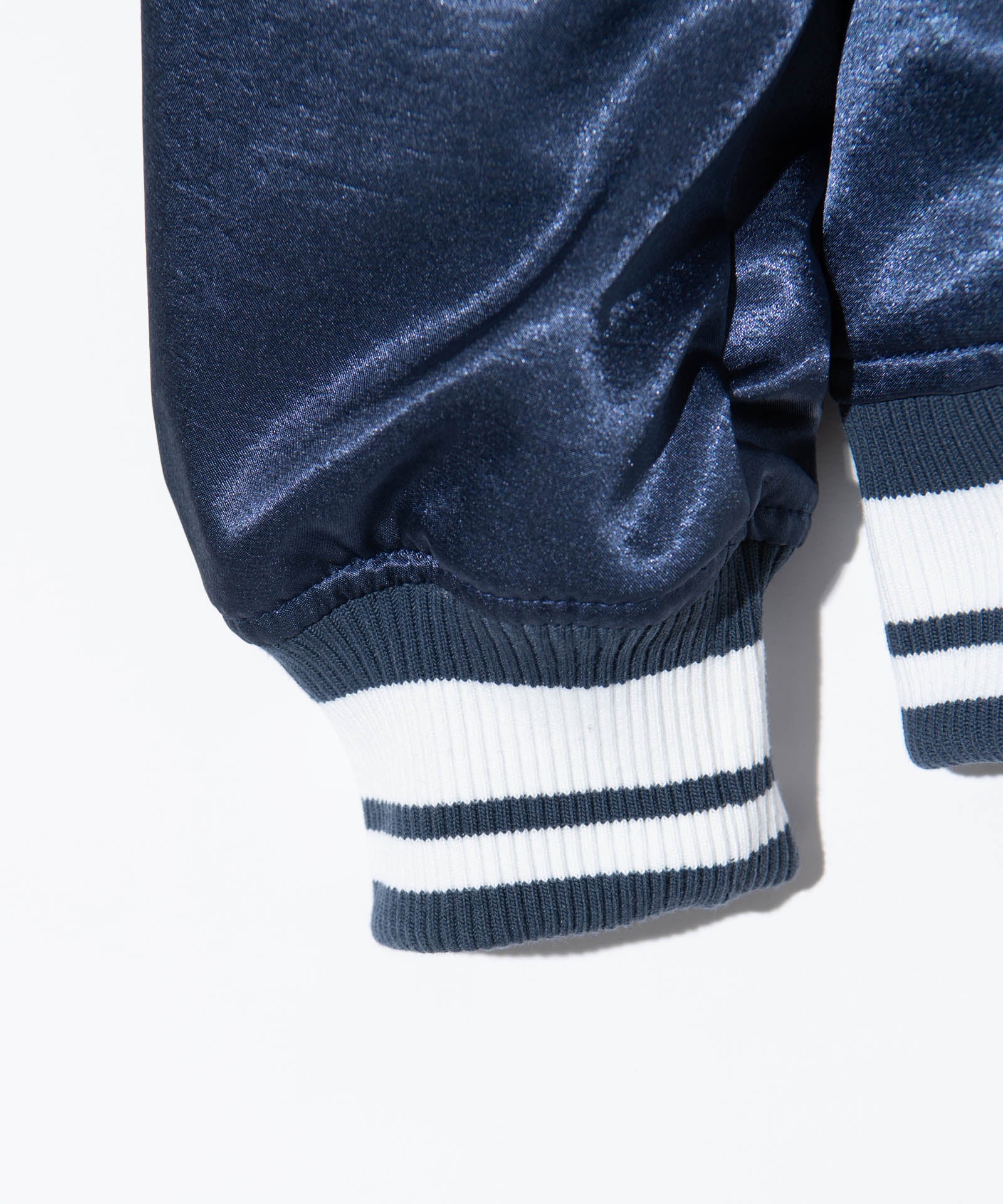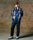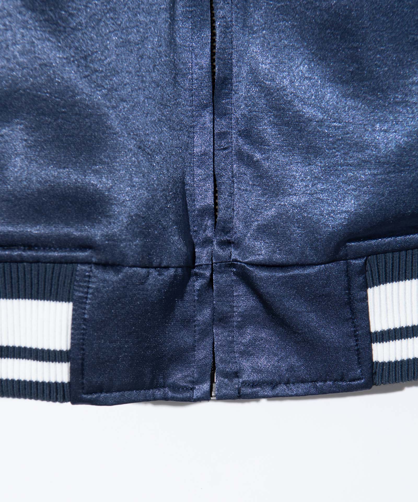 ブランドのデザイナーが今季のコレクションの構想にあたって過ごした3つの都市の空気感をリバーシブルボディで表現したReversible City Blouson。ヴィンテージサテンをテキスタイルに使用した無地面はバックスタイルにテーマとなった都市名をワッペンと刺繍のコンビネーション使いで刻印。裏返すとその都市の光景が総柄使いとなって現れるというストーリー性あるリバーシブルデザインとなっています。ラインリブは細線と太線を組み合わせたオリジナルピッチ。武骨な印象を見せる8号ファスナーもスタイリングにタフなニュアンスを与えます。