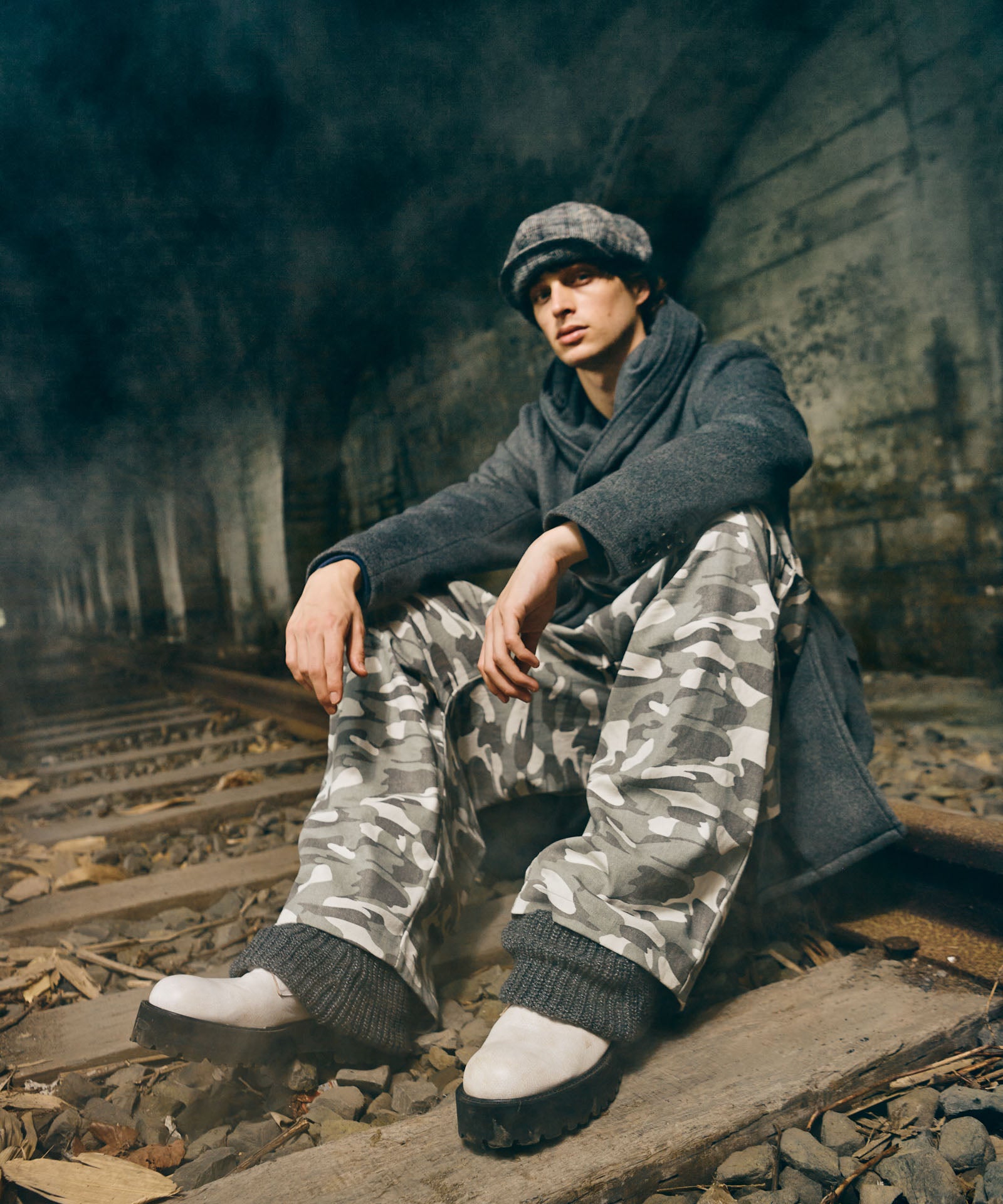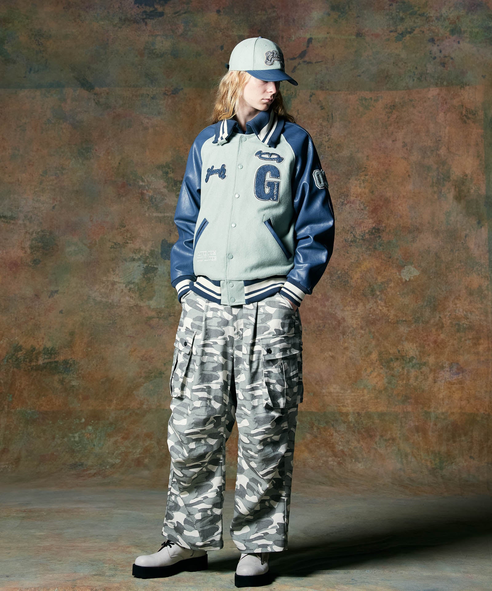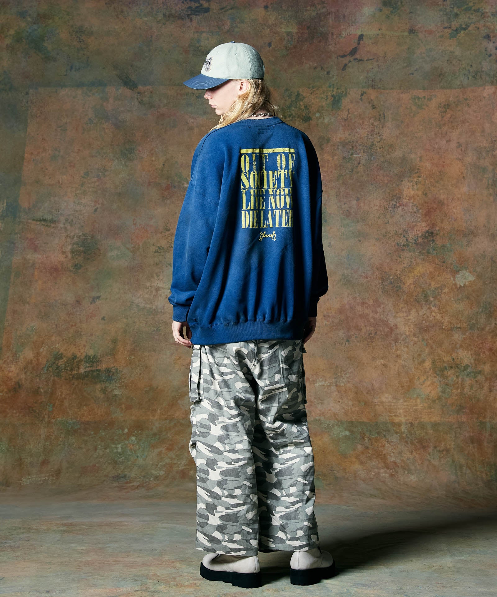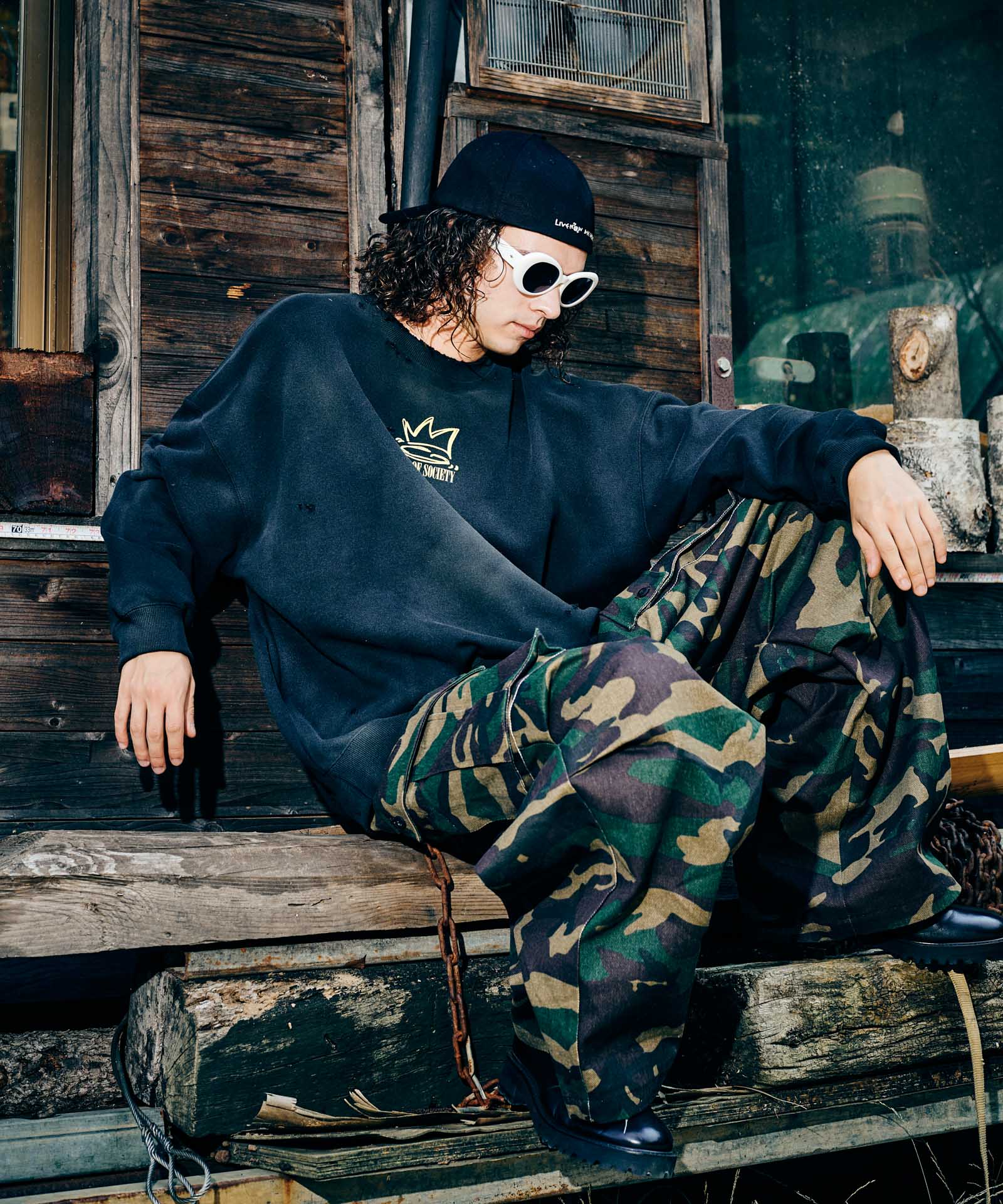 ボリュームある素材使いでミリタリーをデザインコンシャスなウェアへと昇華したWide Military Pants。カモ柄を総柄にあしらったボディは腰元に1タックを取ったワイドシルエット。サイドにはマチ付きカーゴポケットをあしらい、膝には2タックを取ってさらなるボリュームを演出。テキスタイルに打ち込みの強いコットンツイルを用いてタフな印象に仕上げました。ウエスト内側にはドローストリングを内蔵。ヴィジュアルとは裏腹にイージーな着用を実現しています。