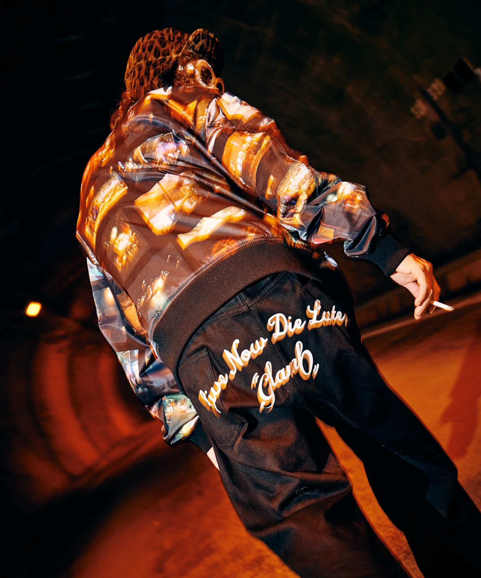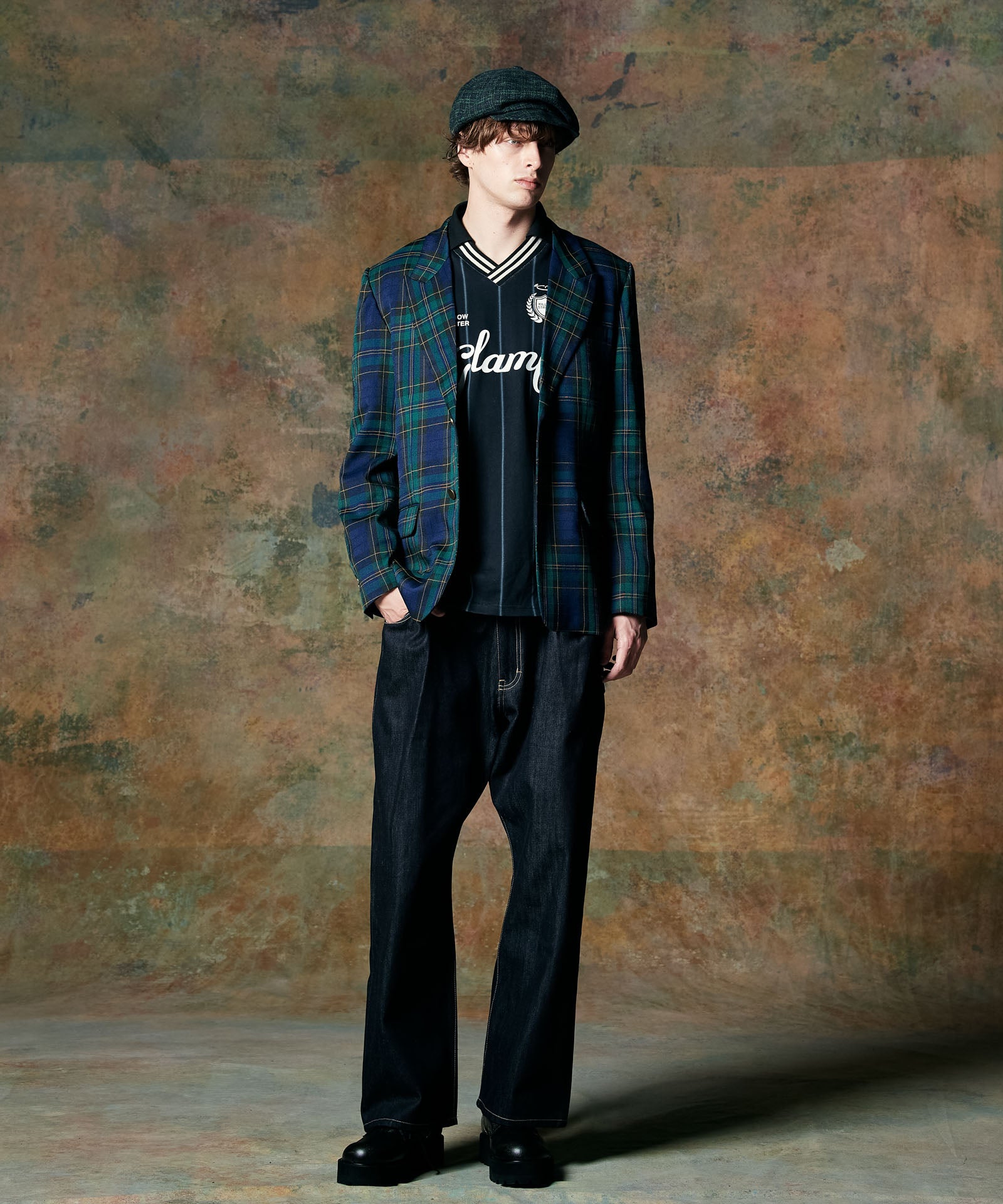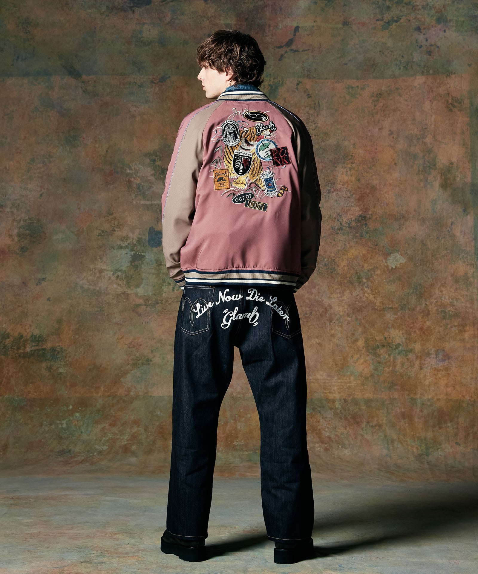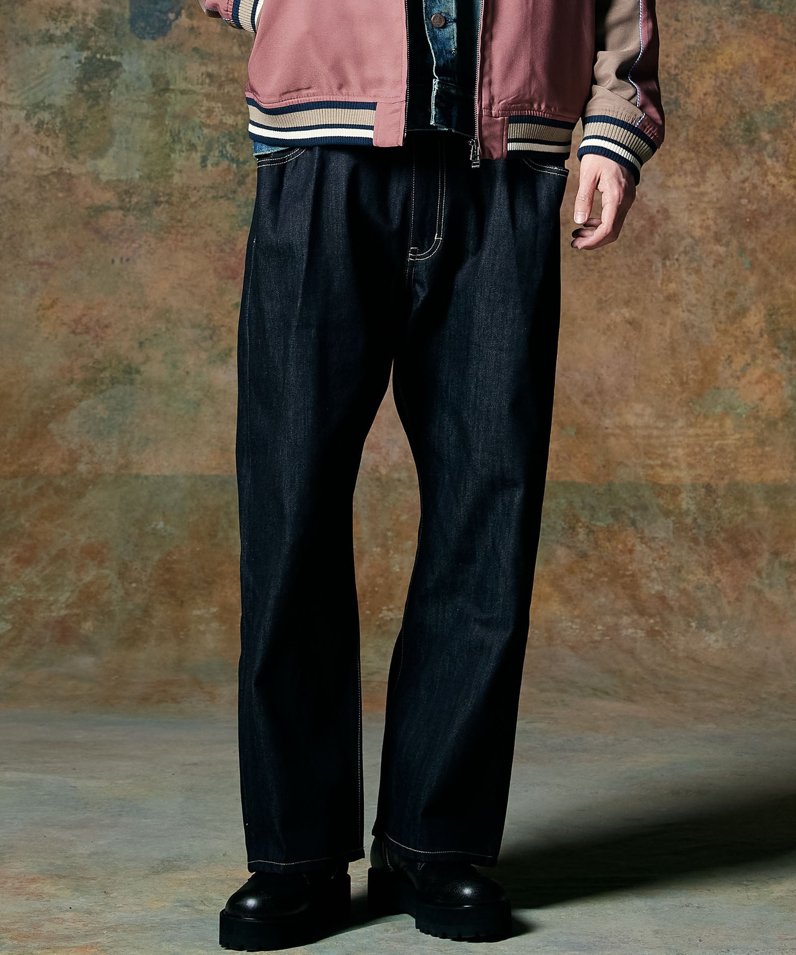 90‘sデニムスタイルを現代のストリートに再提案するBack Print Baggy Denim。シルエットはオーバーサイズボディの腰元を折りたたむ要領でタックを形成した、リメイク調のニュアンス溢れるもの。そこに東京ストリートカルチャーのエッセンスを色濃く漂わせるバックプリントをあしらいました。テキスタイルにはリジッドデニムを使用。穿き込むことで素材とプリントのそれぞれに刻まれていく経年変化をお楽しみください。