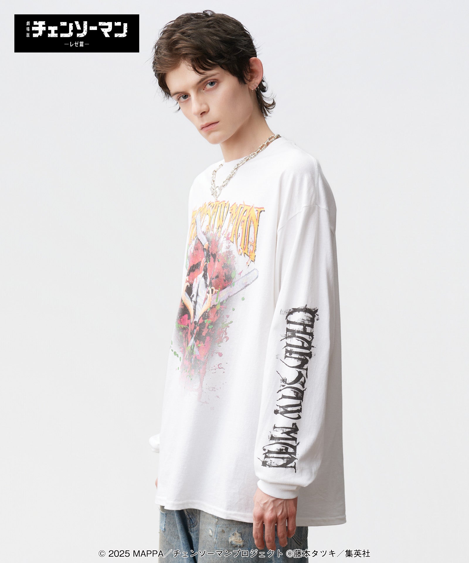 劇場版『チェンソーマン レゼ篇』公開を記念し、glambがコラボレーションアイテムを発表。チェンソーマンのイメージをロングスリーブTシャツへ投影したChainsaw Man Cutsew。