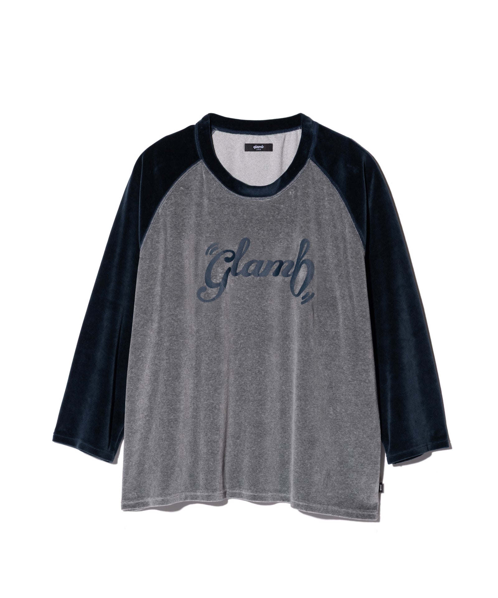 glambのカットソーラインの中でも特に人気の高いロゴプリントシリーズの新作がSpin Logo Velour Sweat。テキスタイルには肉厚ながらソフトなタッチを持ったヘビーベロアを使用。ロゴのクラックプリントは、ひび割れから起毛を覗かせることを計算してあしらいました。ラグランスリーブはカバーステッチ仕様。GrayとBrownは配色をアクセントに、Blackは同色でソリッドなムードにまとめています。シルエットは身幅にゆとりを持たせながら着丈はやや短めに設定、ビッグシルエットの次を占う野心的な提案を込めています。