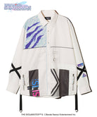 オリジナルに見られるバックルや模様、サイドポケットなどステージ衣装のモチーフをストリートファッションの解釈で再構築。カモ柄を用いた右身頃の意匠やアームのクロス切り替えやスプレーアートを意識したステンシルプリントにより、コスチュームをアーバンウェアとして提案しています。