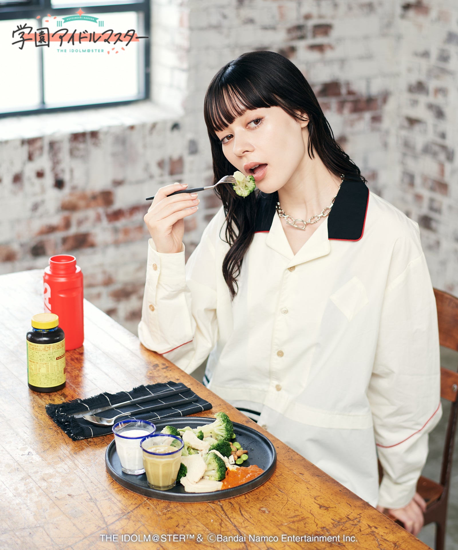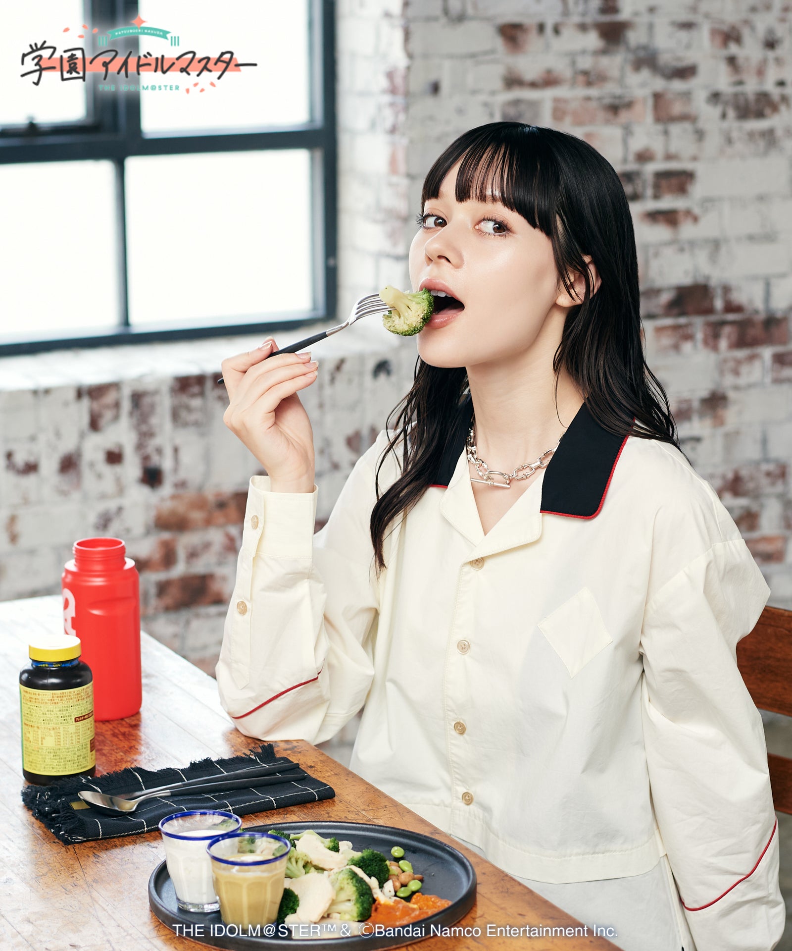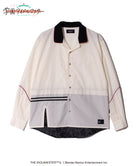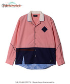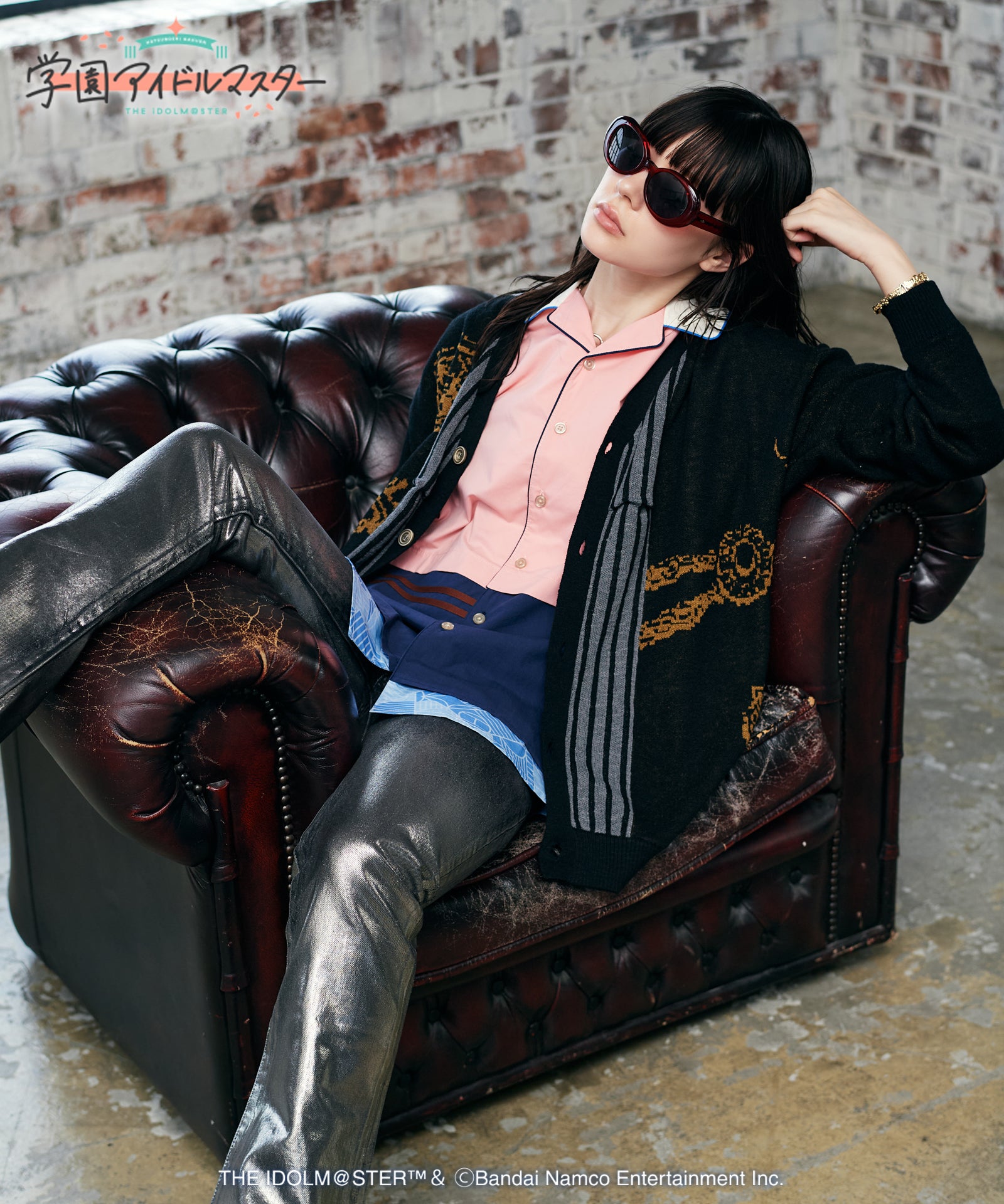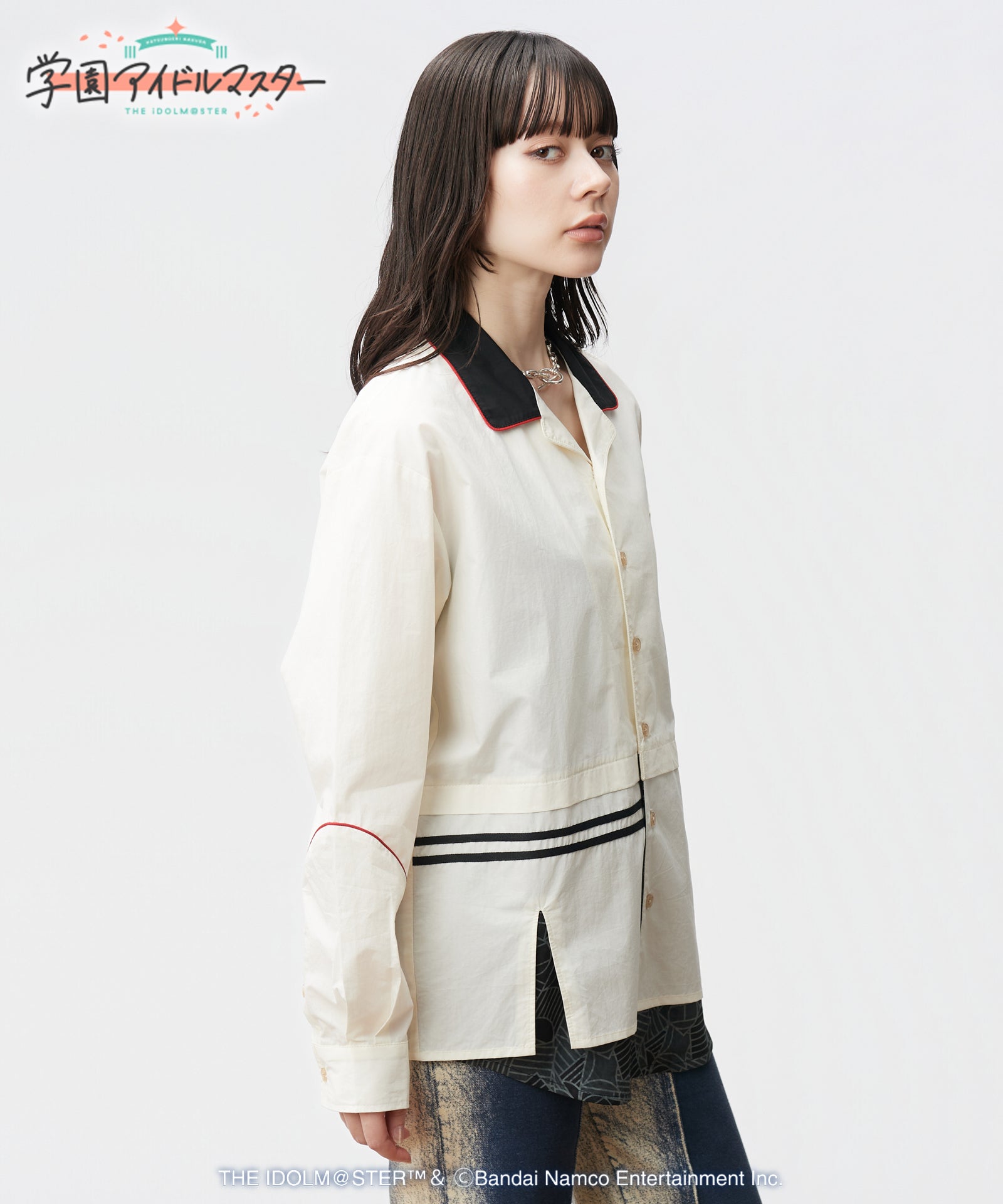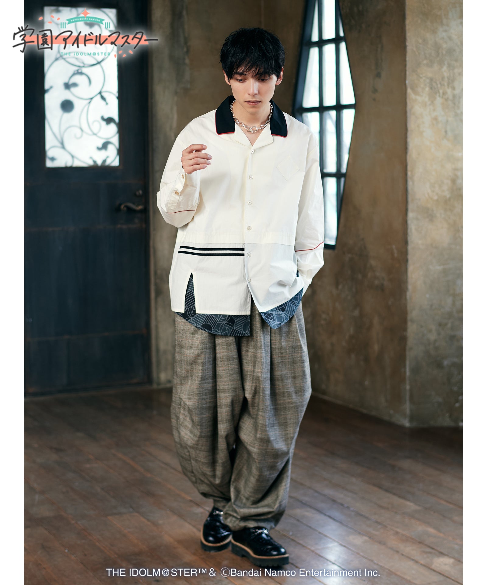 gladgarbと『学園アイドルマスター』がコラボレーション。花海咲季のベーシックコスチュームを1枚のシャツへと再構築したSaki Shirt。上下で切り替えたボディは、トップスを表現した部分にパイピングをあしらってボウリングシャツを思わせるストリートなムードに。ワッペンを模したパーツは敢えて無地であしらうことでモードな印象を持たせています。フェイクレイヤードしたスカート部分には初星学園の校章をアレンジした柄を散りばめて、作品へのリスペクトを込めました。シルエットは着丈長め、身幅広めのビッグシルエット。2つのカラーバリエーションはPinkはオリジナルの配色、WhiteはSaki Blousonと合わせることで楽曲『初』における花海咲季の着こなしを再現するものとなっております。