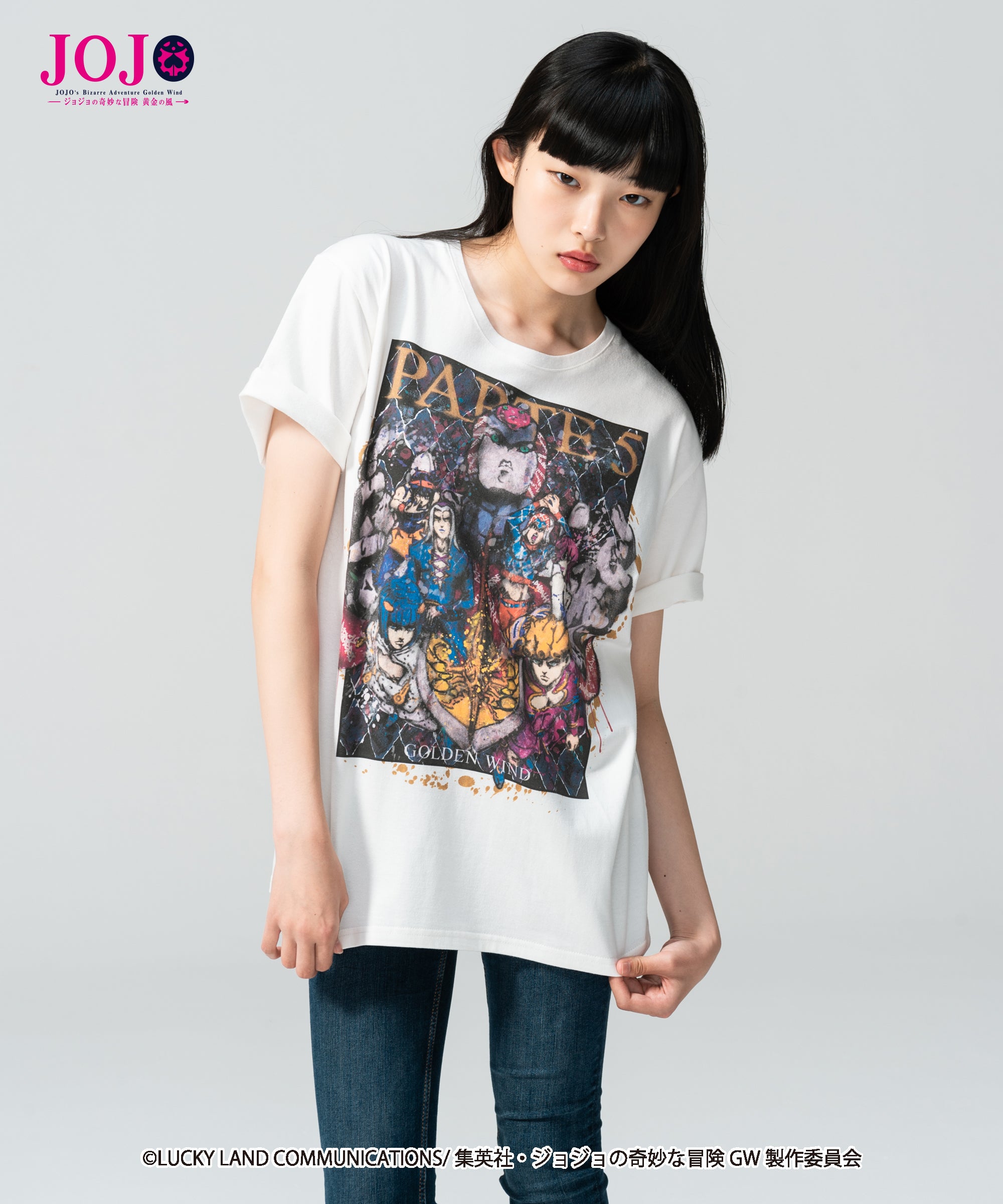 电视动漫“ Jojo的奇怪冒险:Golden Wind”的关键视觉效果,其特色是面对绯红色王的Bucciarati团队和“箭头”,这是对称作品中故事的关键。基于这种强大的构图,Glamb使用该品牌专门研究的技术(例如喷雾艺术,动作绘画和拼贴画)重建视觉效果。新的,繁重的街道图形已被绘制。纺织品由高质量的100%棉球衣制成,只有5.6盎司。长度较长的宽松轮廓和宽大的宽度会产生现代的顶级风格。