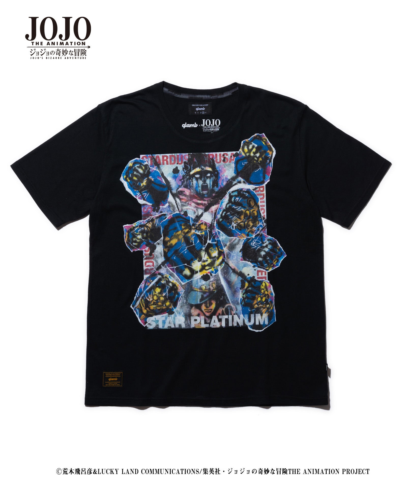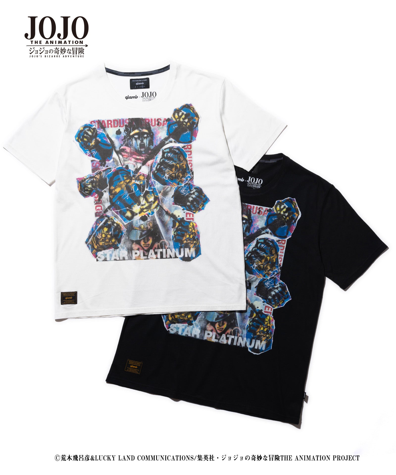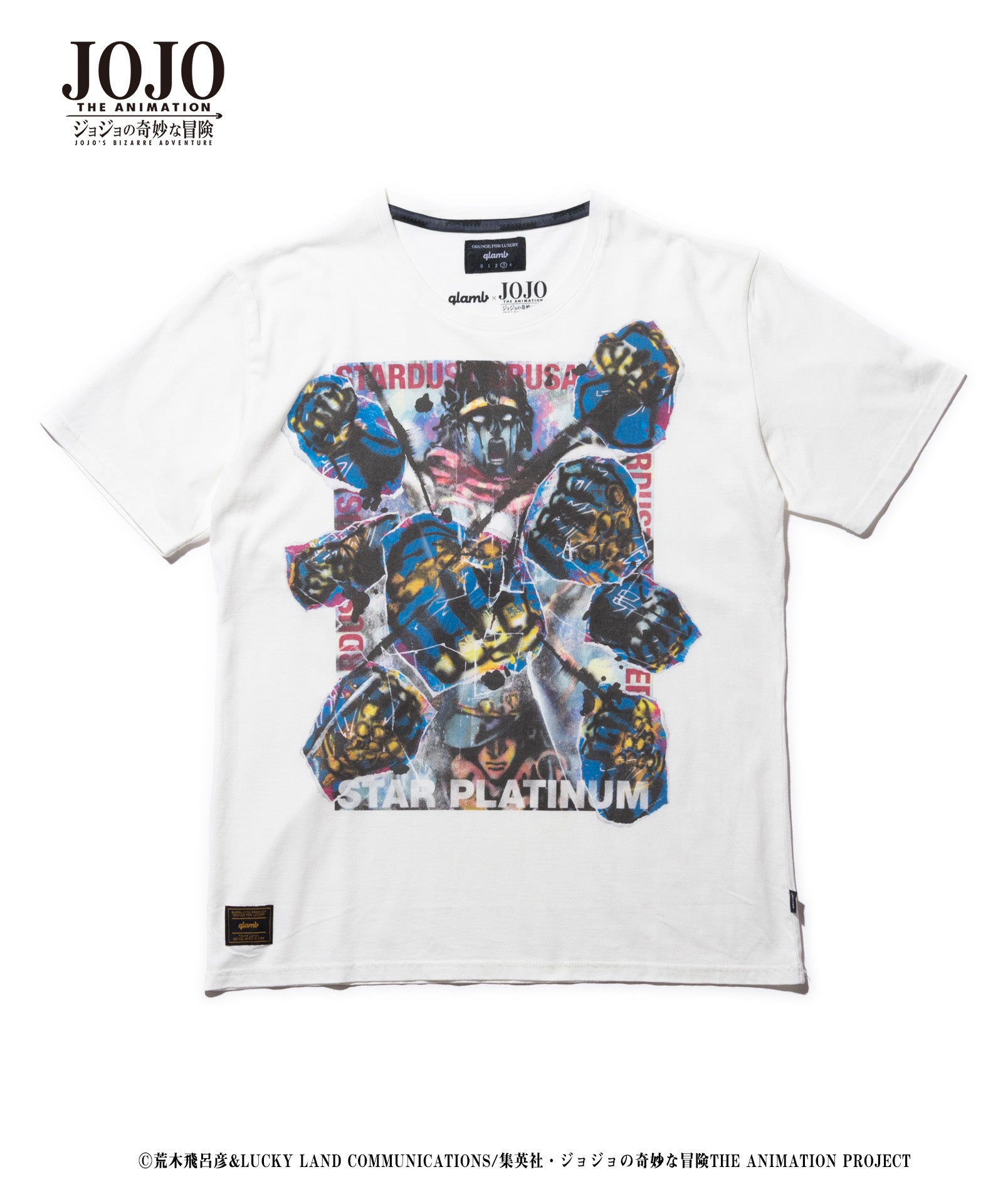 在2021年春季,Glamb和电视动漫“ Jojo的奇异冒险”合作。 Star Platinum T基于Stardust Crusaders的主角Kujo Jotaro的主题,并结合了各种街头时尚技术来创建多层设计。