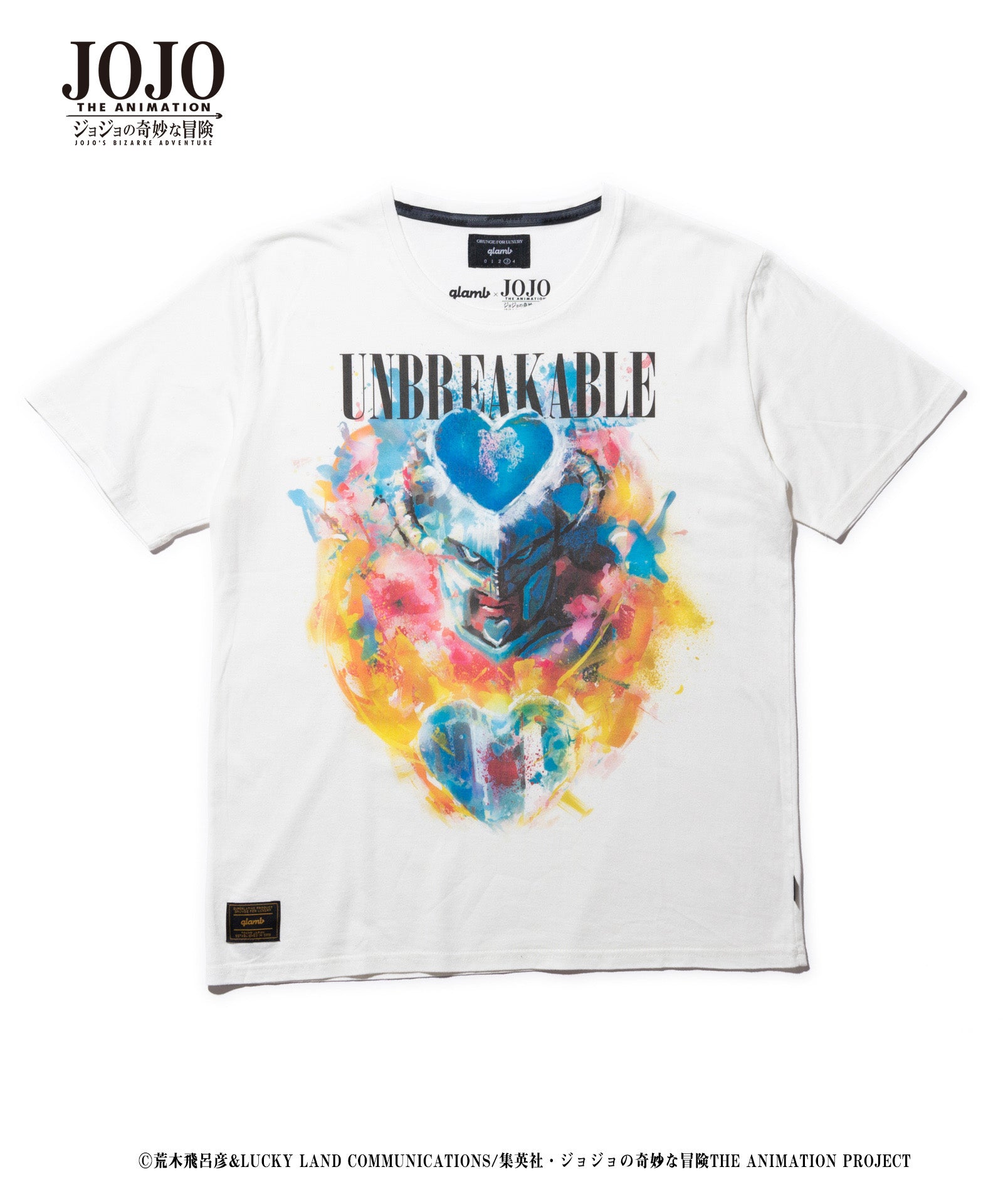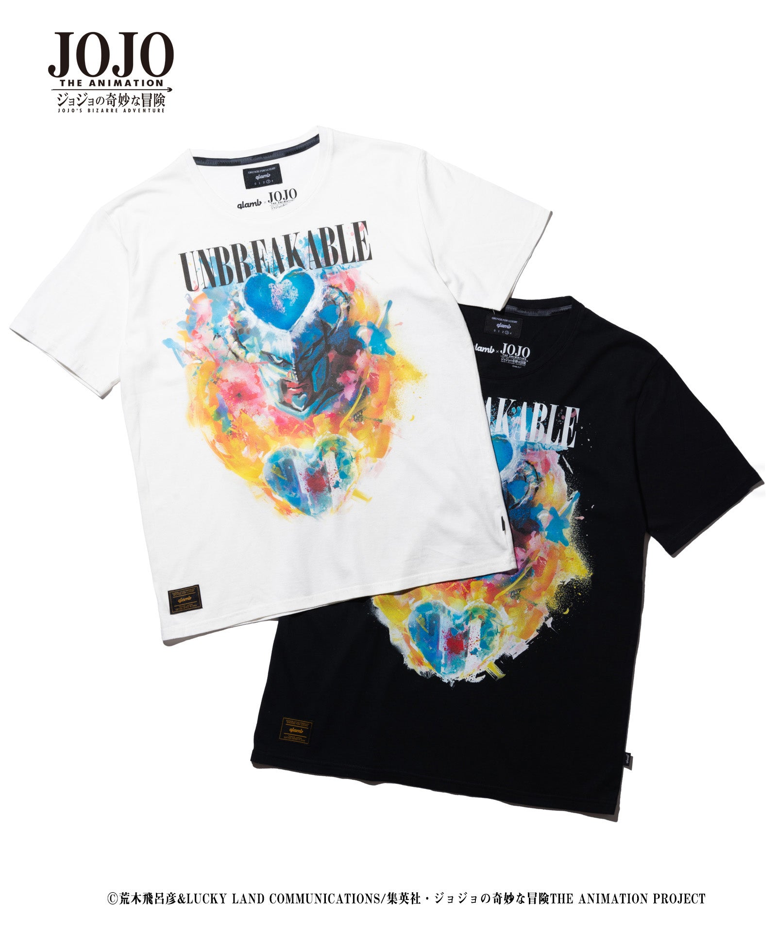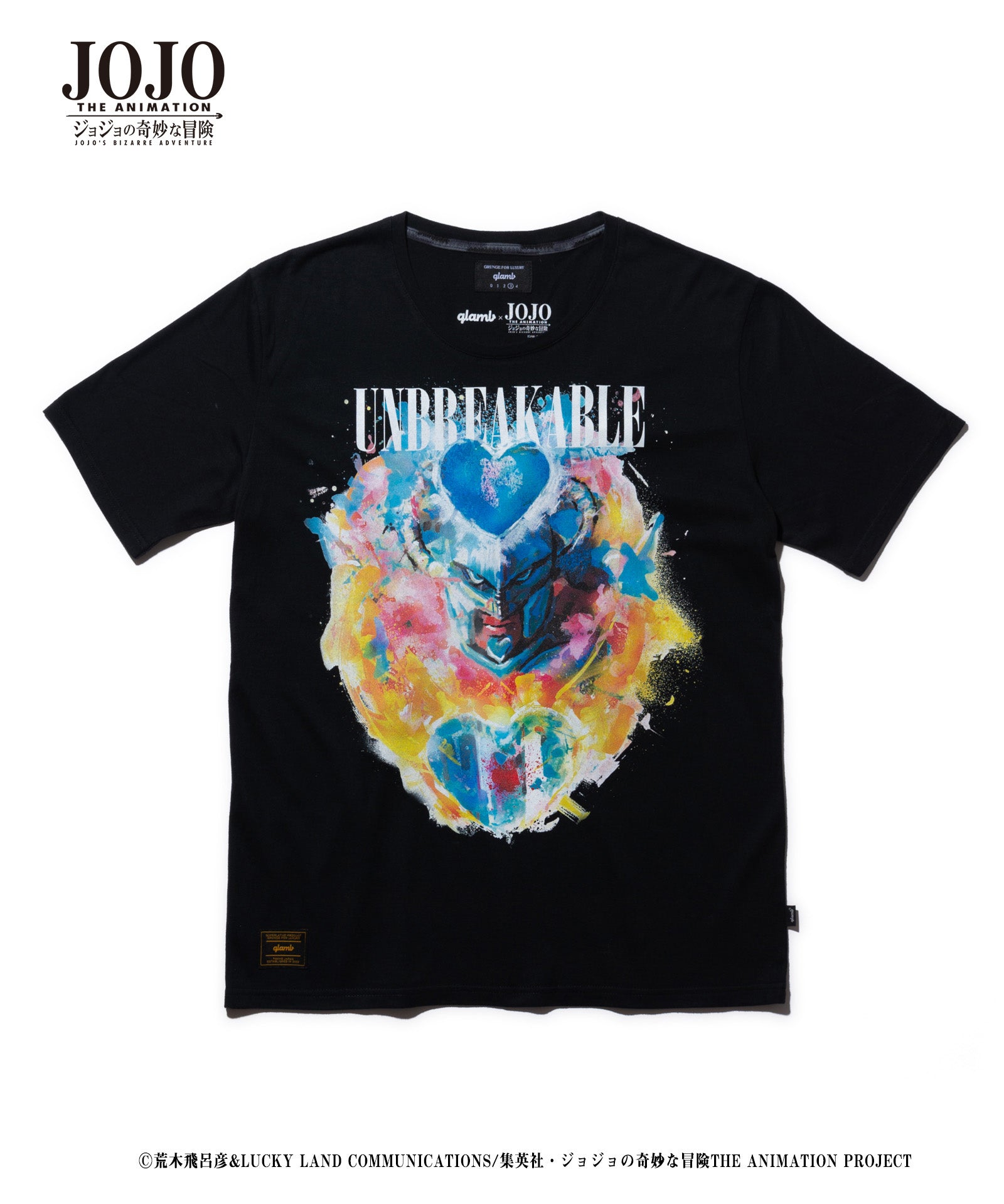 在2021年春季,Glamb和电视动漫“ Jojo的奇异冒险”合作。疯狂的钻石T(Crazy Diamond T)是Touhou Josuke的摊位,Touhou Josuke是“钻石无法破裂”的主角,进入了90年代的Grunge Style Artwork,这是Glamb的骨干。