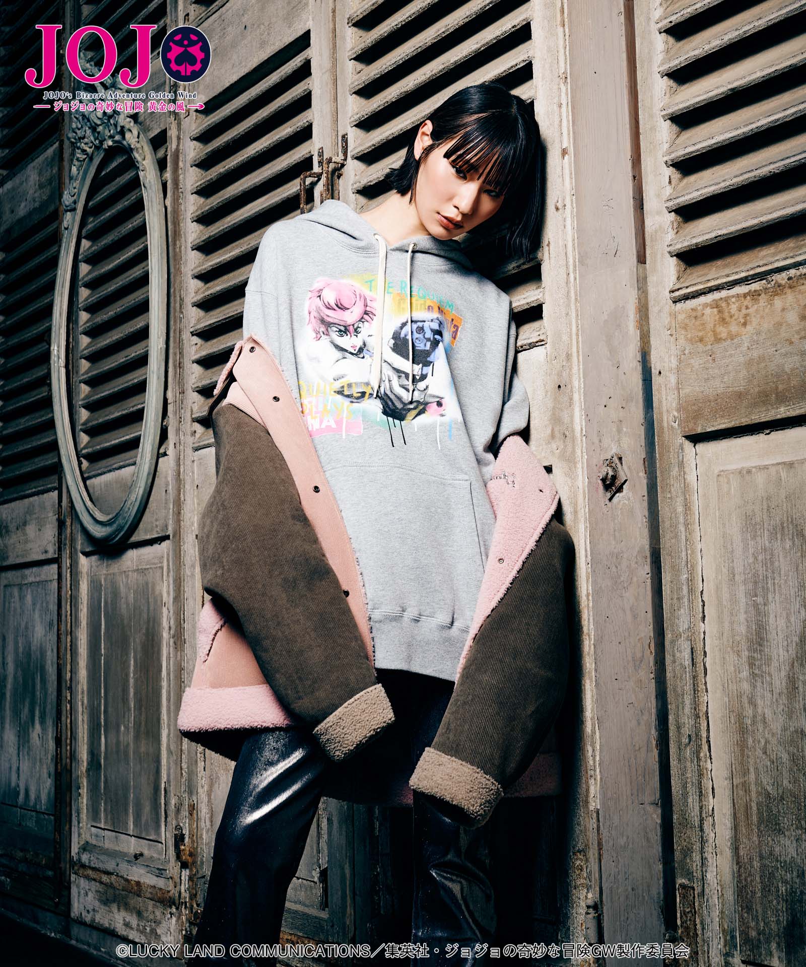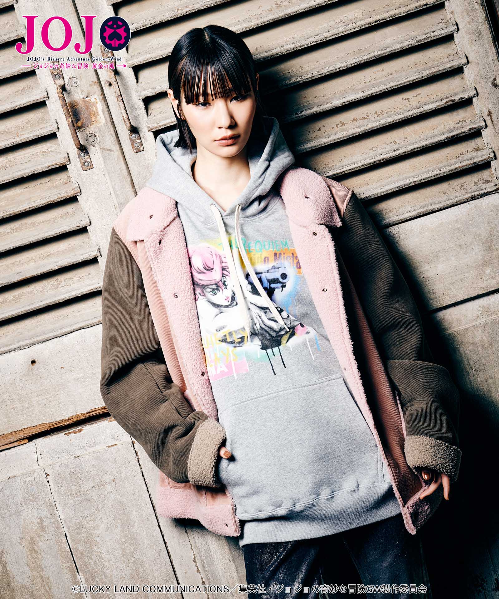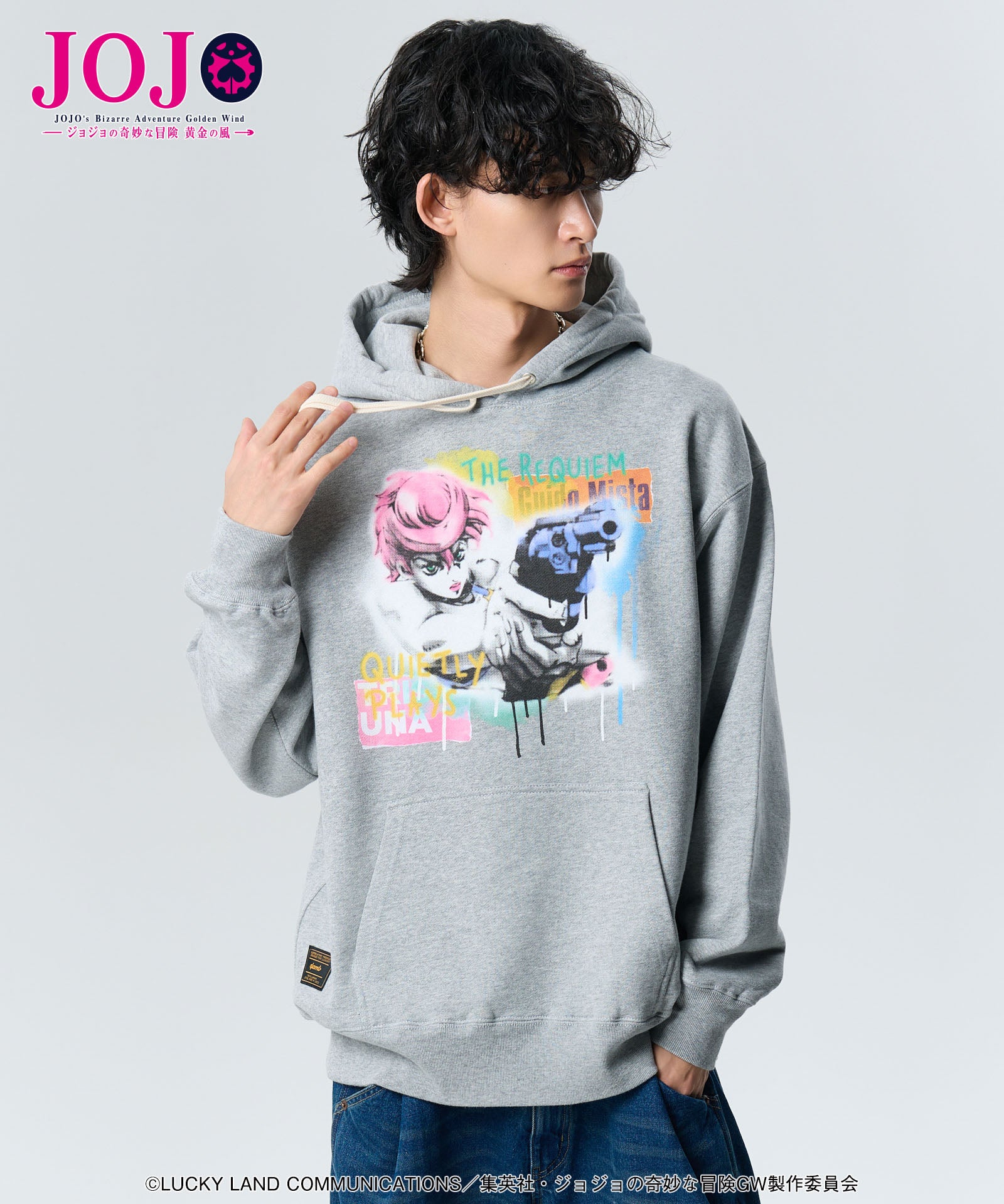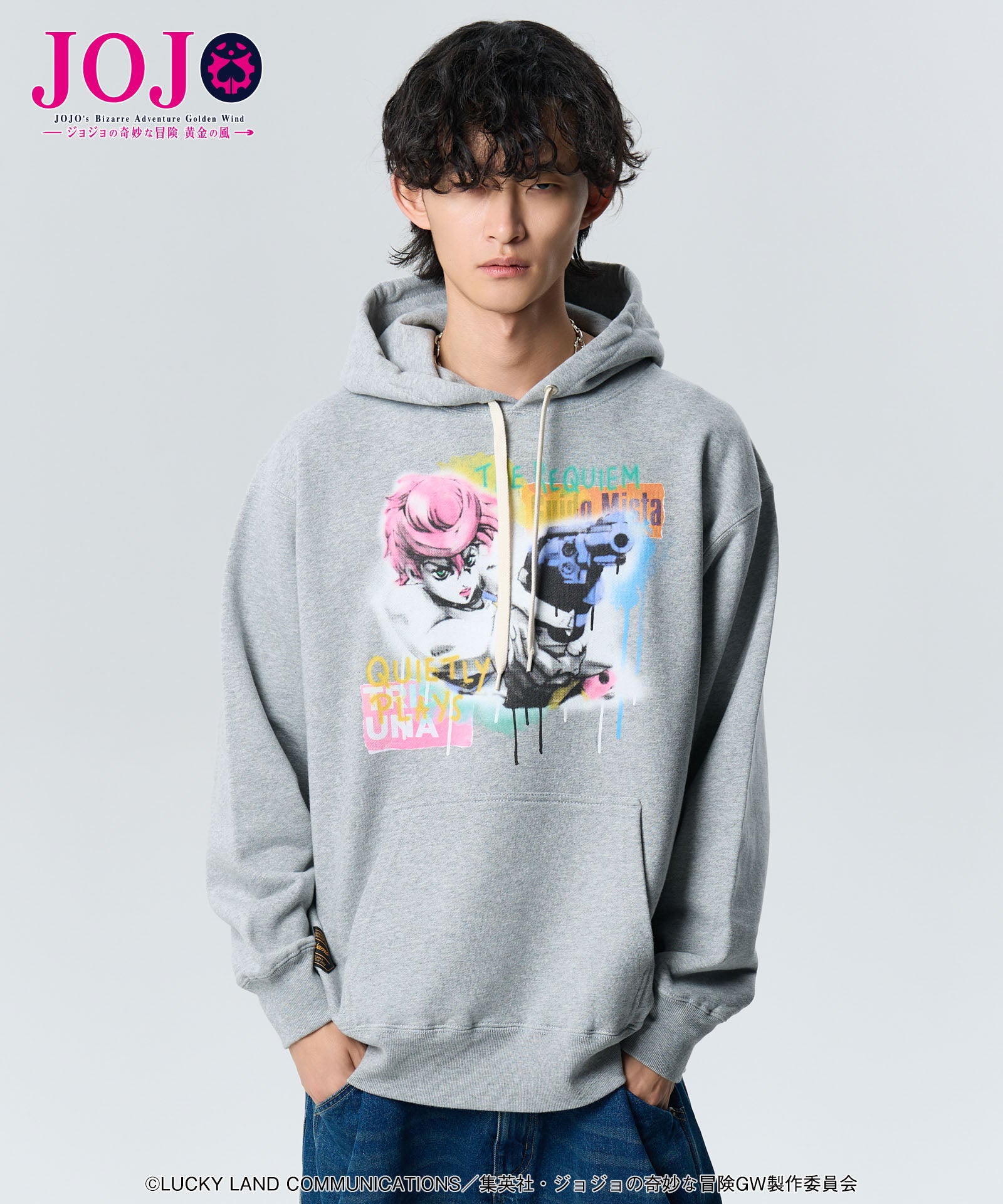 动漫“ Jojo的奇异冒险:Golden Wind”与Glamb合作。 Trish-Mista Hoodie是一部描绘Trish的街头艺术,其先生的精神被“战车安魂曲”的能力渗透。