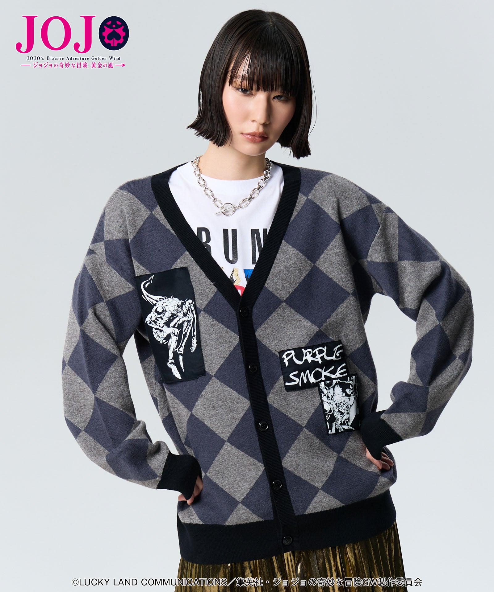 动漫“ Jojo的奇异冒险:Golden Wind”与Glamb合作。 Pannacotta Fugo的支架开衫已转变为一件优雅的开衫,并将Pannacotta Fugo的Cardigan的凶猛变成了一种悖论性的开衫。